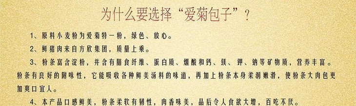 八十年坚守品质,八十年守护诚信。爱菊秉承“为耕者谋利、为食者造福”的经营宗旨,为您和家人的健康保驾护航,倡导“预约订购、就近取货,买退自由”的消费理念。本店主营爱菊全系列产品,品种丰富(包含:馒头、包