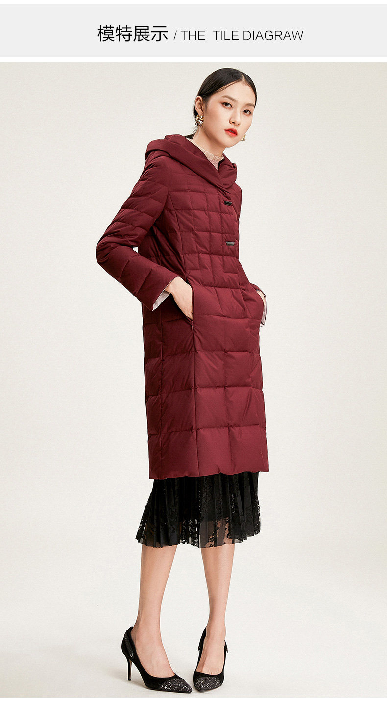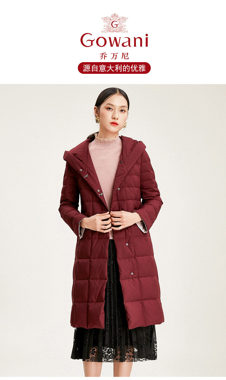 乔万尼冬季羽绒服女白鸭绒时尚轻薄中长款直筒显瘦外套EN4T739