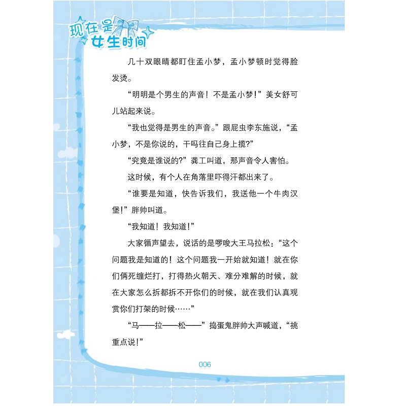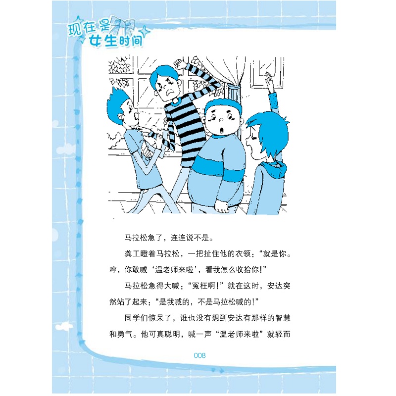 孟小梦有一个胆子比针尖还小的哥们儿,叫安达,人称胆小鼠。可是,他也有勇敢的时候,在作文课上帮助孟小梦管纪律,轻而易举地使那些爱讲话的男生用胶带封住自己的嘴巴……