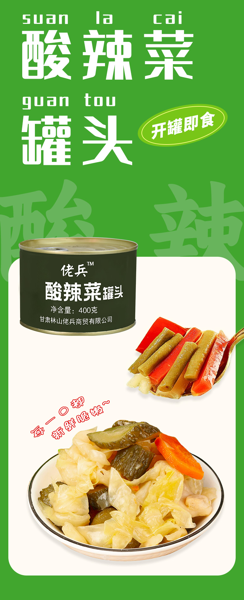 佬兵400g酸辣菜辣味雪菜罐头凉菜配菜小吃