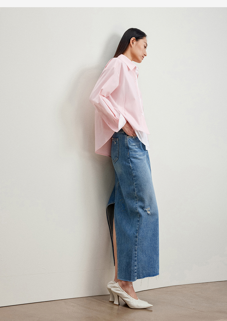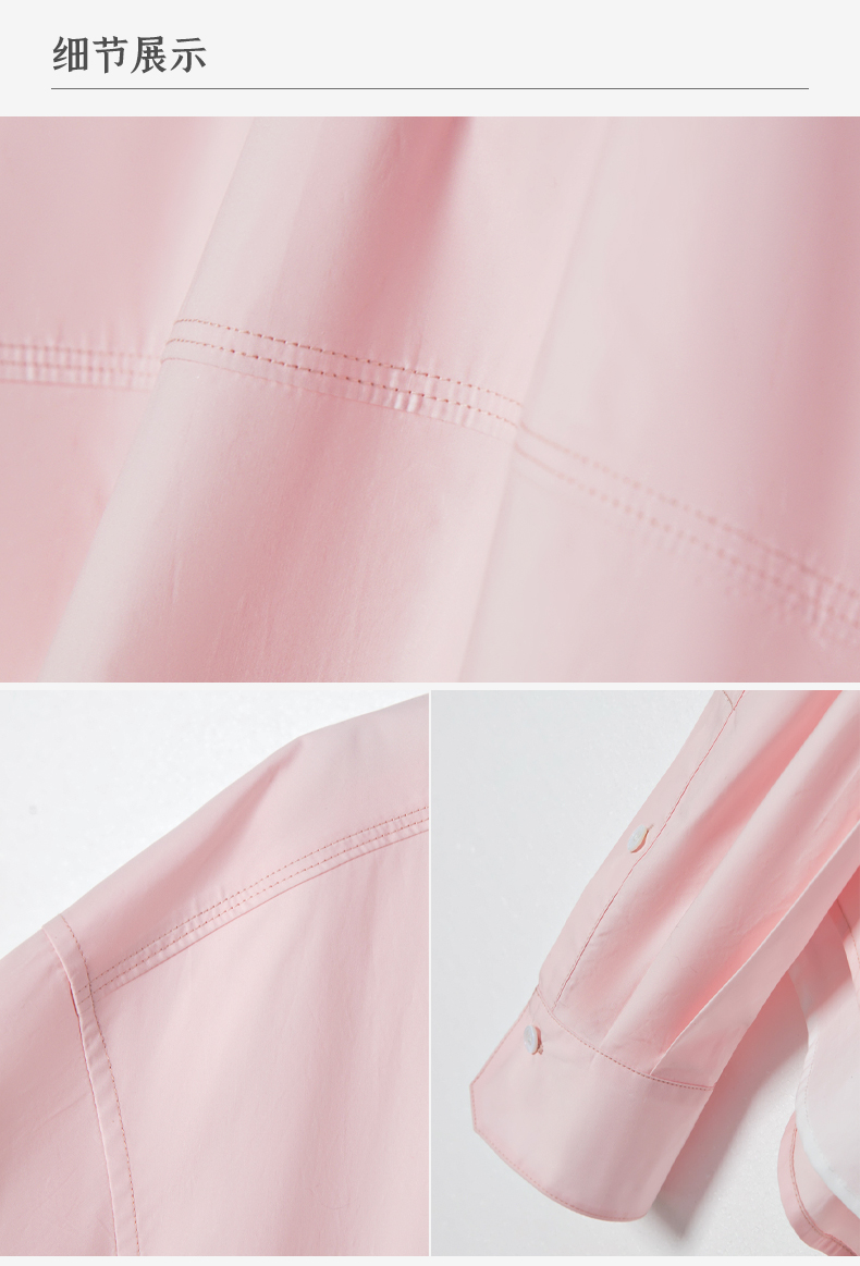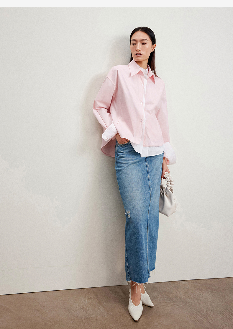 西嘉【预售15天】C+IMPRESS/西嘉拼接撞色假两件短箱型粉色衬衫女高密棉设计感宽松CS2401010
