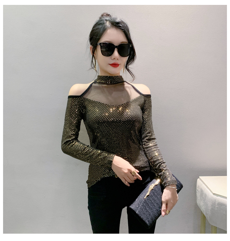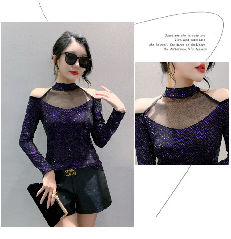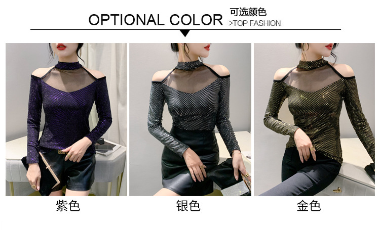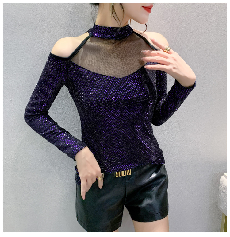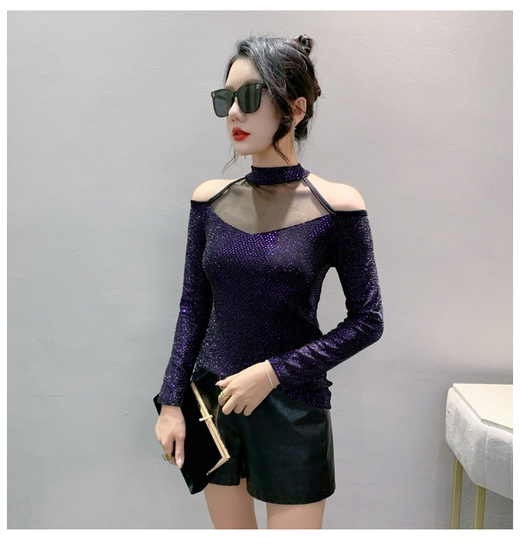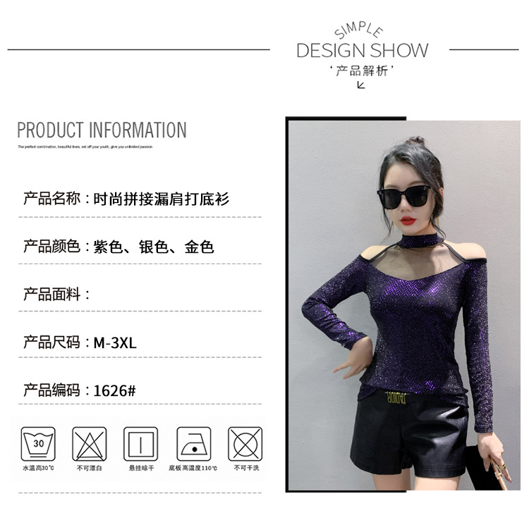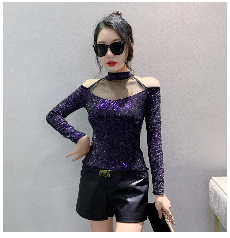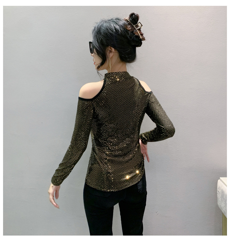 KQL 461h1915韩版时尚亮片露肩长袖打底衫