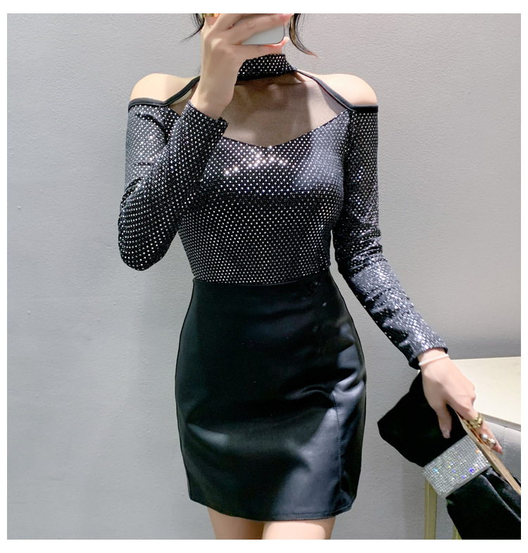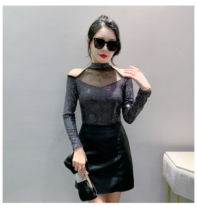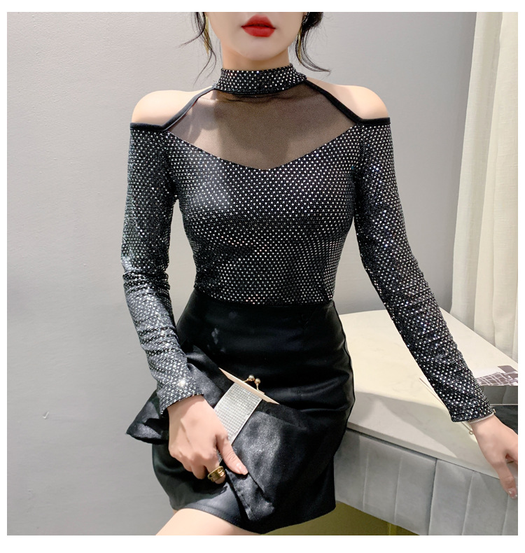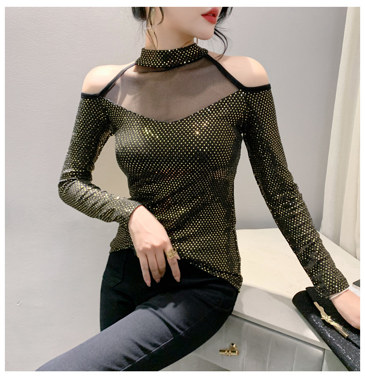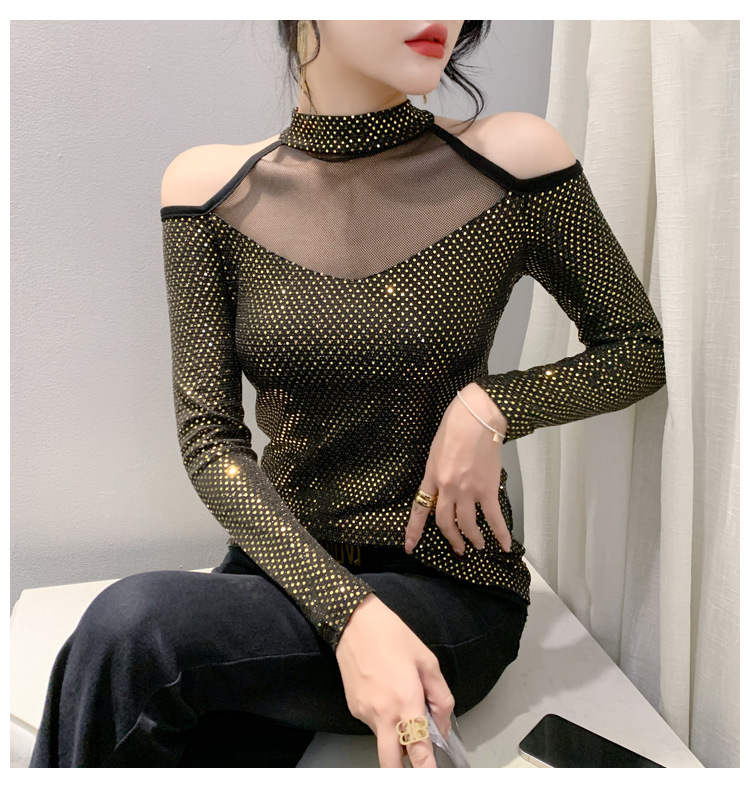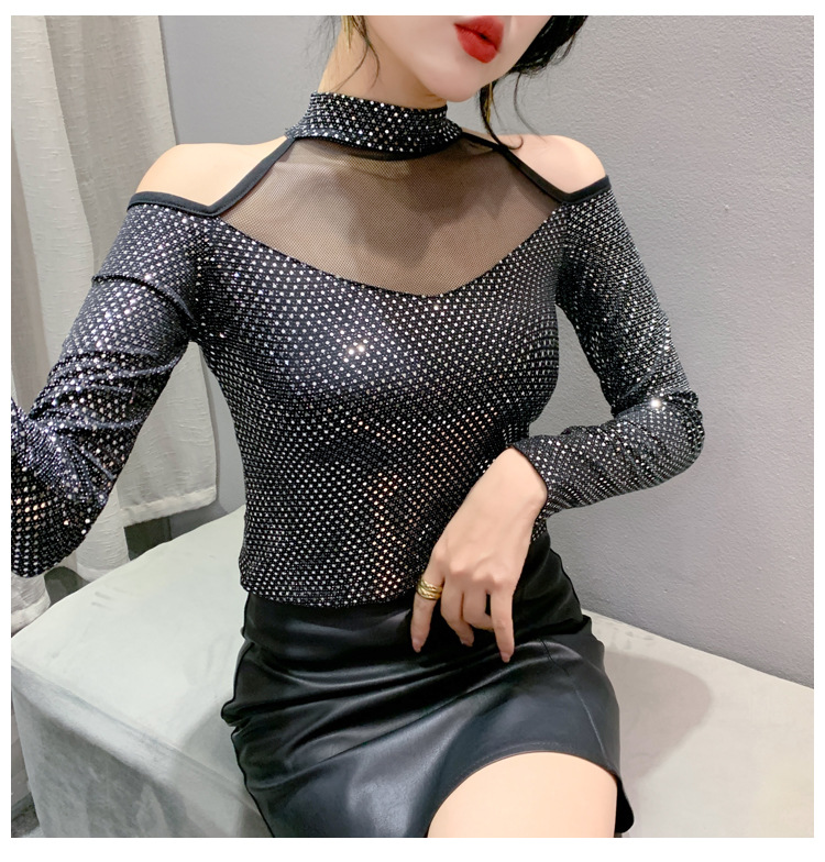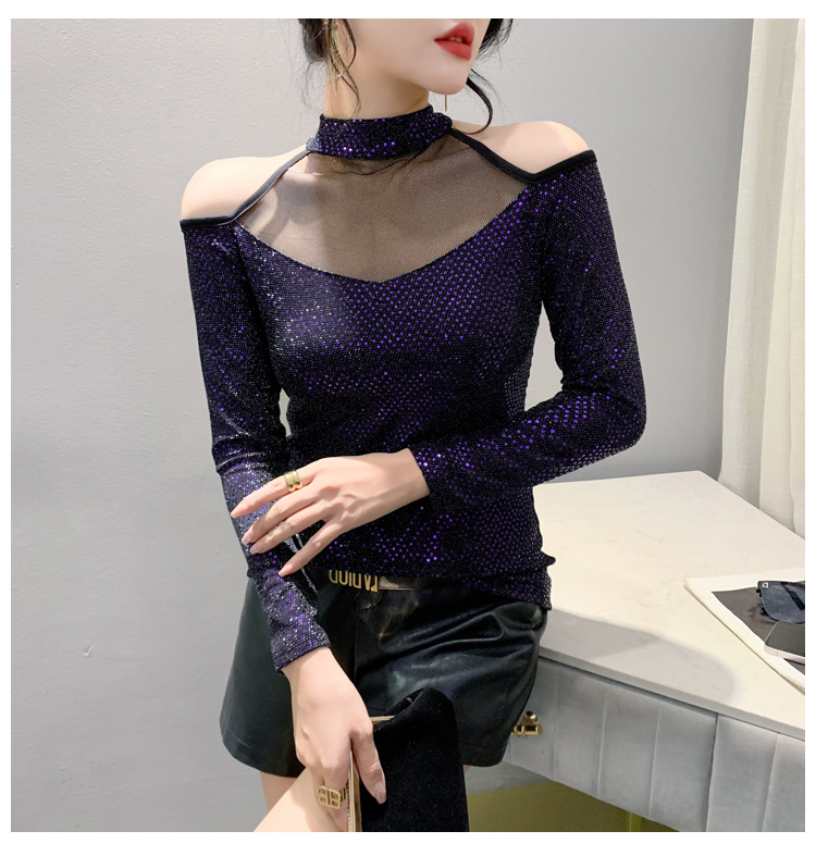 KQL 461h1915韩版时尚亮片露肩长袖打底衫