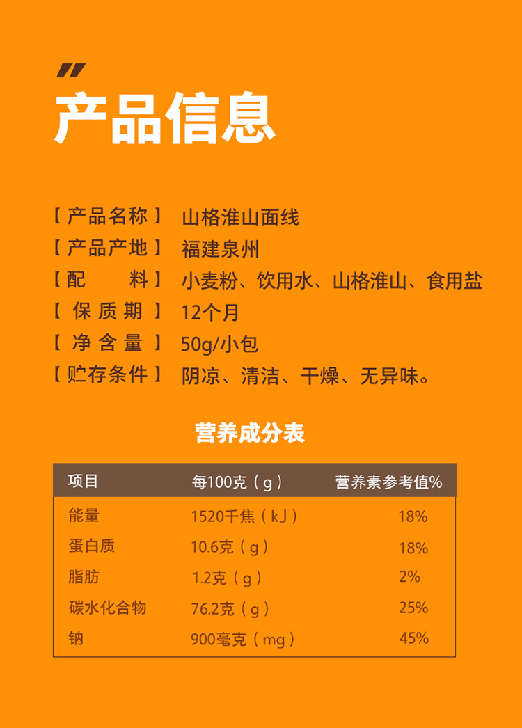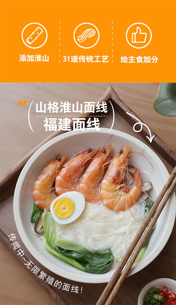 山格淮山面线/1箱(12-13包,共650g)生产日期:26年1月