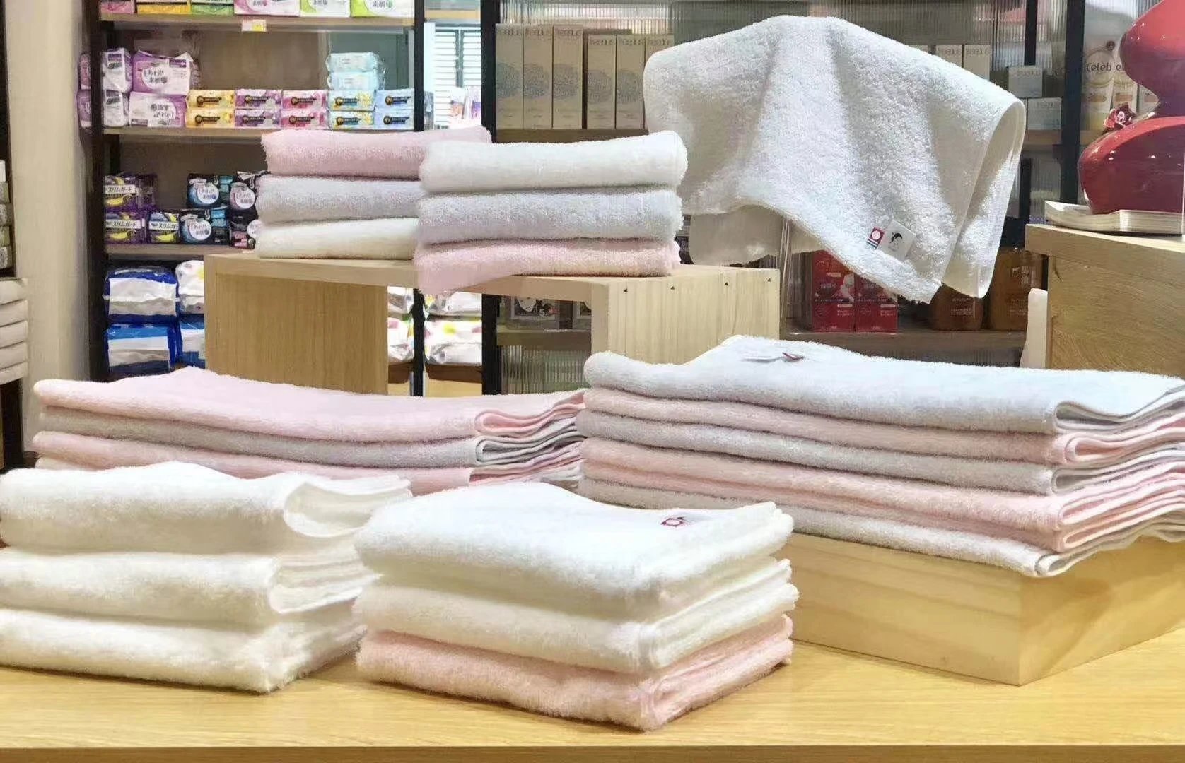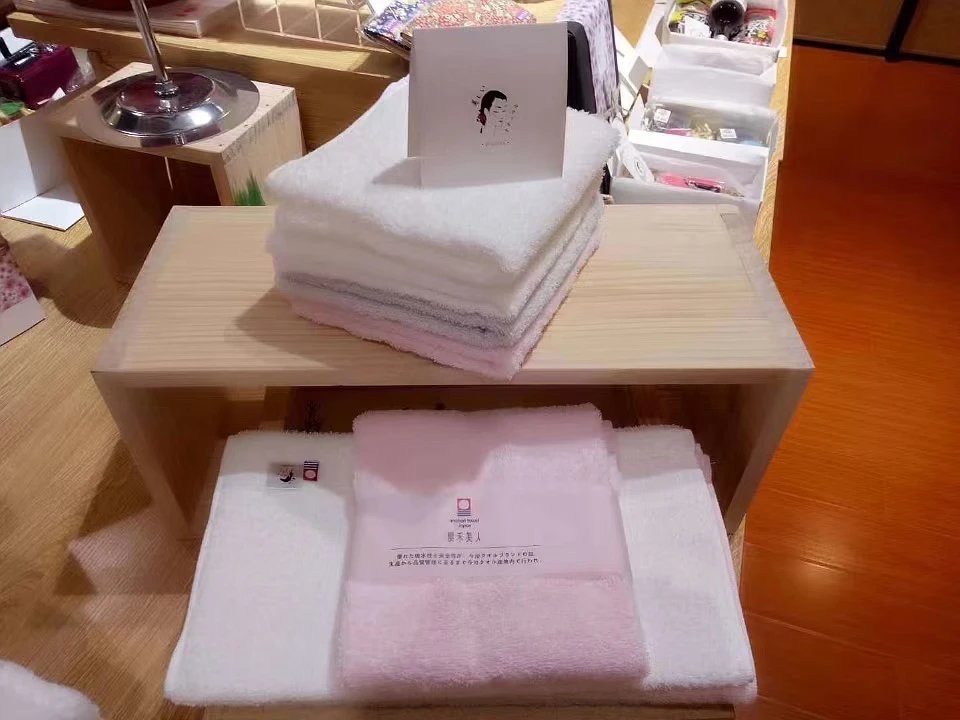 在今治市内,还建设了名为“今治毛巾LAB”的体感型宣传设施。在这里能体验毛巾的吸水性测试,即通过秒表测量小块毛巾面料落到水面之后直至沉下去的时间。如果是普通毛巾,1分钟就算合格,但今治毛巾的严格标准是5秒以内开始下沉。由于这种品质检查和宣传效果,如今,今治毛巾已成为日本最高档毛巾的代名词。