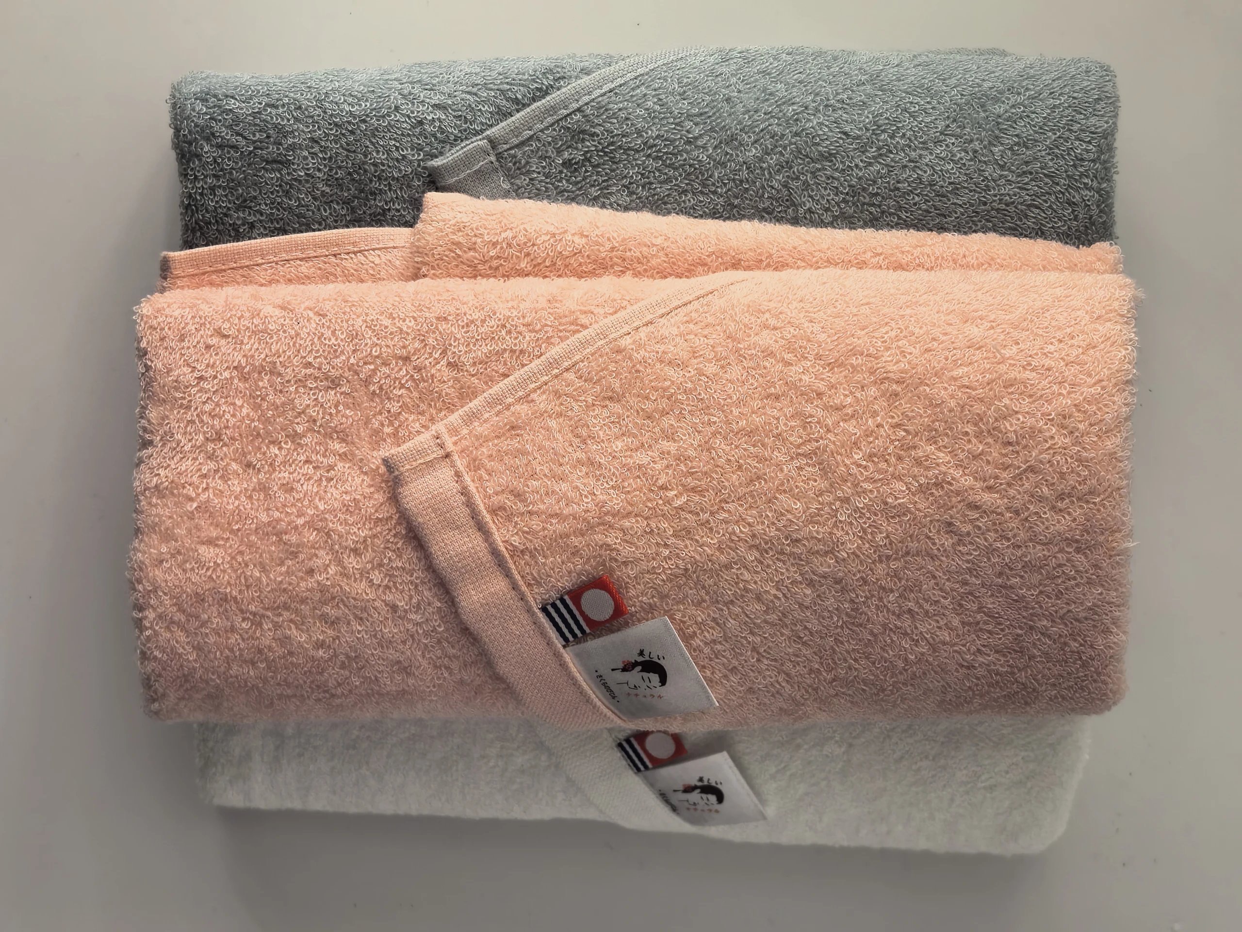 今治毛巾是日本有名的毛巾品牌的名称,是爱媛县北部的地名。今治市自古以来就有优质河水(软水)流经,使用这种水漂白纤维或染色,即可生产出优质的毛巾。今治毛巾始于江户时代,到目前约有120年历史。后来今治毛巾工业组合启动了“今治毛巾计划”设置严格的吸水性 ,脱毛率,缩水性等12个检查项目,会在满足基准值的产品的一端用带有红、蓝、白3色的标签。