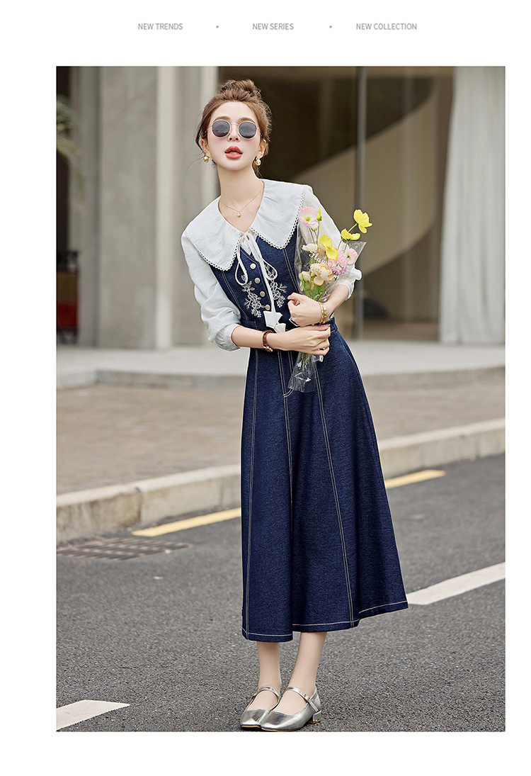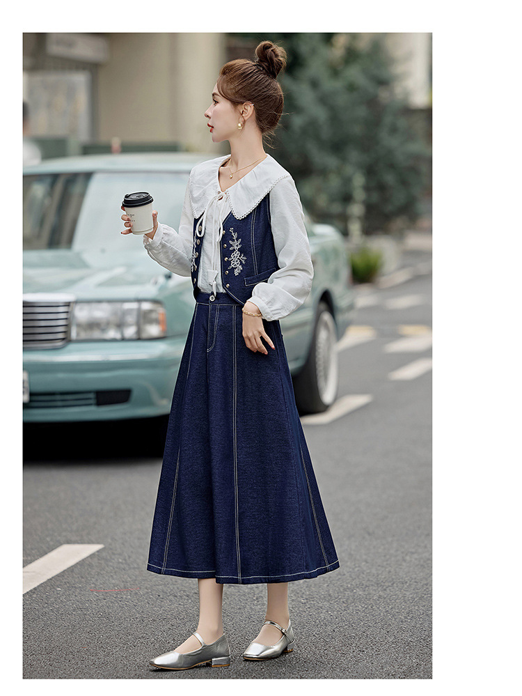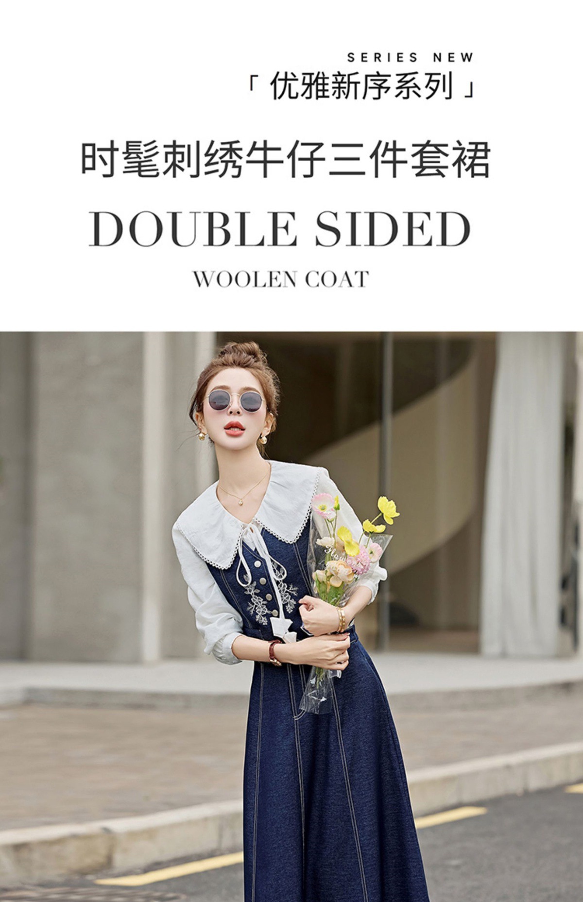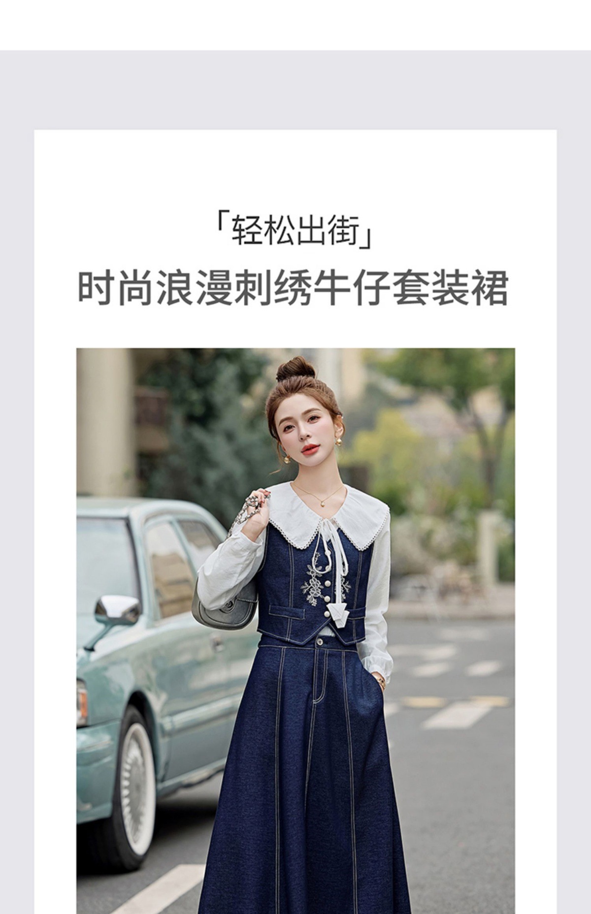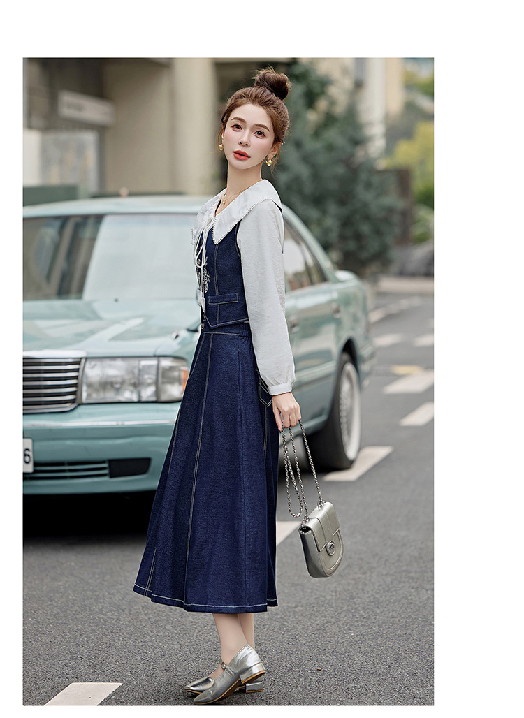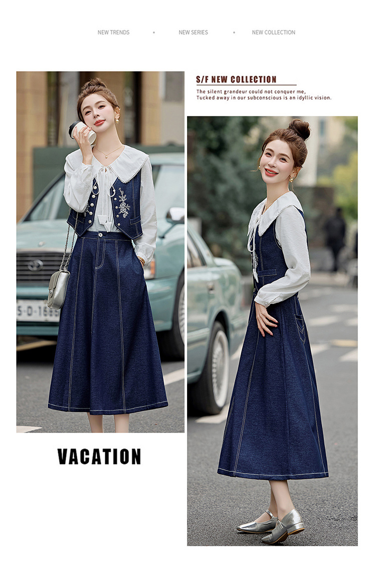 显瘦今年流行时尚套装女小个子长袖衬衣马甲半身裙三件套YM9951A