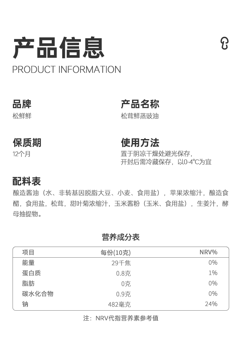 【松鲜鲜】松鲜鲜松茸鲜蒸豉油 去腥增鲜一步到位 精准拿捏蒸鱼调味的精髓 轻松锁住鱼肉的鲜嫩 0防腐剂0甜味剂0蔗糖 只有健康鲜香 放心吃轻负担