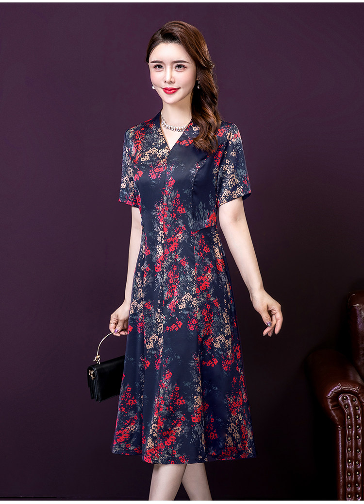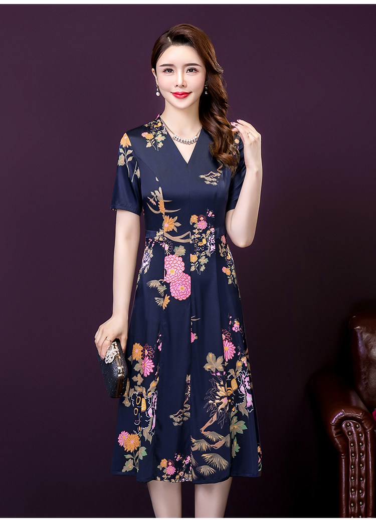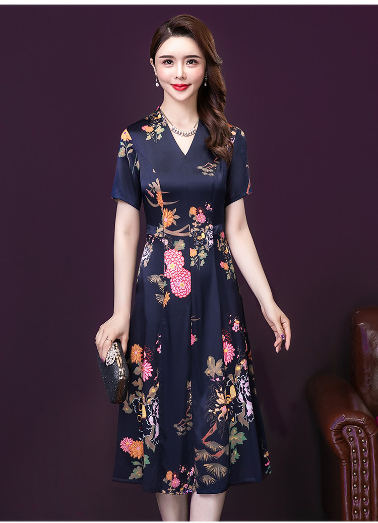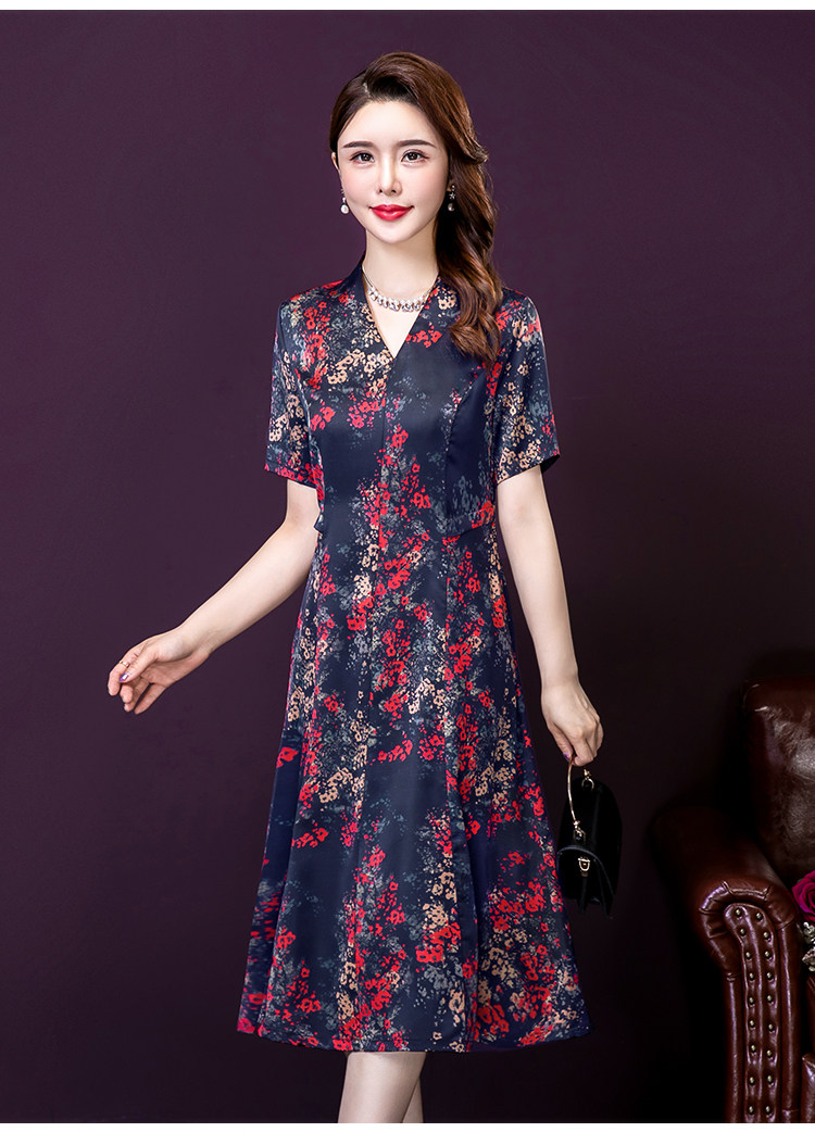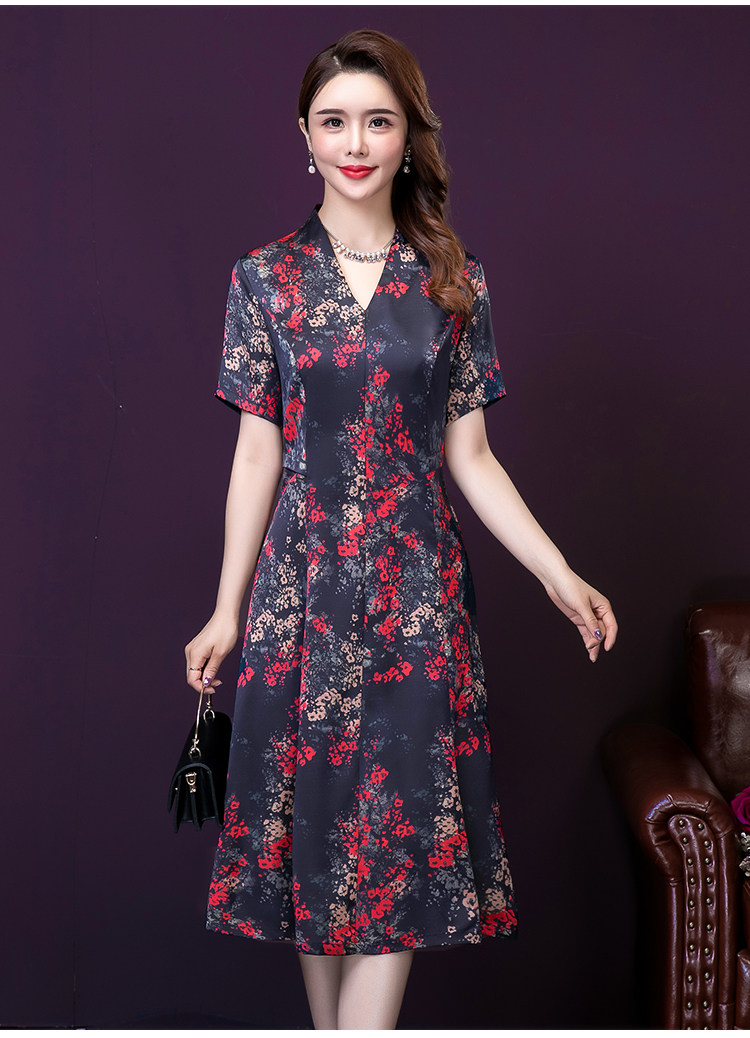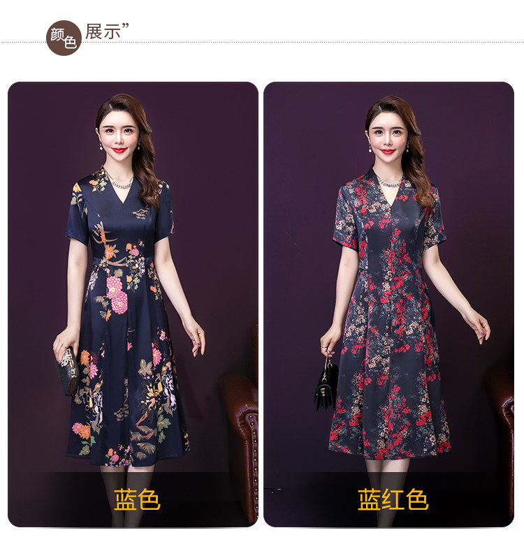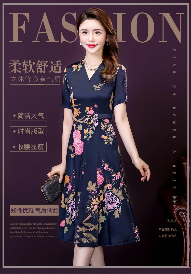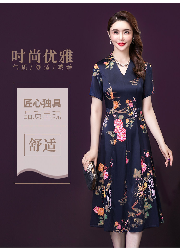 LFJR-8337实拍夏新款 阔太太气质印花重磅仿真丝V领连衣裙