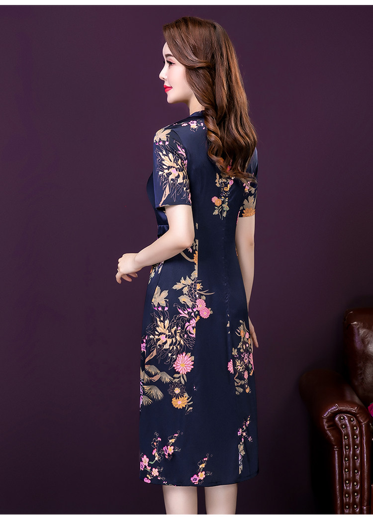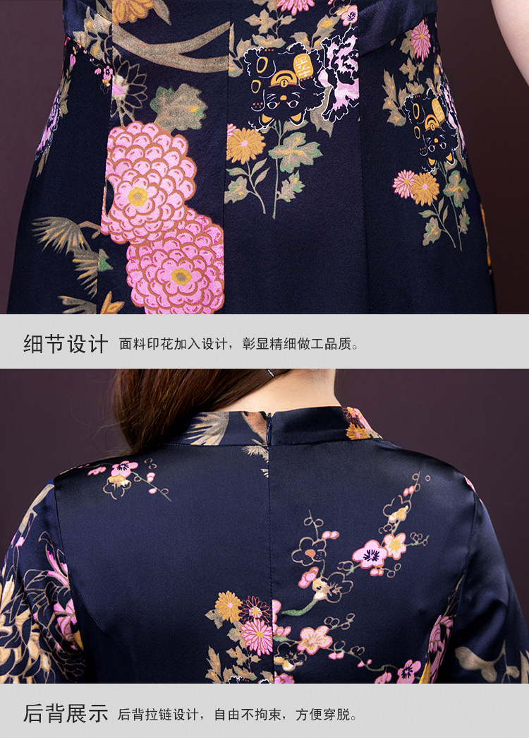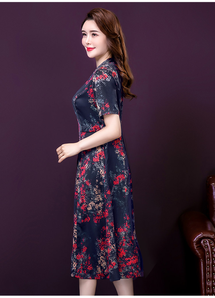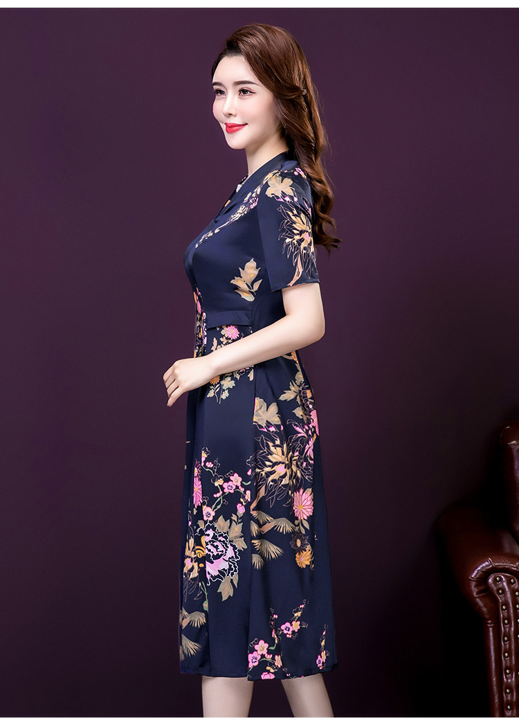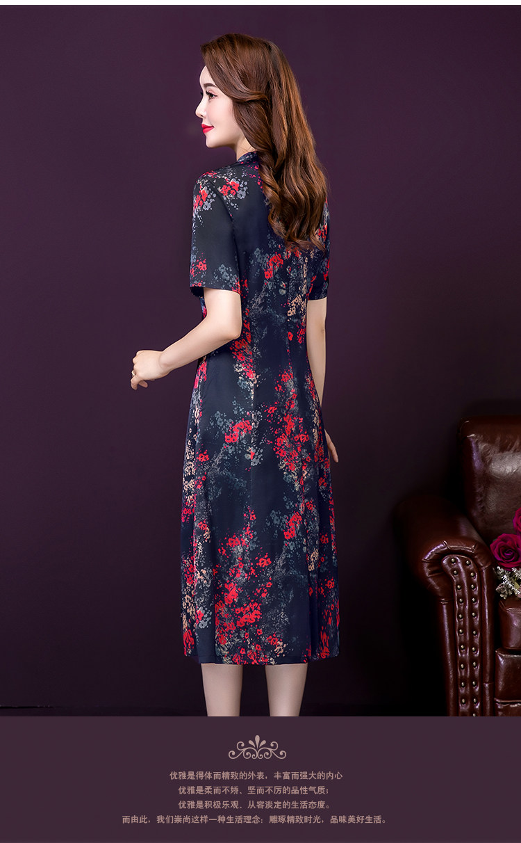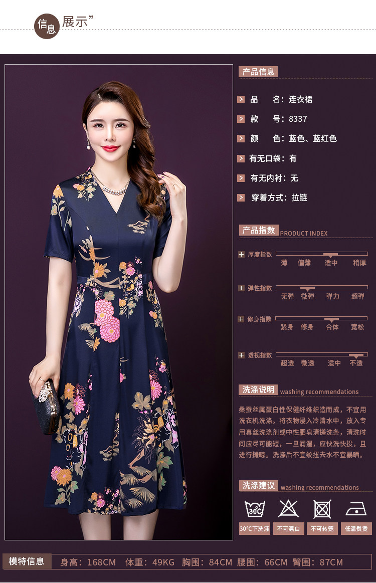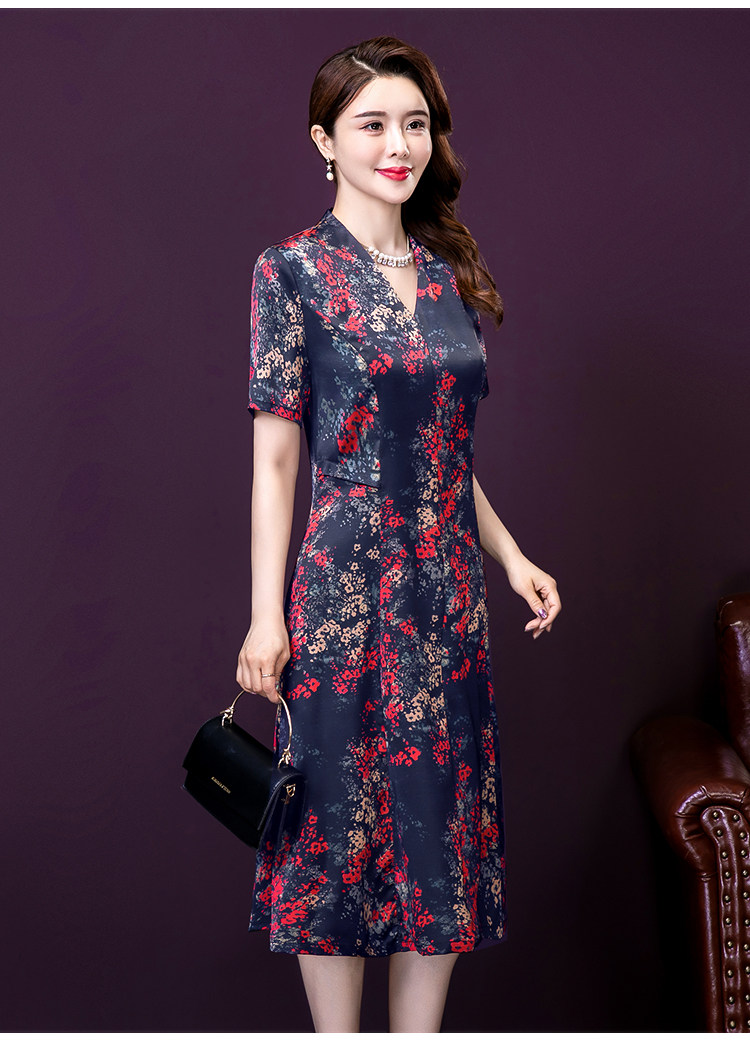 LFJR-8337实拍夏新款 阔太太气质印花重磅仿真丝V领连衣裙