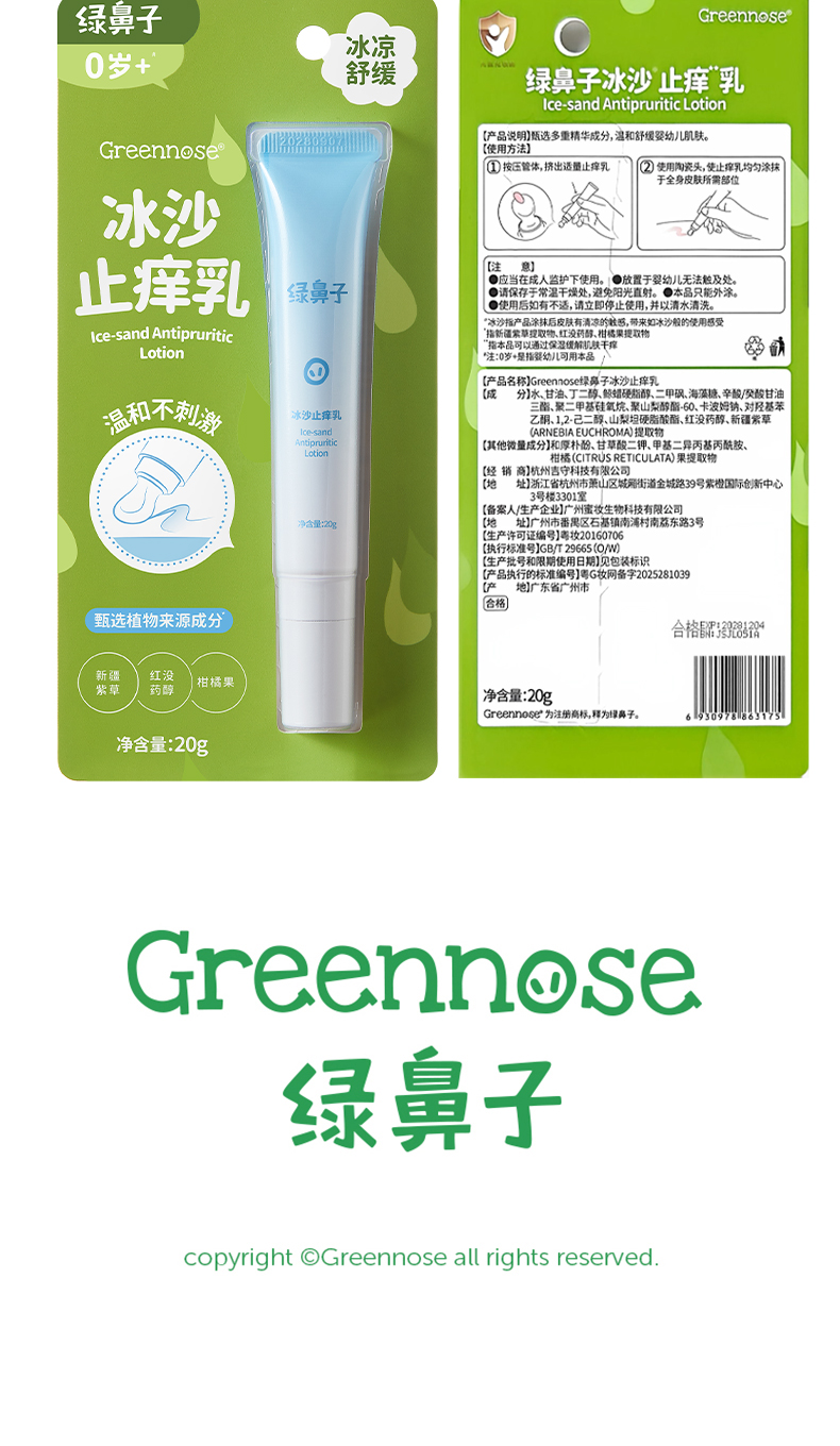 绿鼻子 冰沙止痒乳宝宝儿童专用蚊子蚊虫叮咬植物清凉舒缓紫草膏【该商品不支持用券】