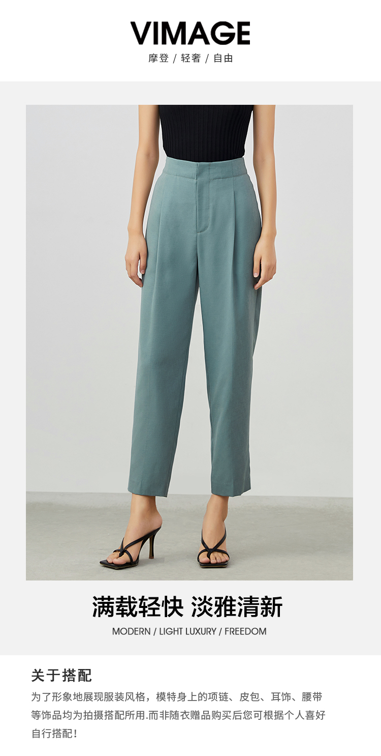VIMAGE/纬漫纪春季新款百搭显瘦锥形休闲裤女裤子V1705328