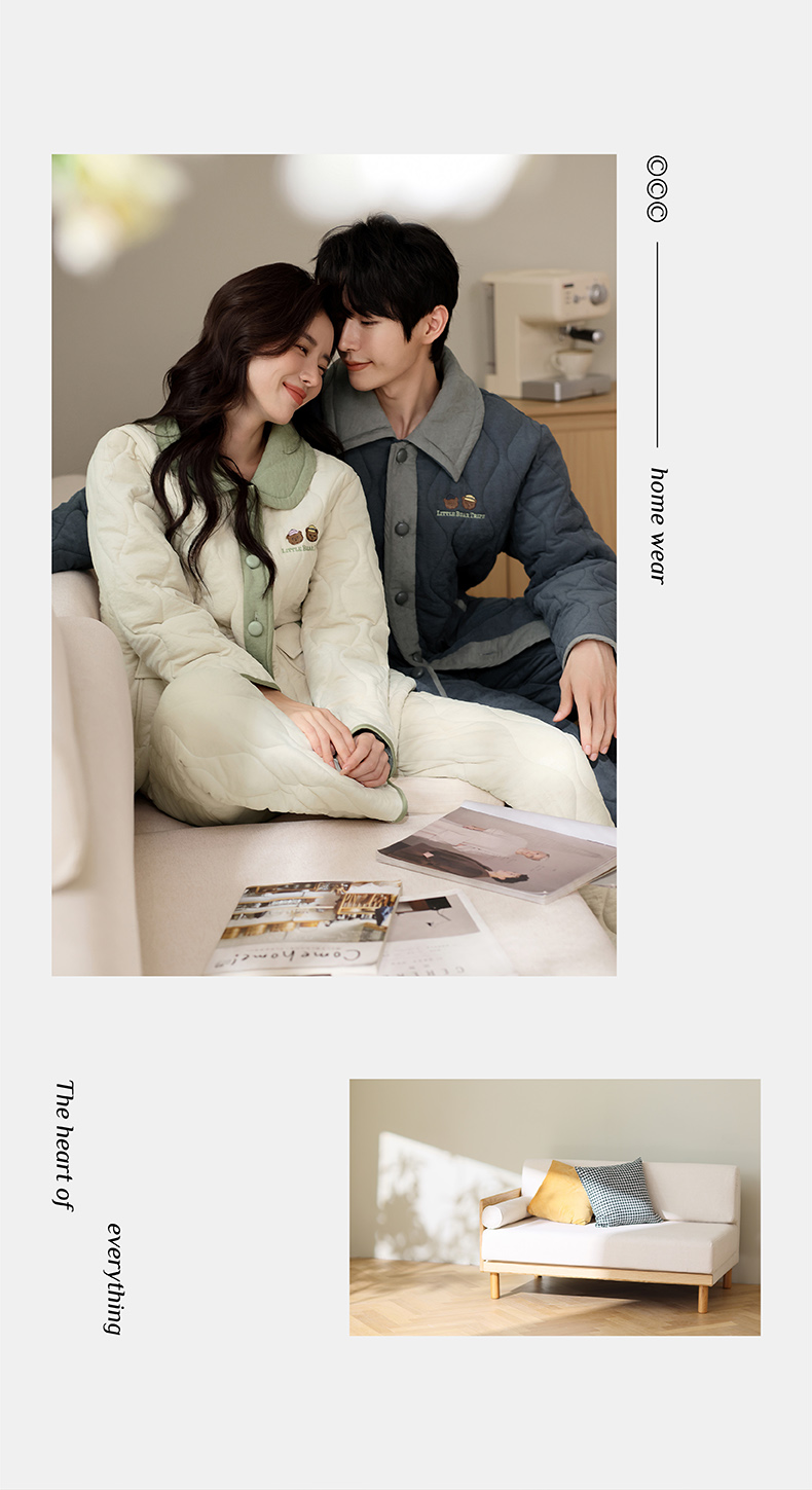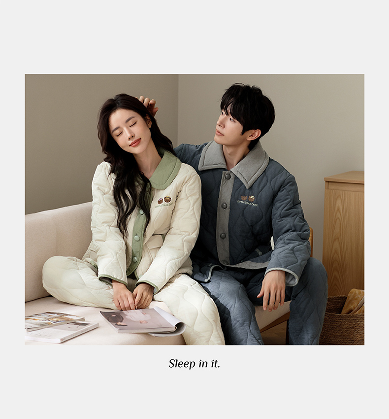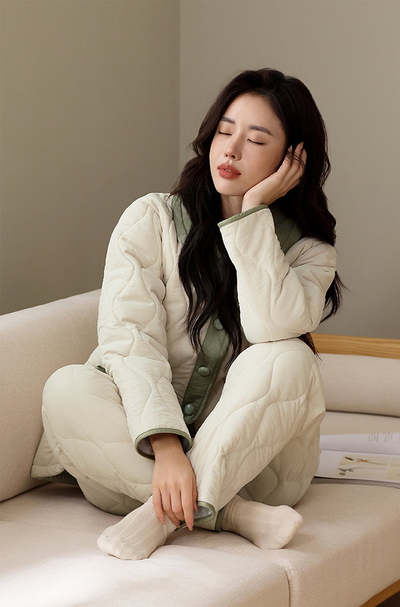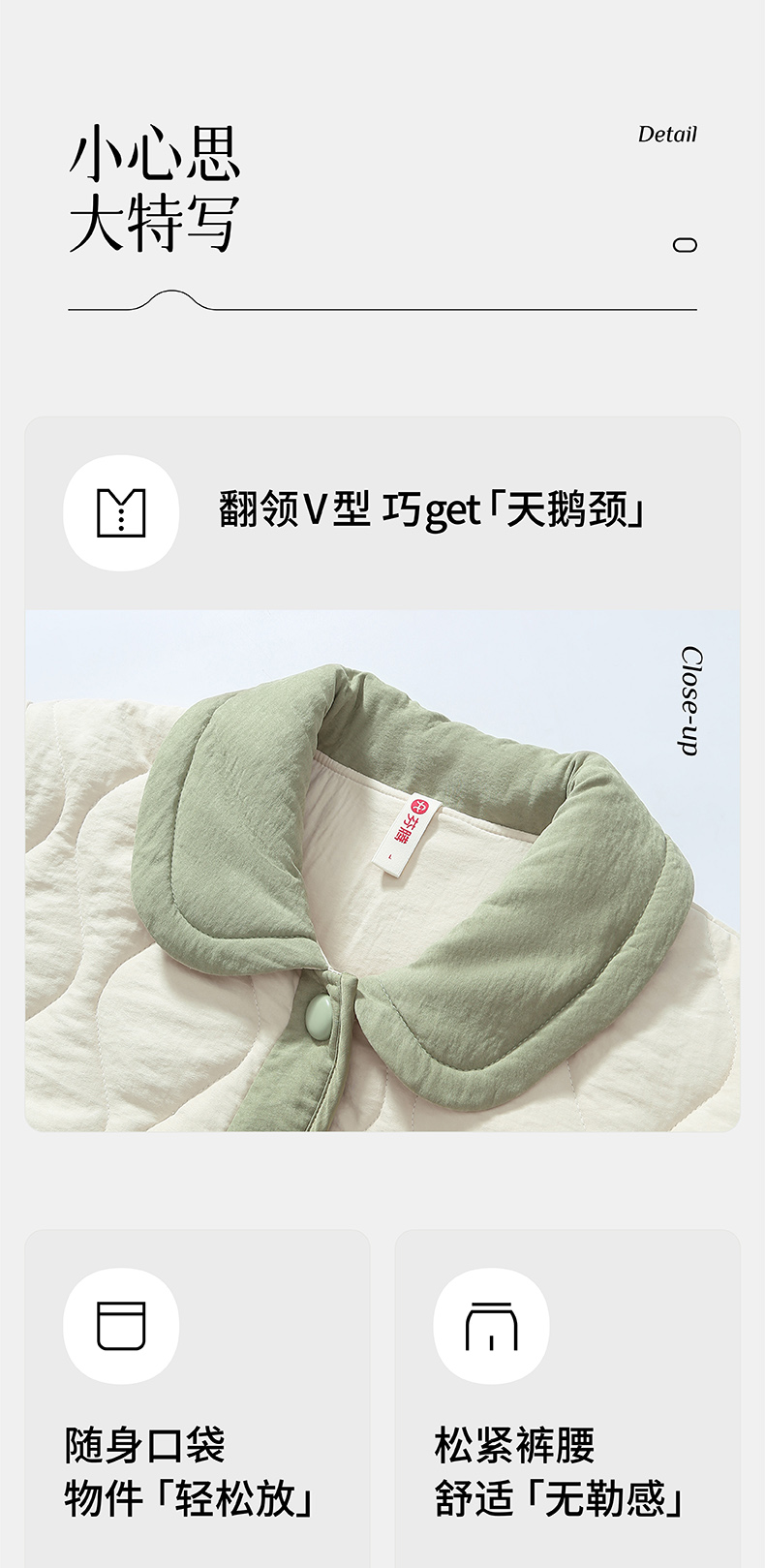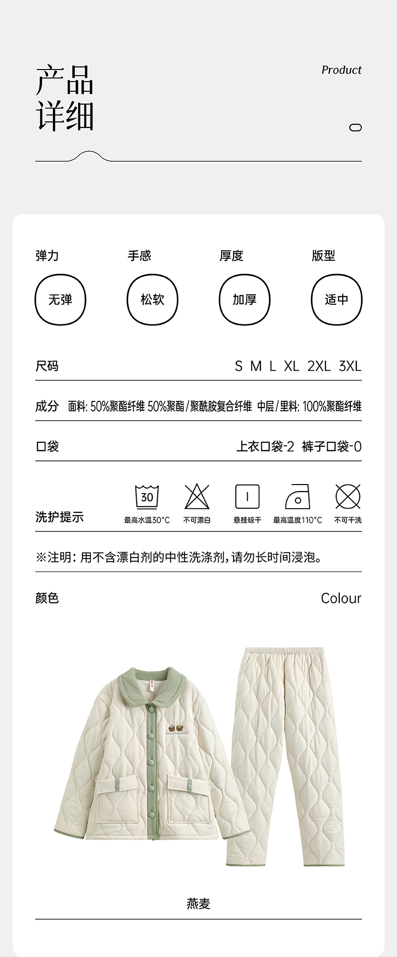 芬腾冬季女士三层夹棉翻领开衫睡衣大码套装珊瑚绒加绒加厚家居服