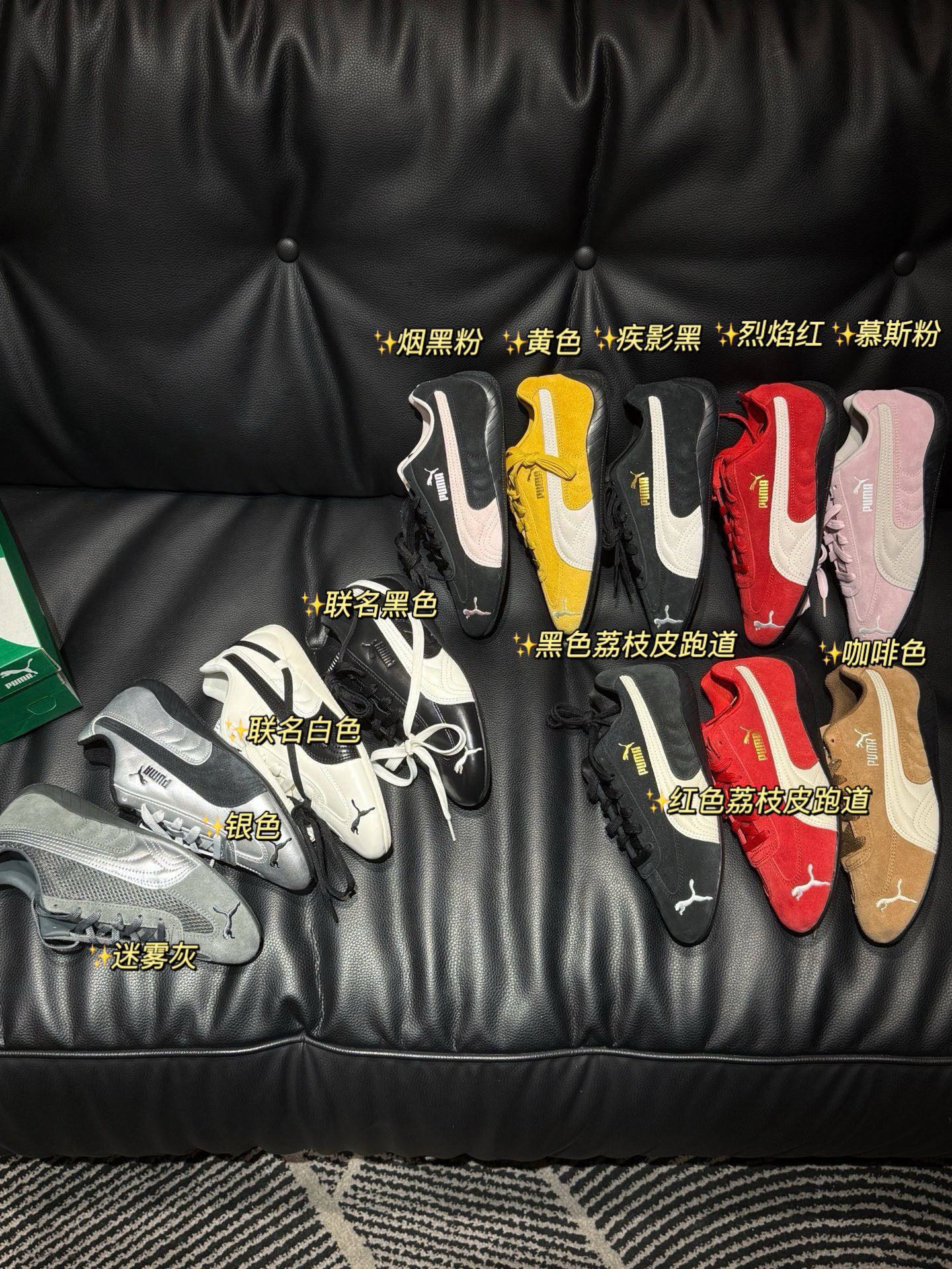 这种皮料❗️太难搞了,因为本身皮料光泽度很高,有一点点瑕疵就会暴露无疑,所以这种形态的赛车鞋真的稀有𝐒𝐩𝐞𝐞𝐝𝐜𝐚𝐭全系列最新配色❗️𝐑𝐨𝐬𝐞联名款也安排上,一共12个配色,恨不得全部拿下
