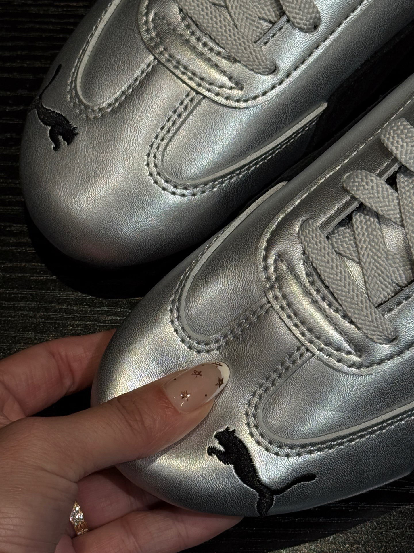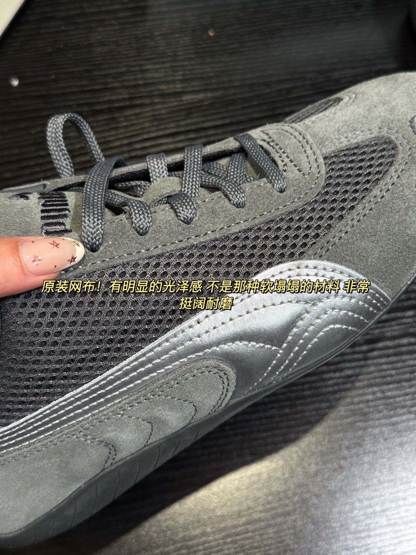 所以这不止是一双赛车鞋,更是品位同频共振的表现😘手工覆以液态银胶质层