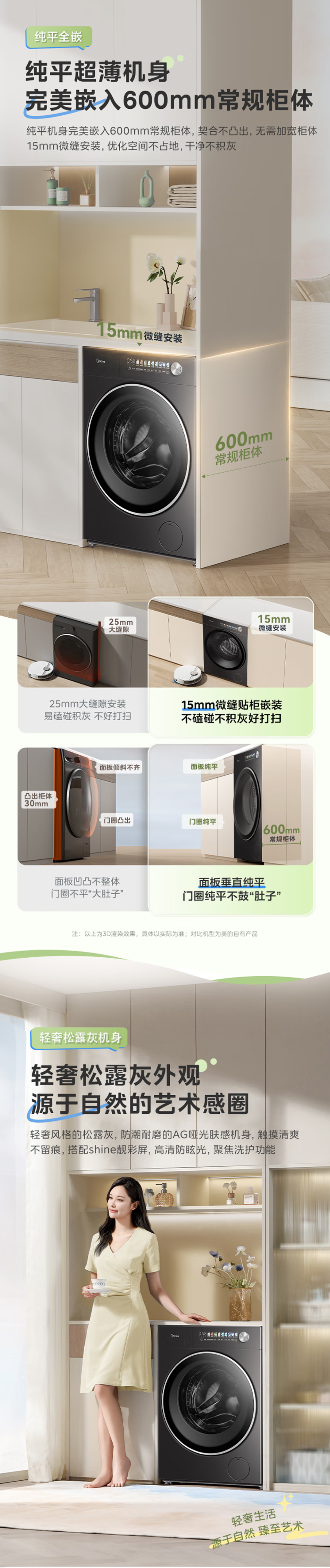 美的(Midea)滚筒洗衣机全自动家用 MG10VC1 10公斤纯平全嵌 元气 医护级除菌螨 一级能效