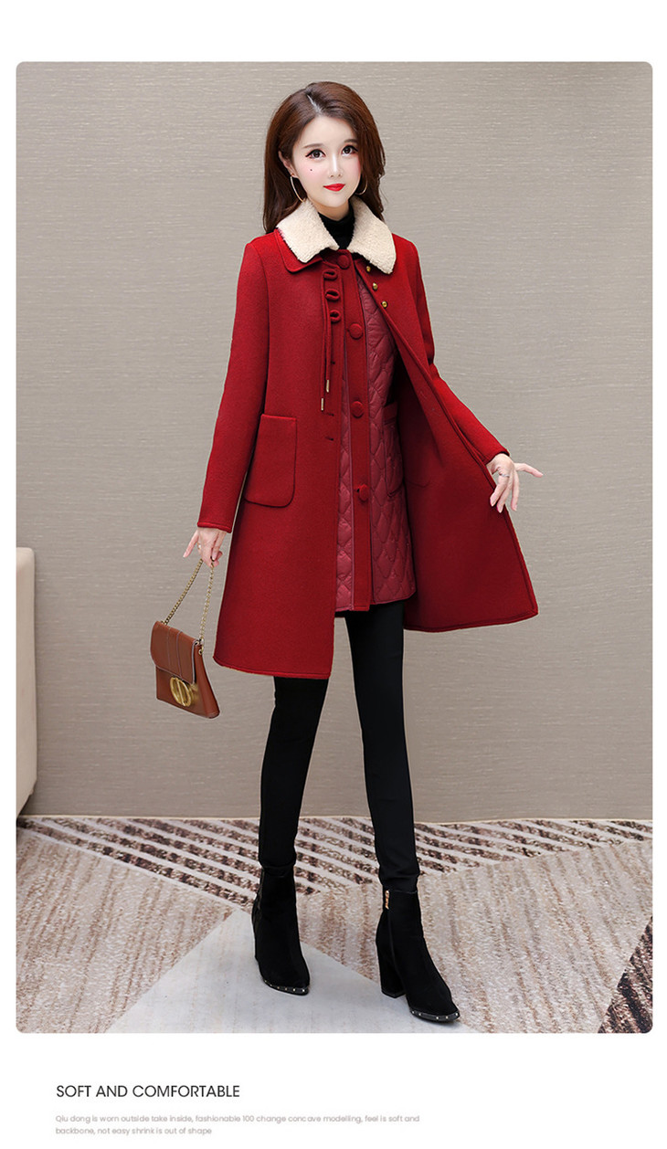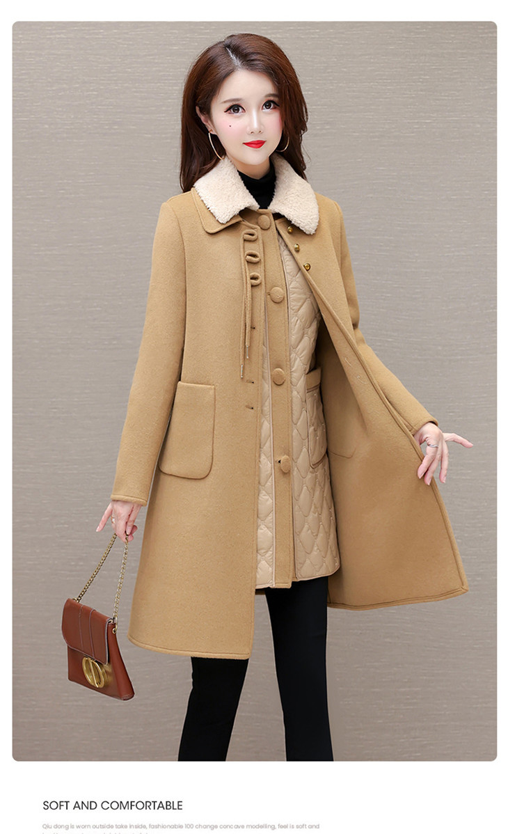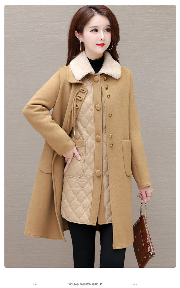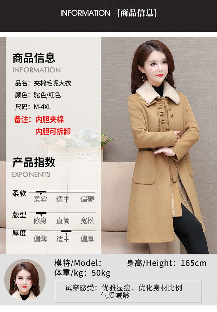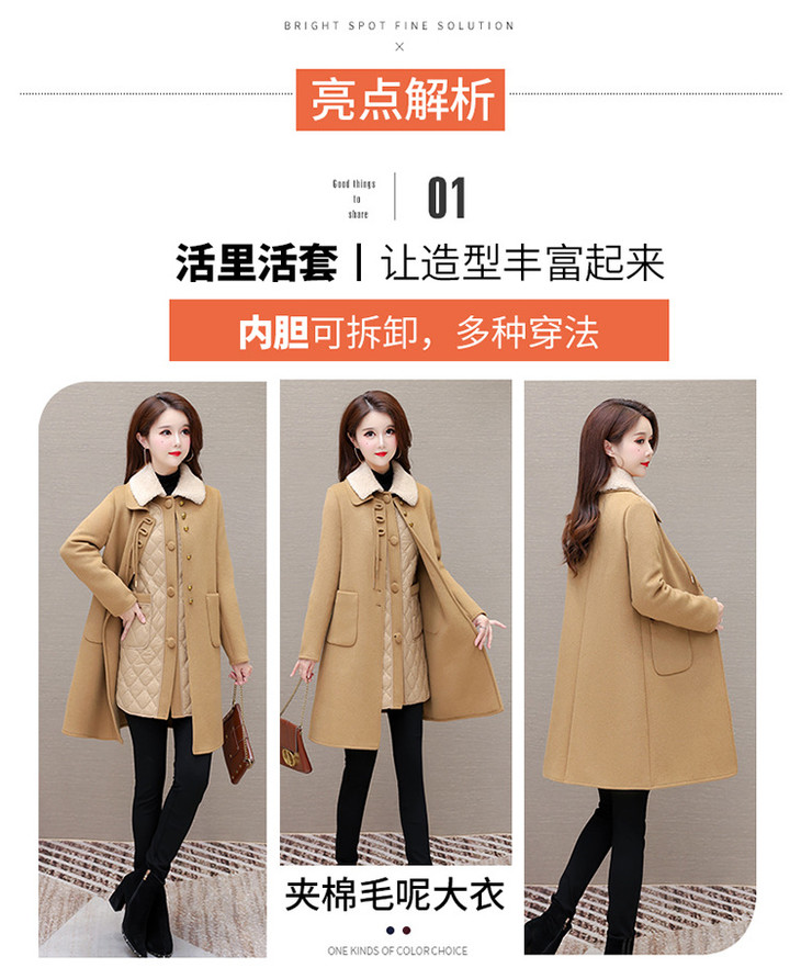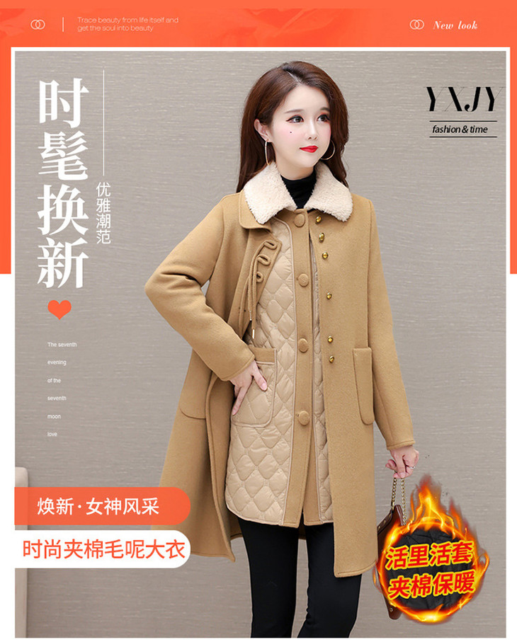 夹棉毛呢大衣内胆可拆羊毛呢子外套,厚款保暖时尚女装QYM-YXJY-79257-Y