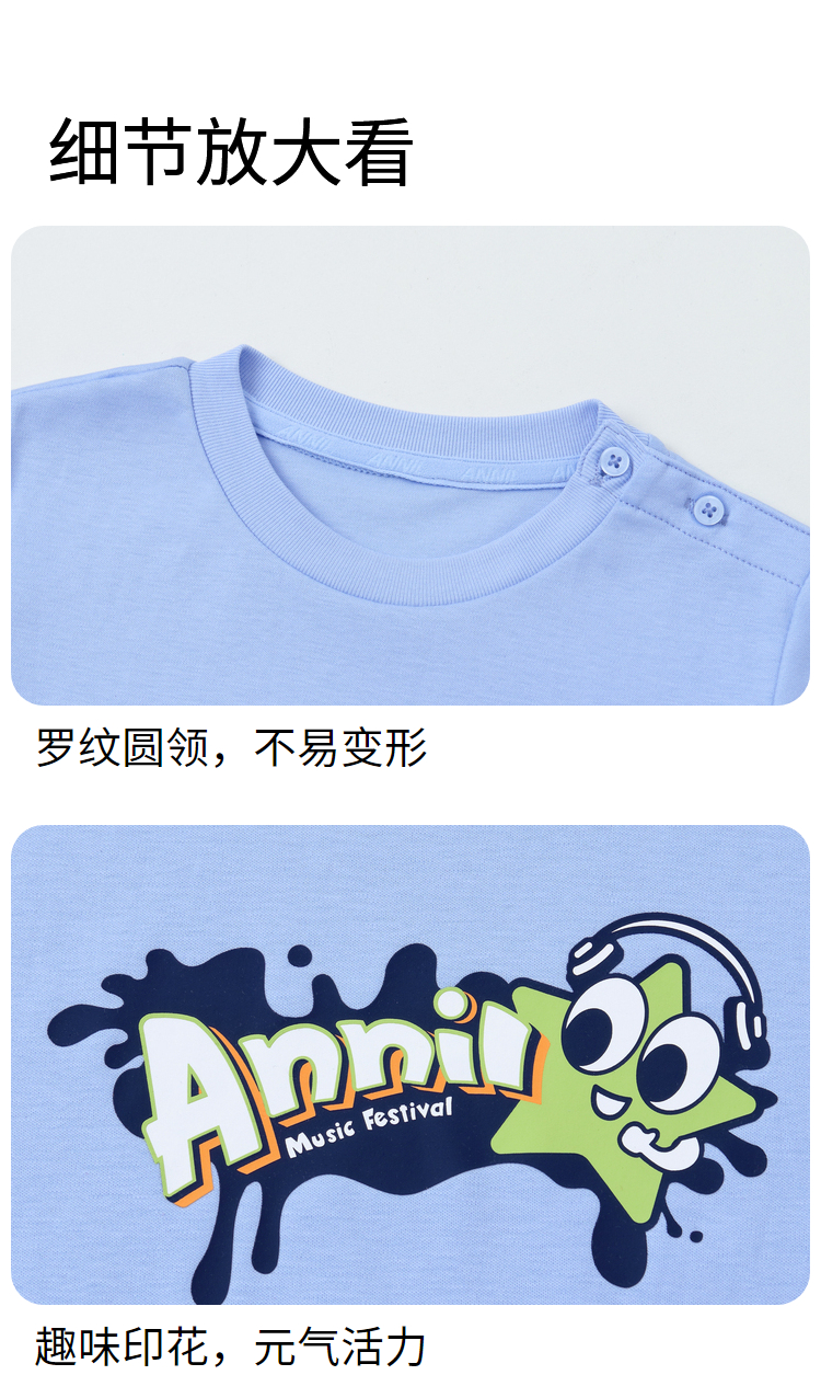 【实体店同款】男童萌趣星星印花全棉T恤夏季新款安奈儿童装XB421676