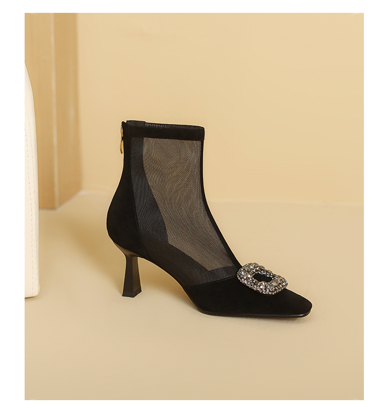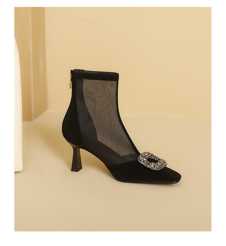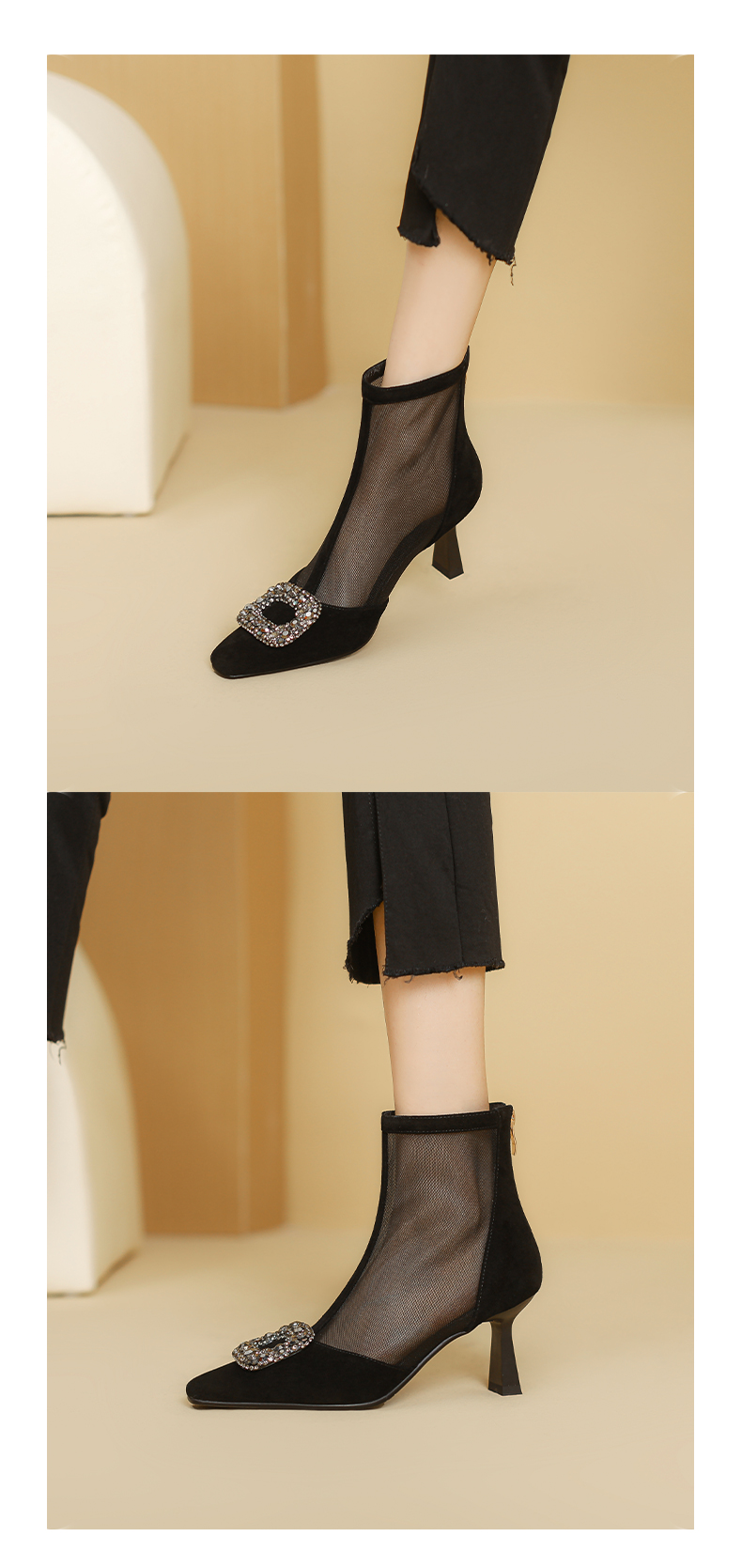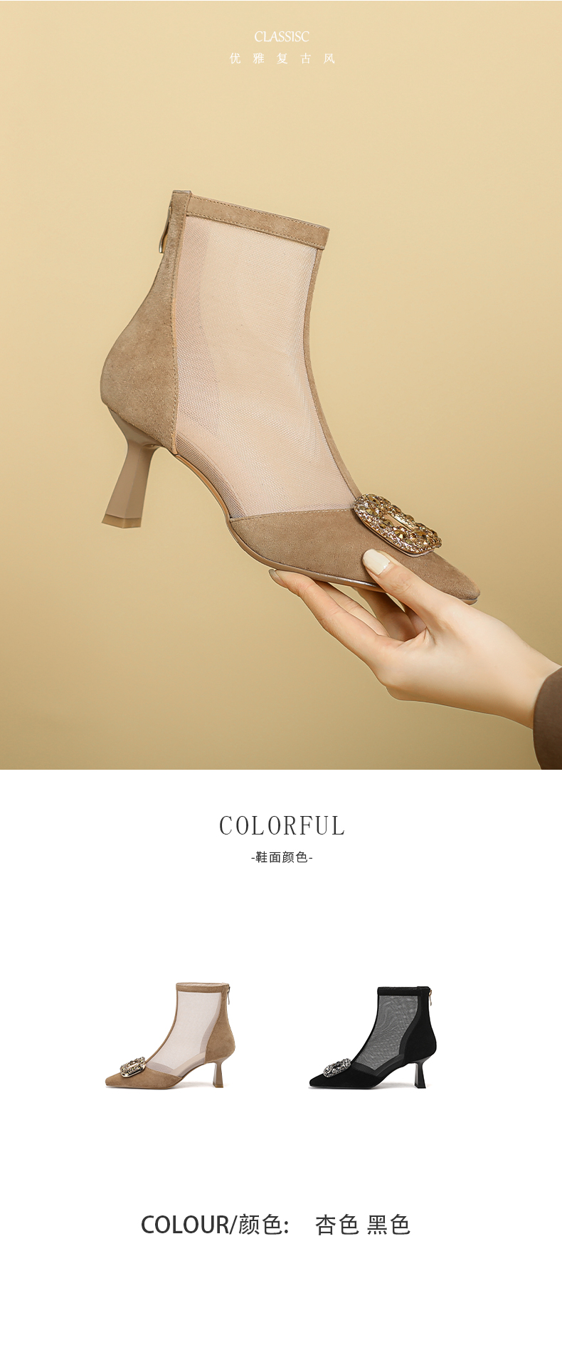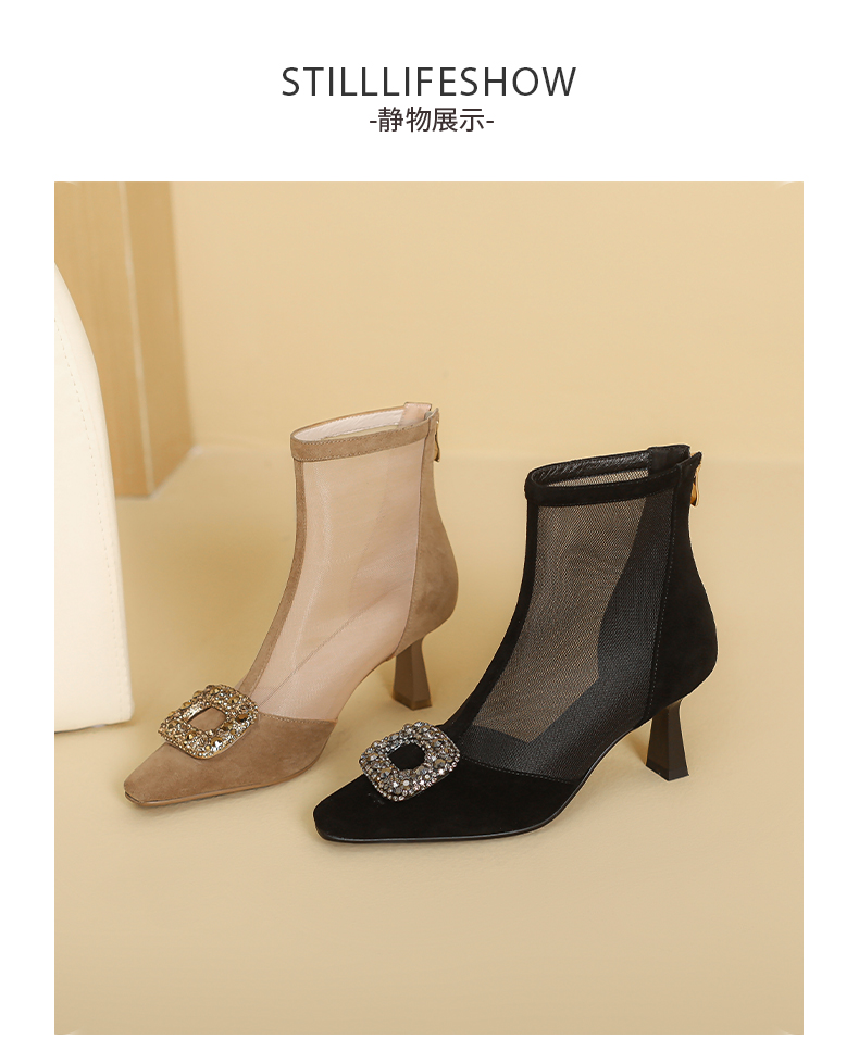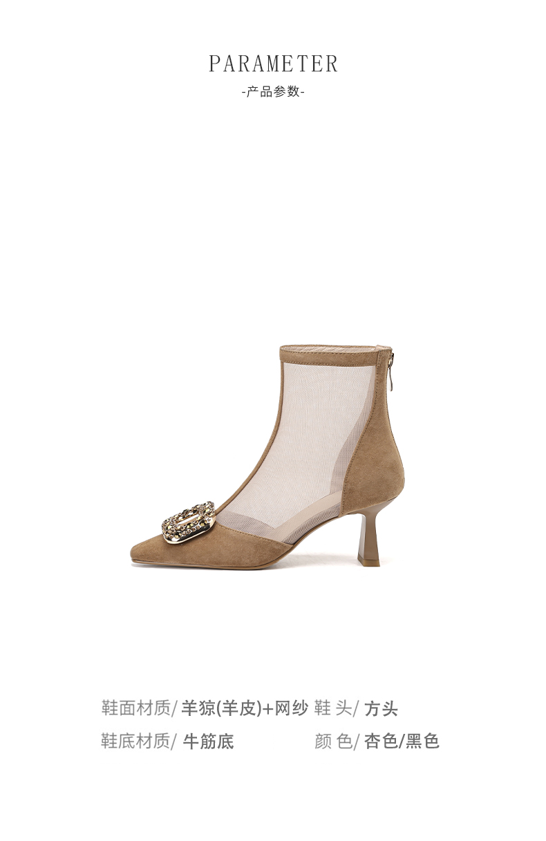 【预售5天】磨砂皮网靴,高跟时尚细跟方头珍珠扣夏季短靴PLGZ&A123-3