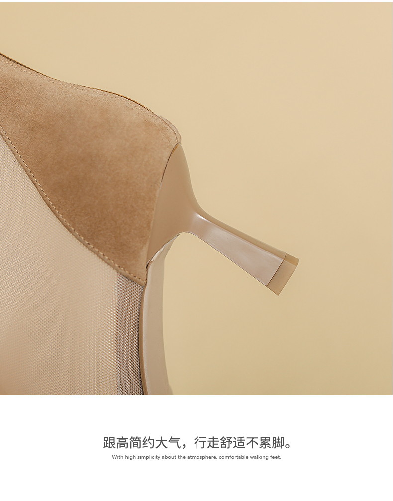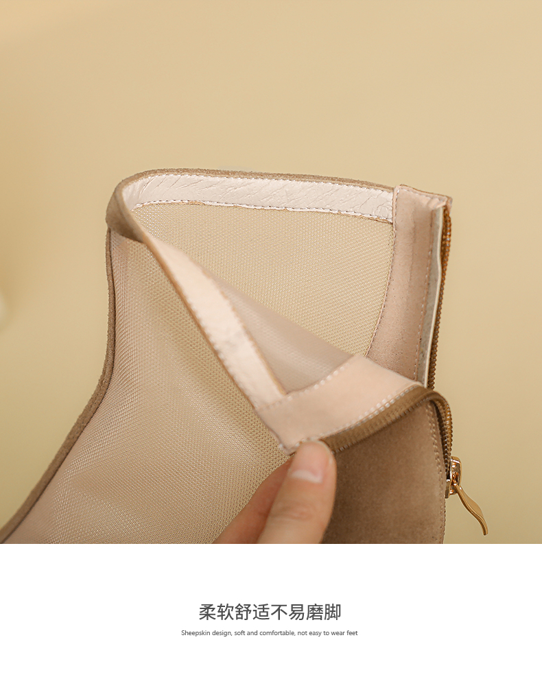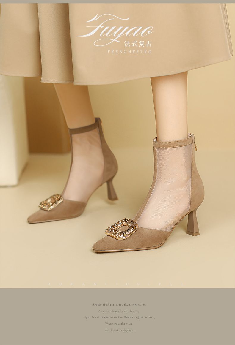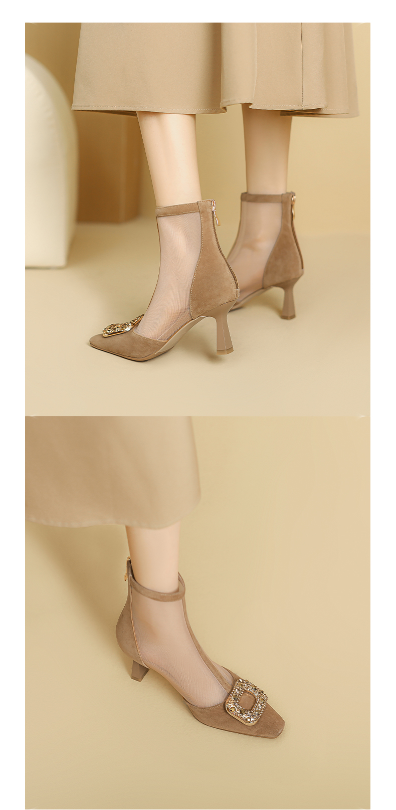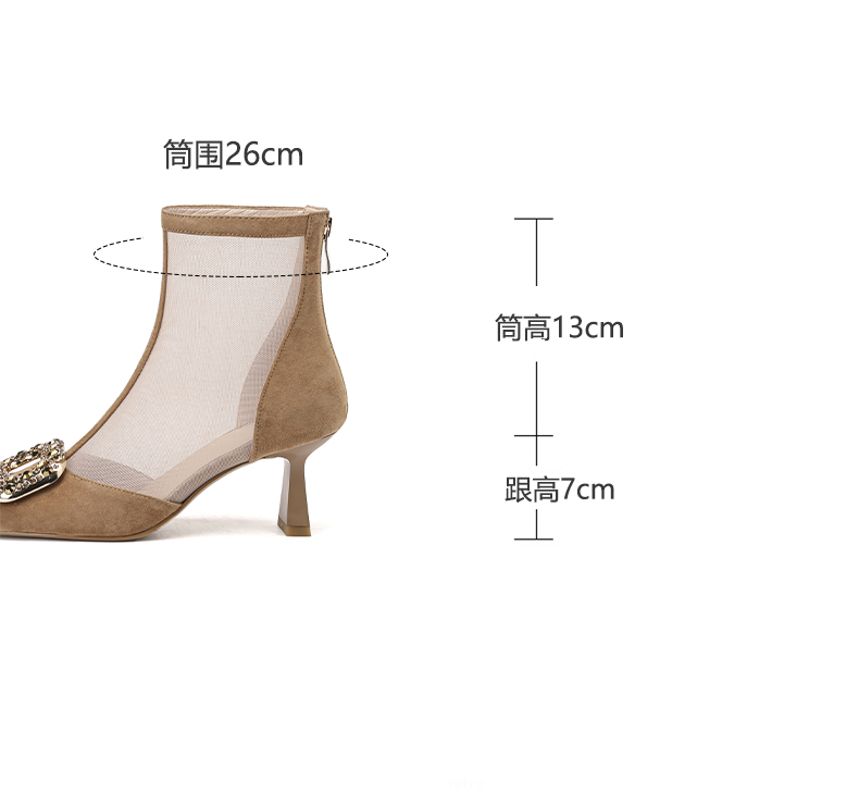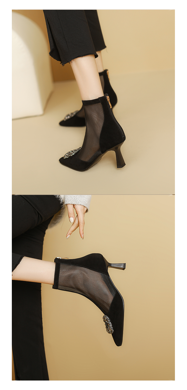 【预售5天】磨砂皮网靴,高跟时尚细跟方头珍珠扣夏季短靴PLGZ&A123-3