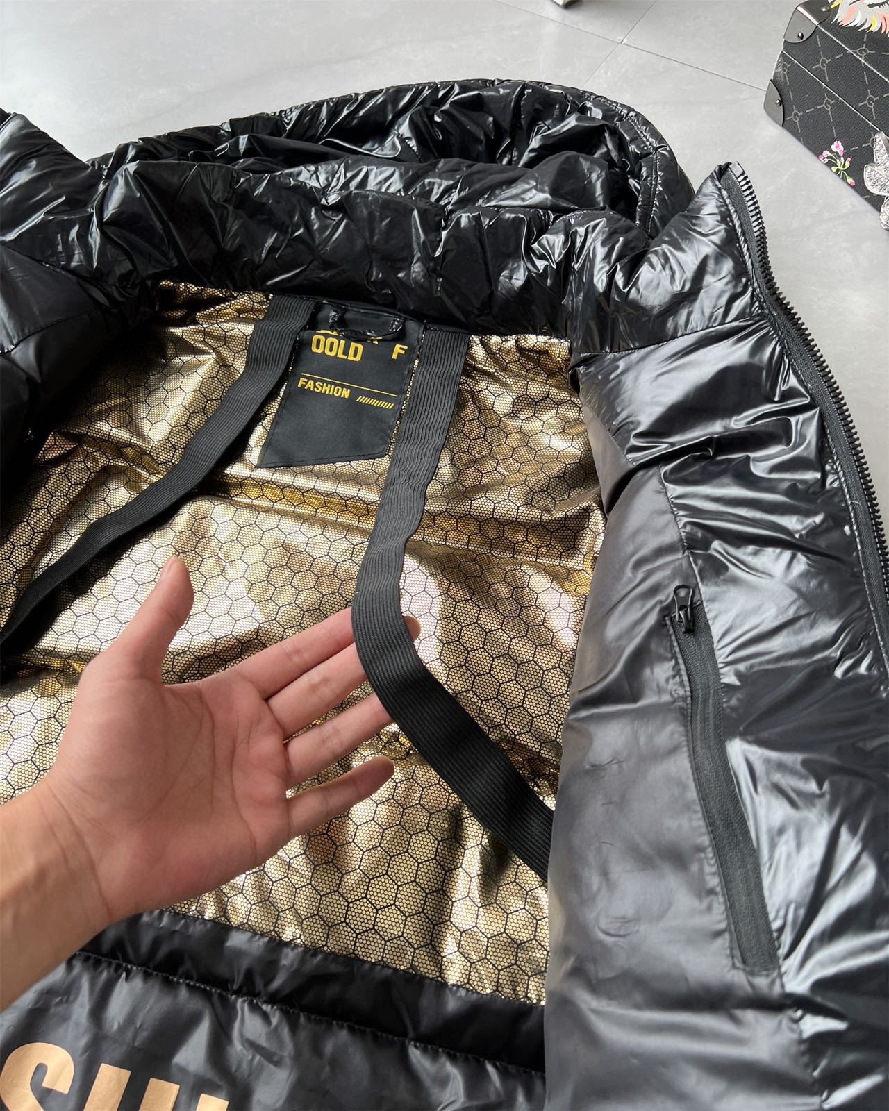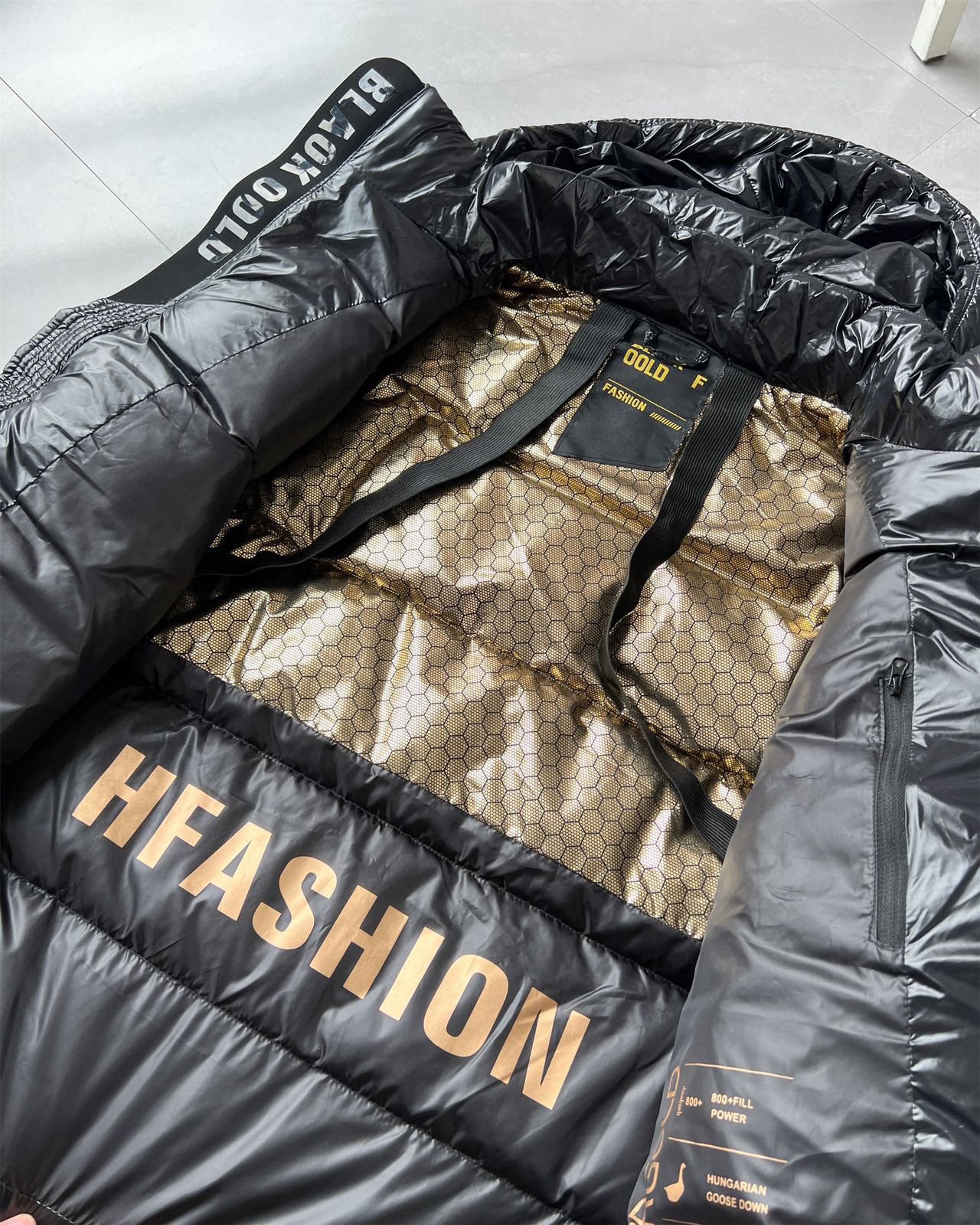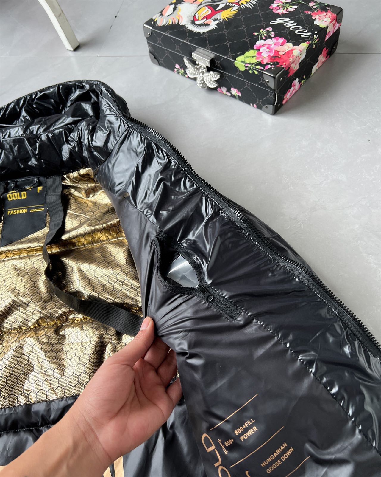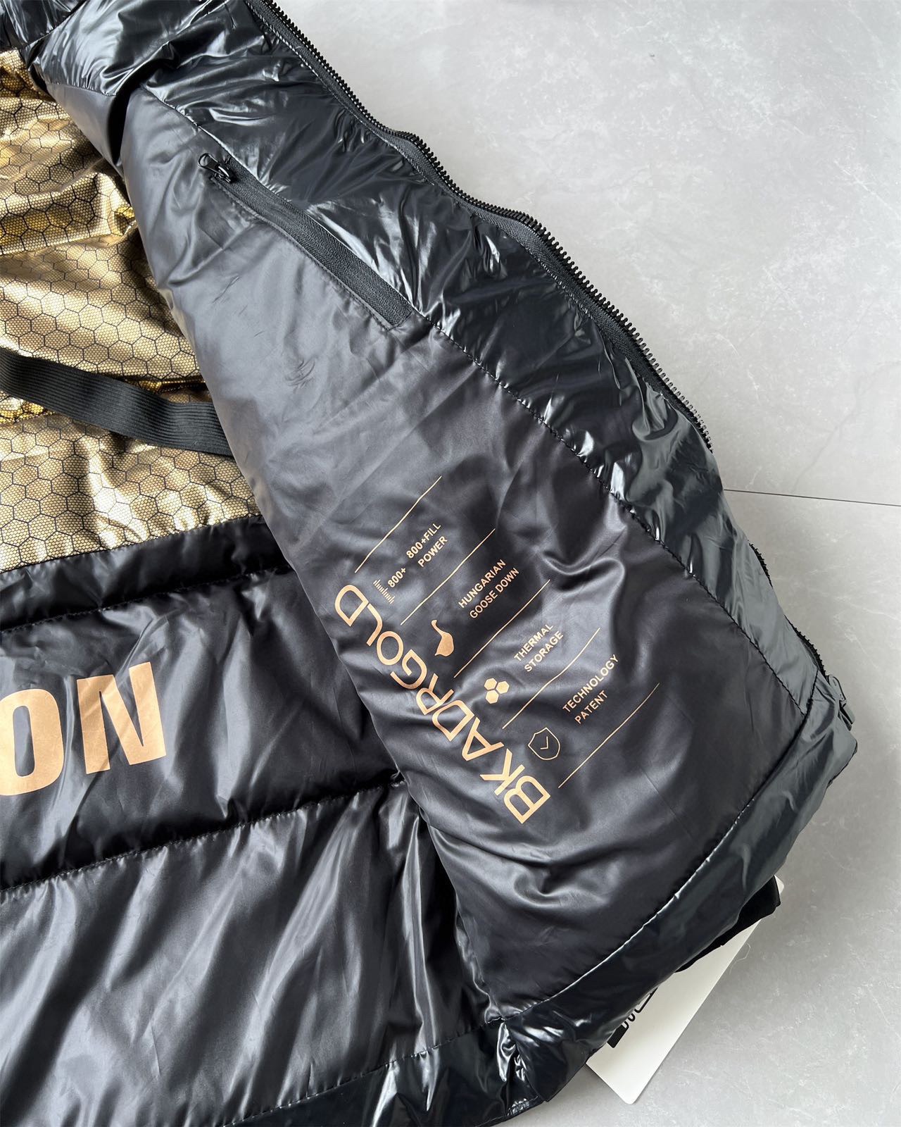 黑金羽绒服内有热反射拼接能够有效降低热能消失这种银离子特殊保温面料
