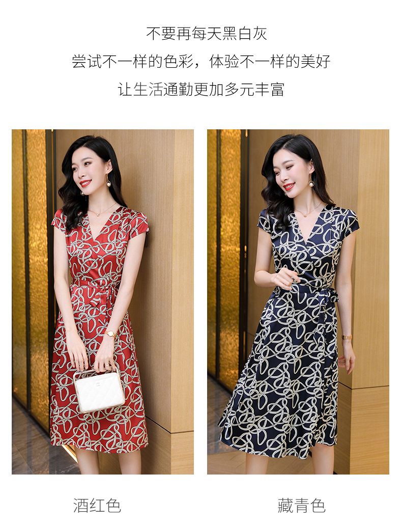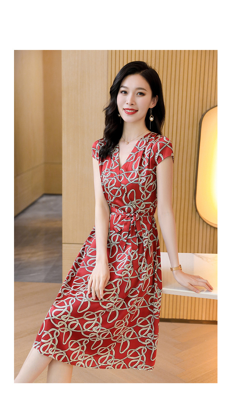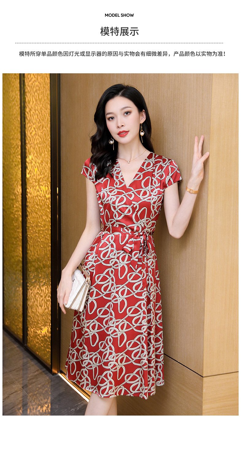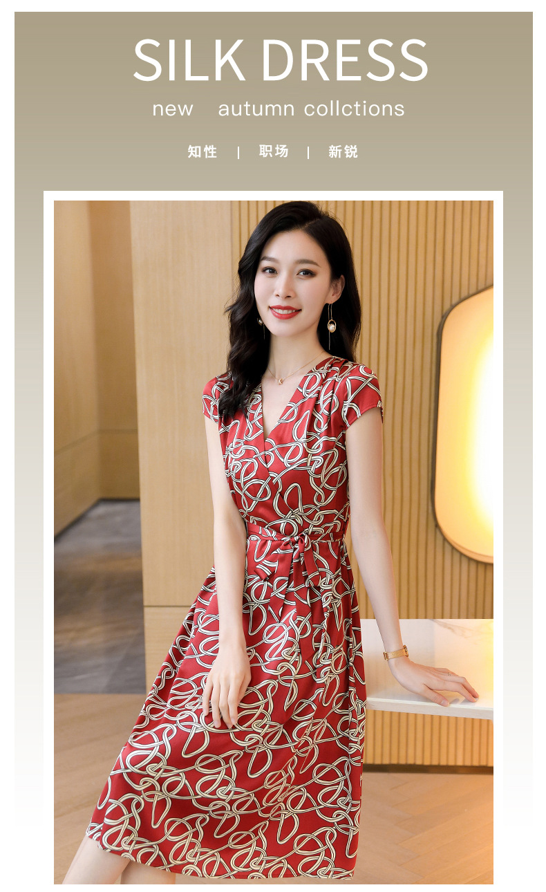 ASE-2388 V领气质时尚优雅大气真丝连衣裙