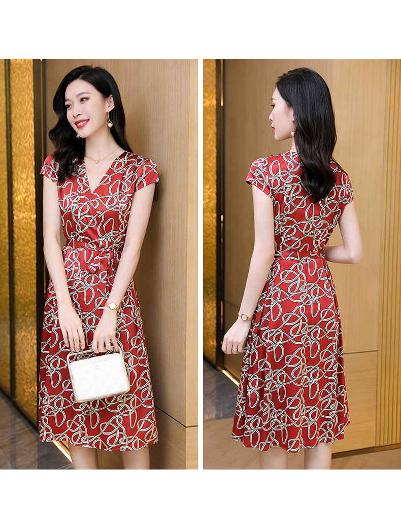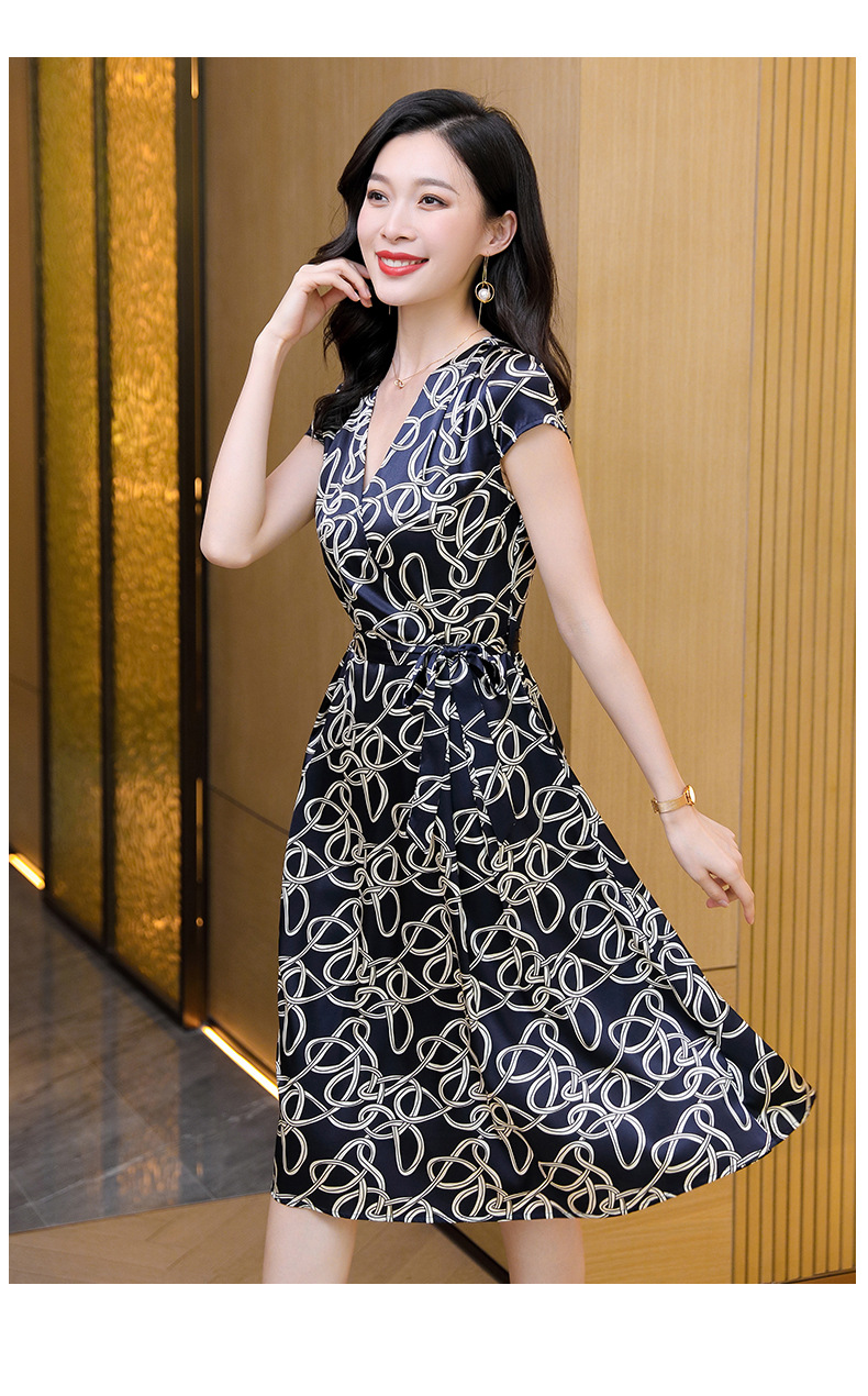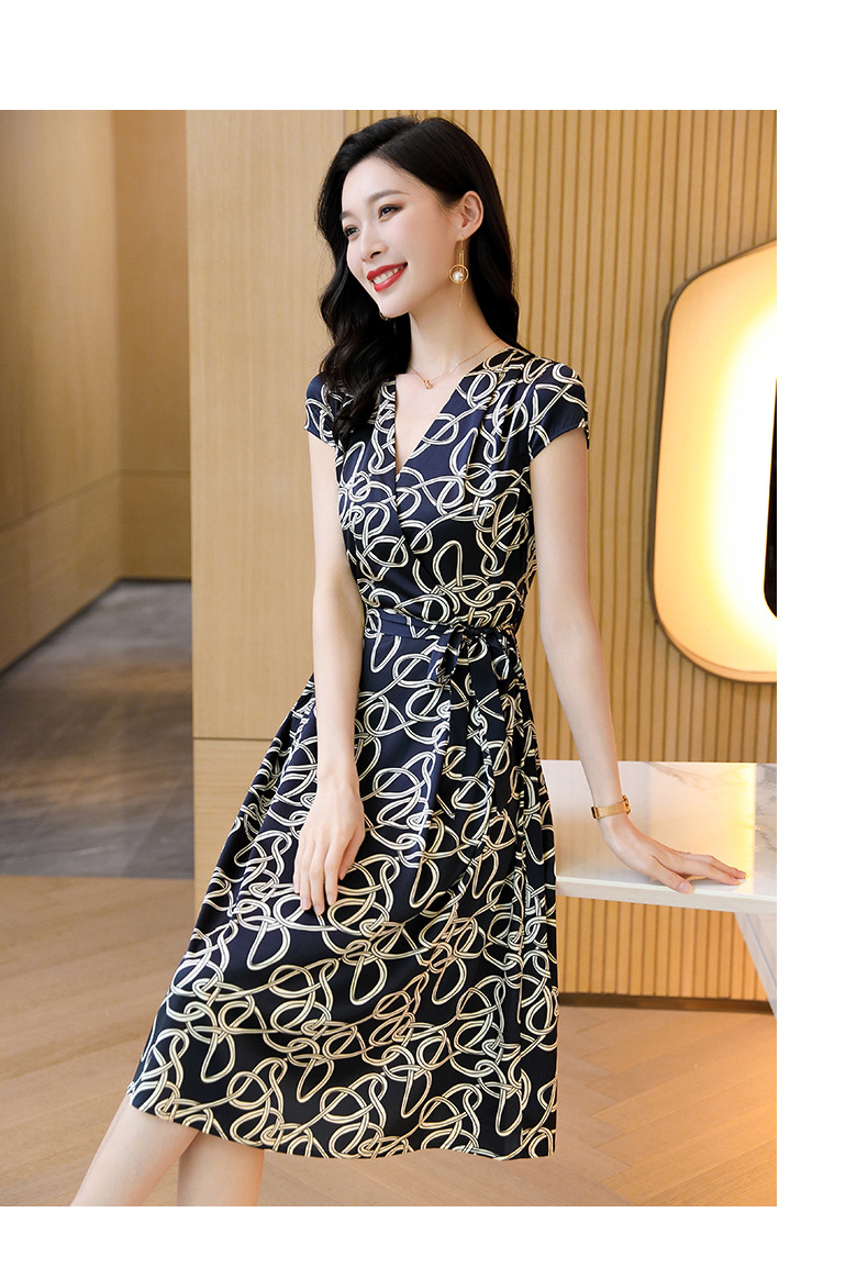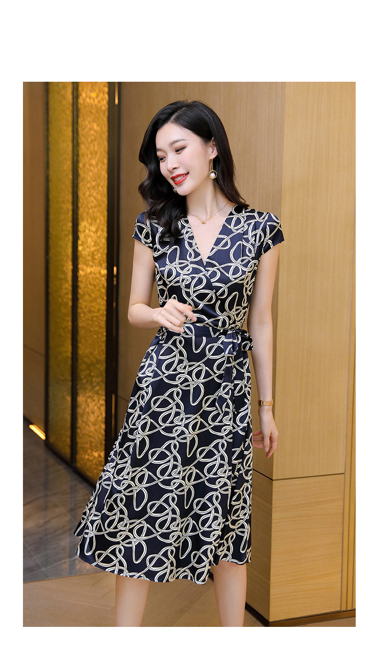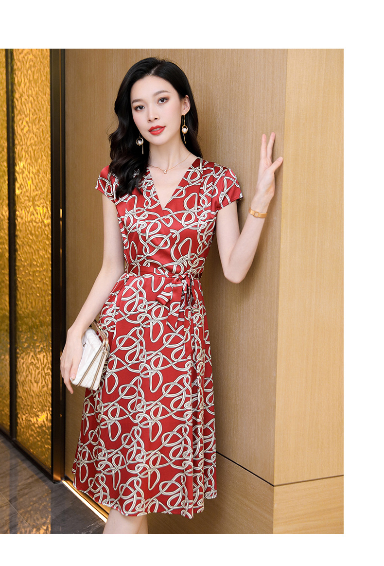 ASE-2388 V领气质时尚优雅大气真丝连衣裙