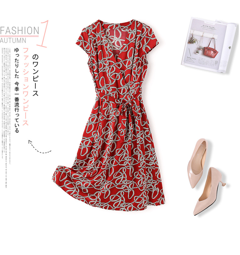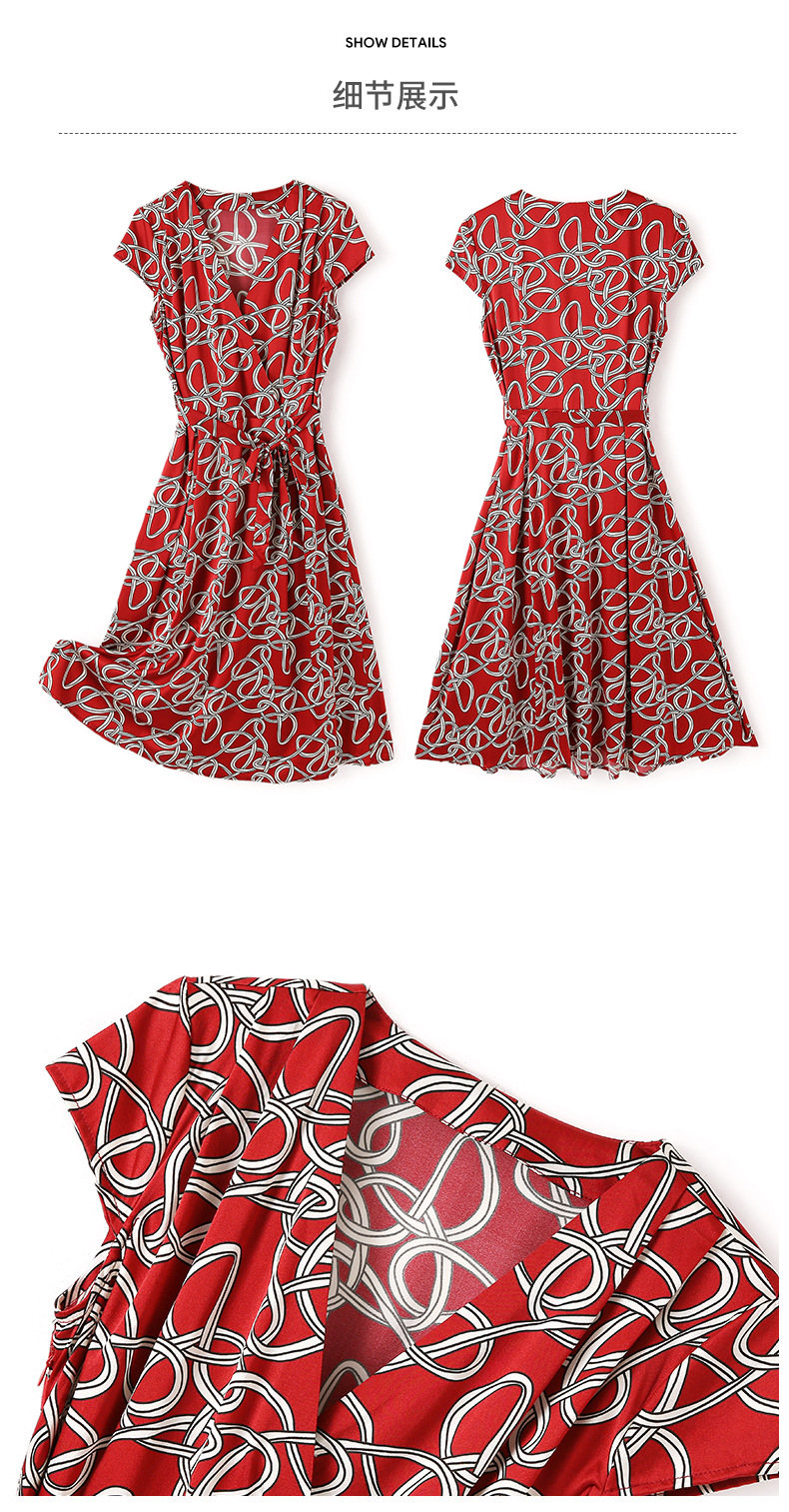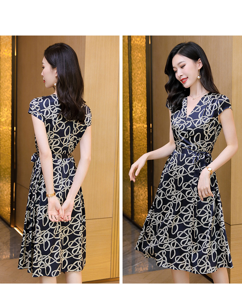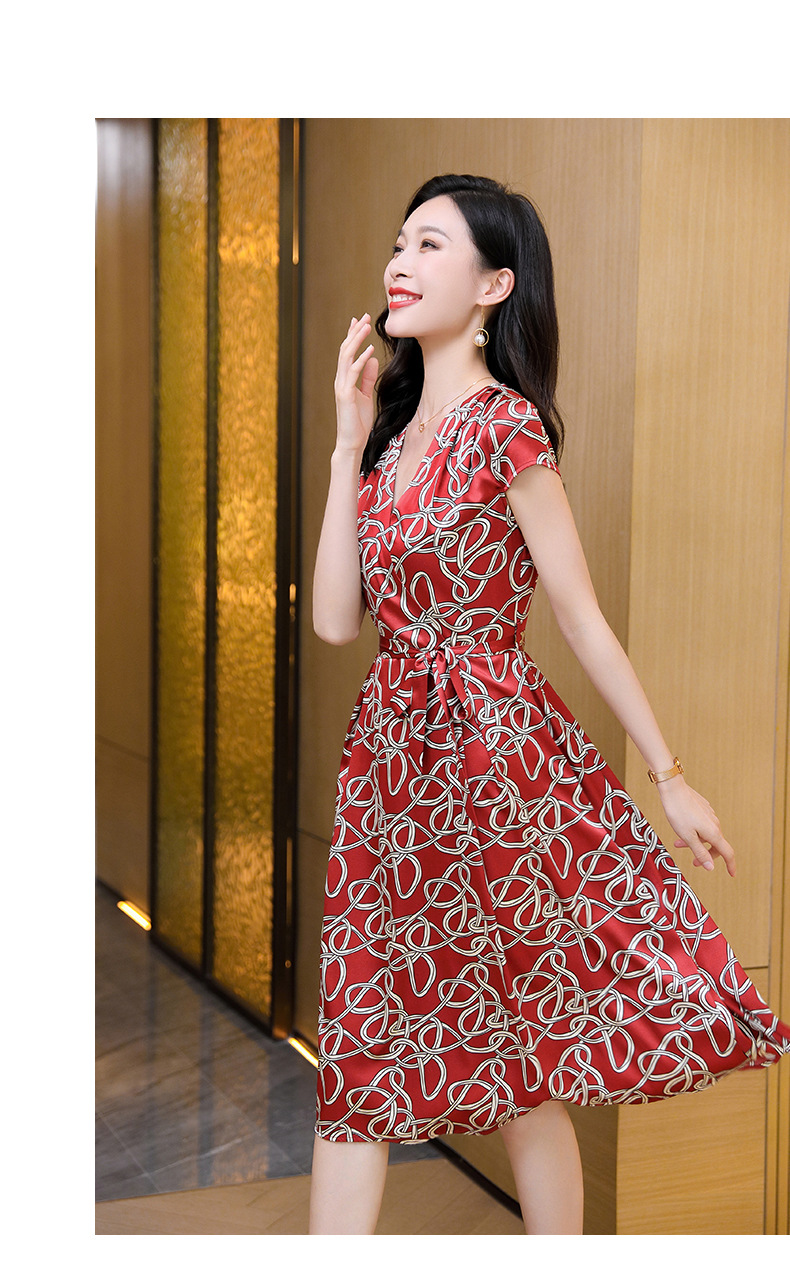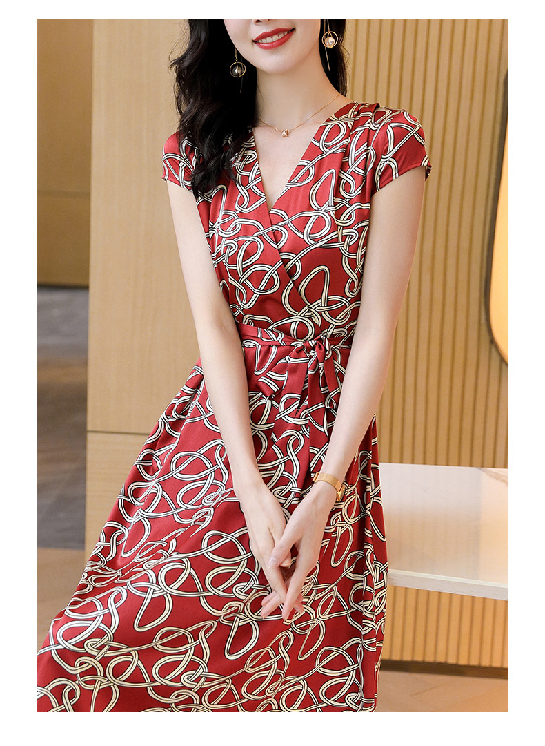 ASE-2388 V领气质时尚优雅大气真丝连衣裙