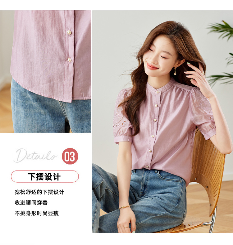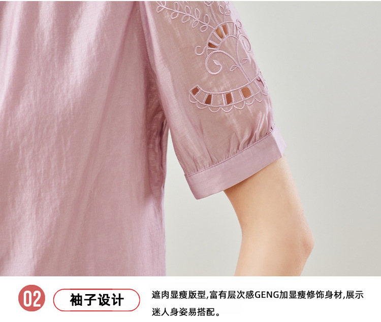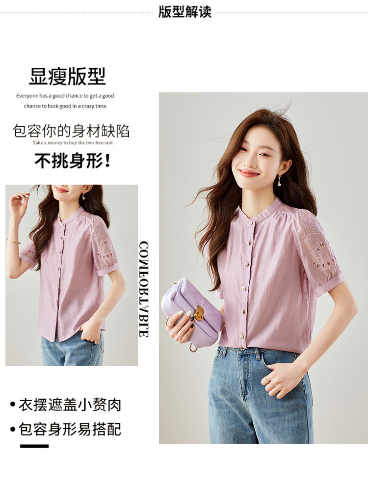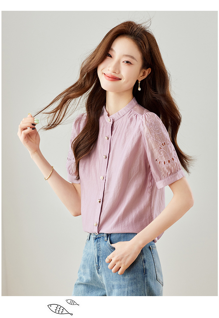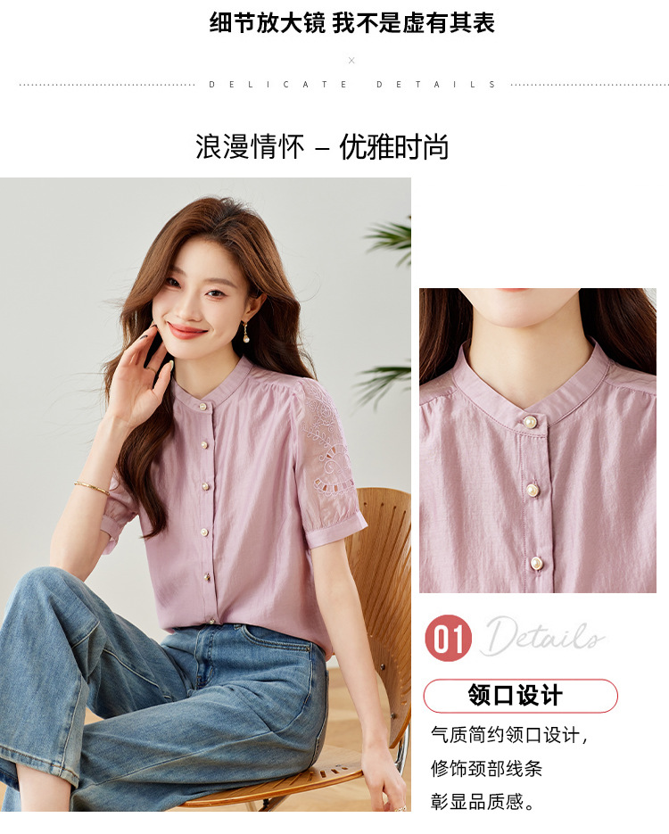 GT 6L 609-A#8551##45~镂空刺绣泡泡袖天丝衬衫女2024夏装法式小衫感别致上衣