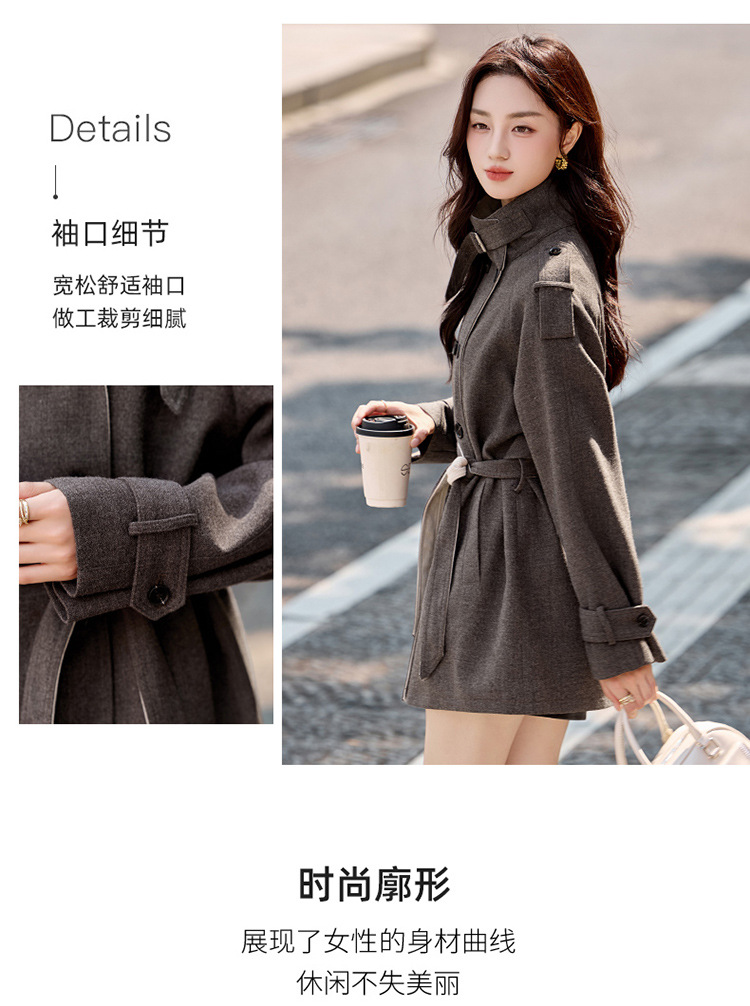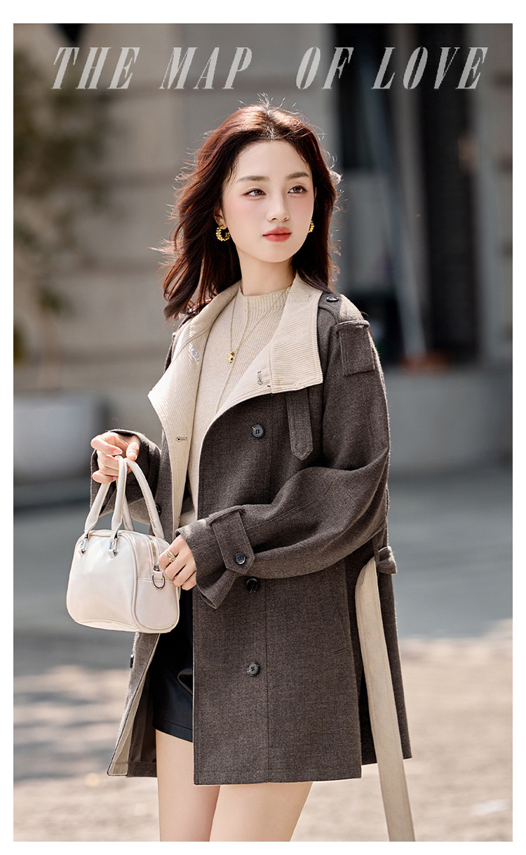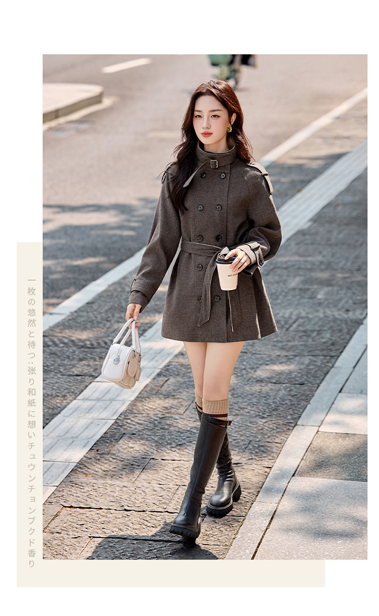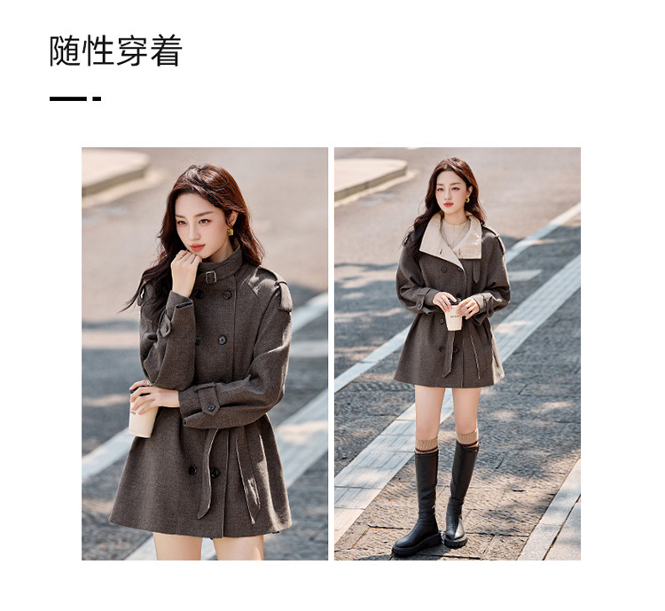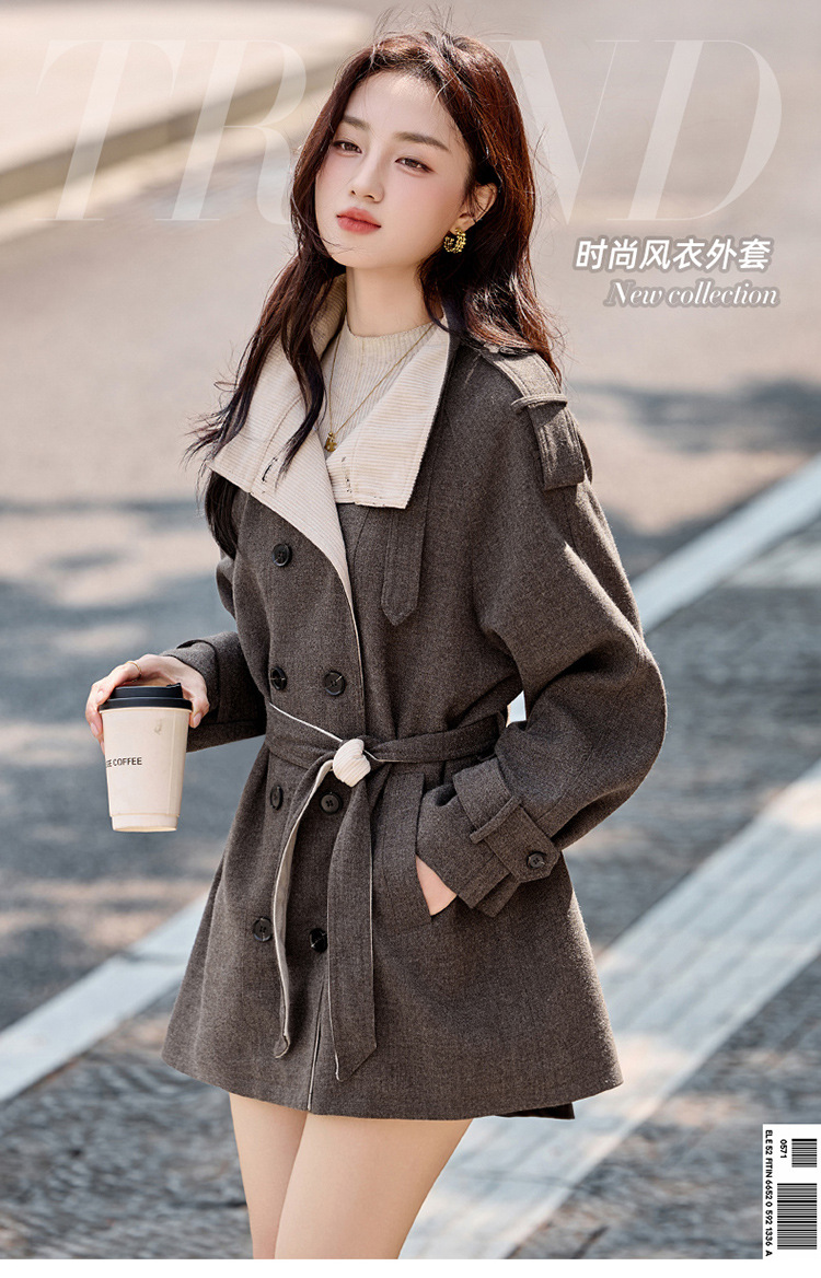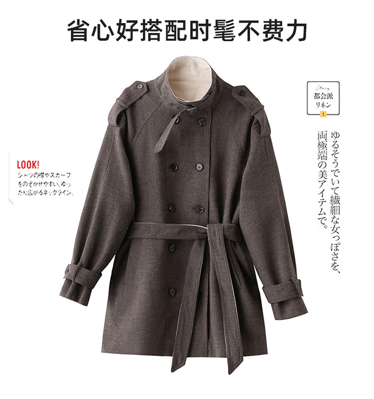 XRY9281英伦风立领休闲风衣女中长款2025春秋新款系带收腰气质小个子外套