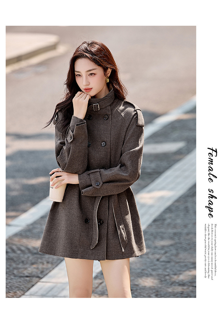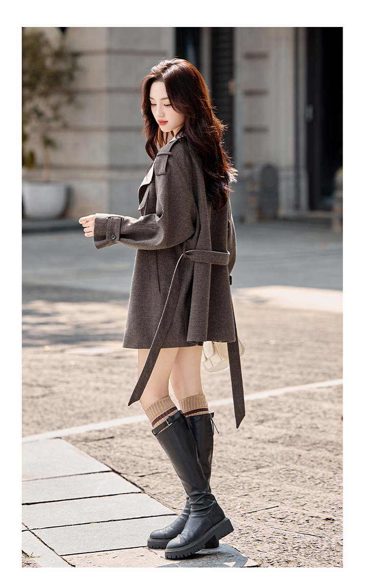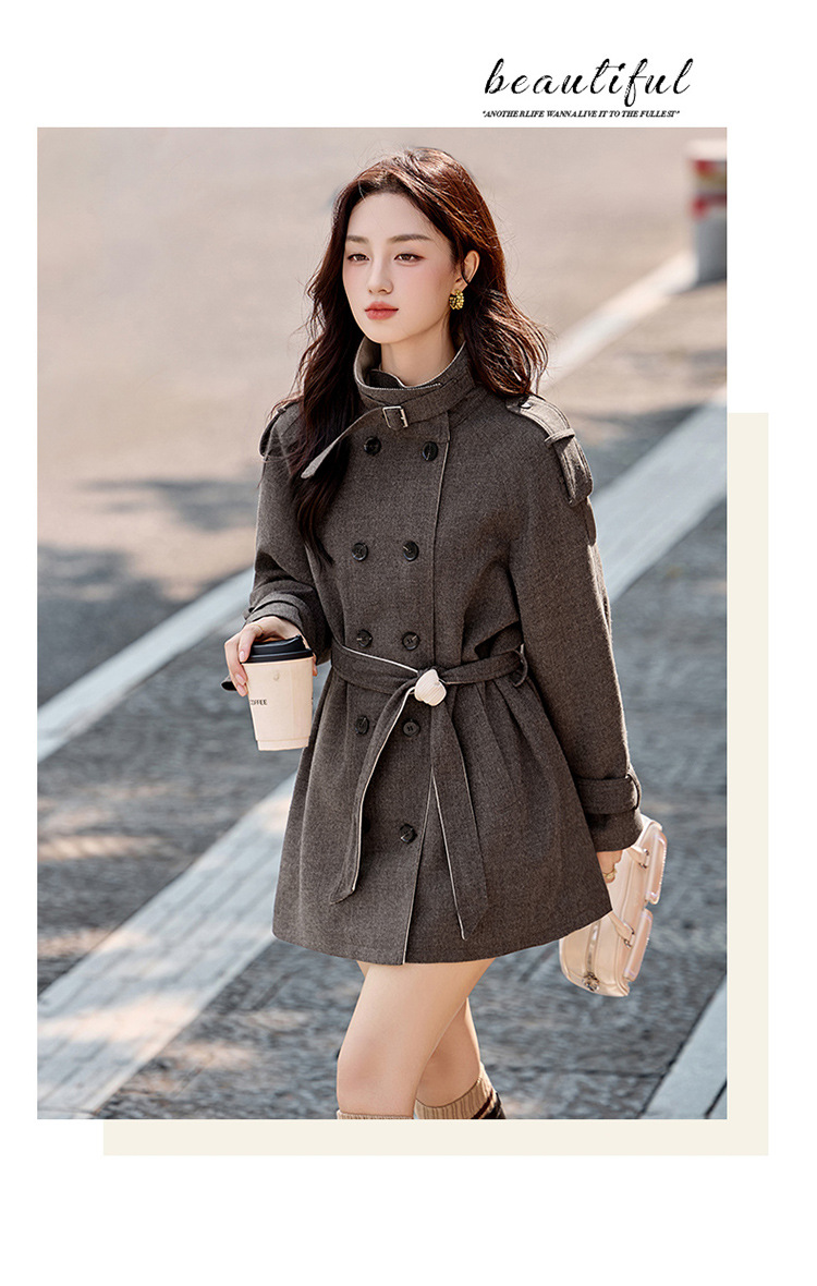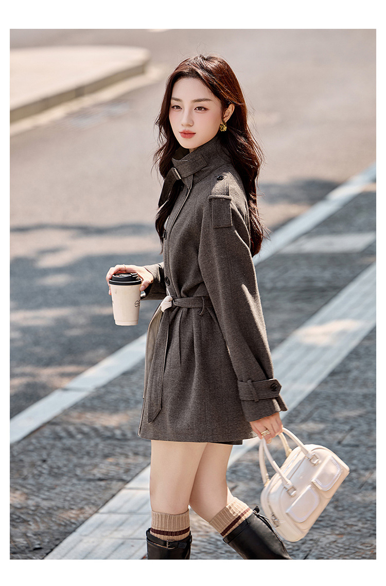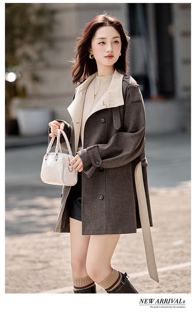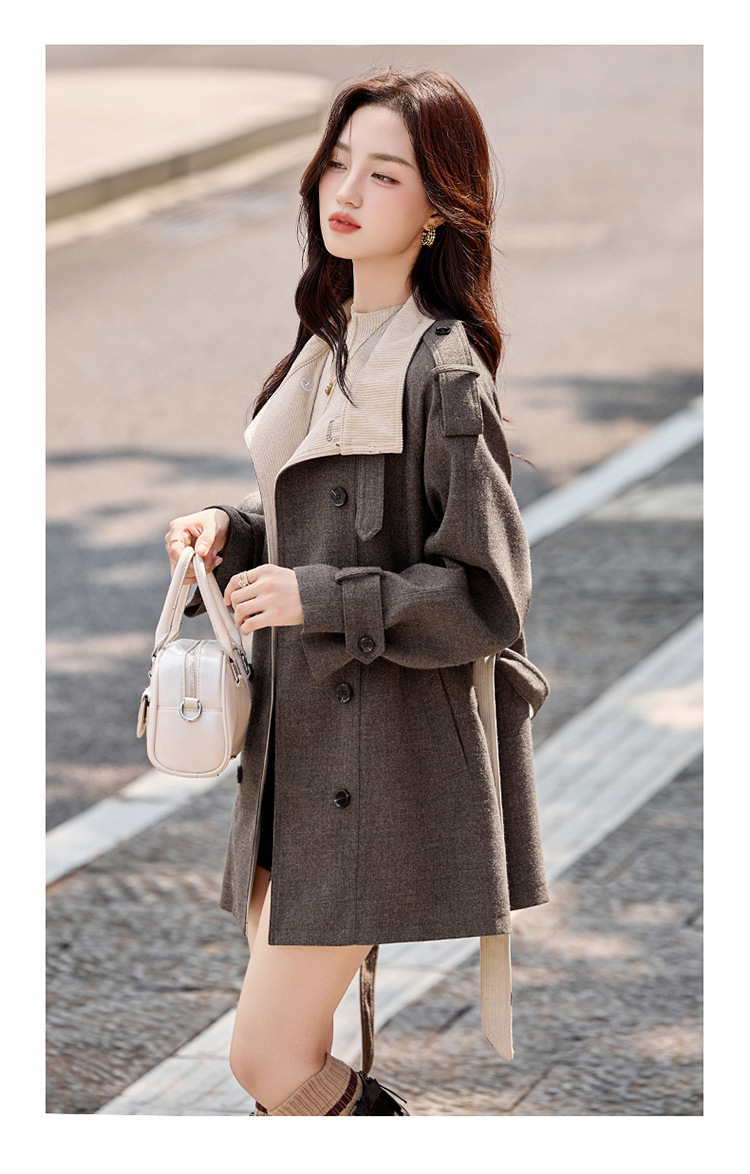 XRY9281英伦风立领休闲风衣女中长款2025春秋新款系带收腰气质小个子外套