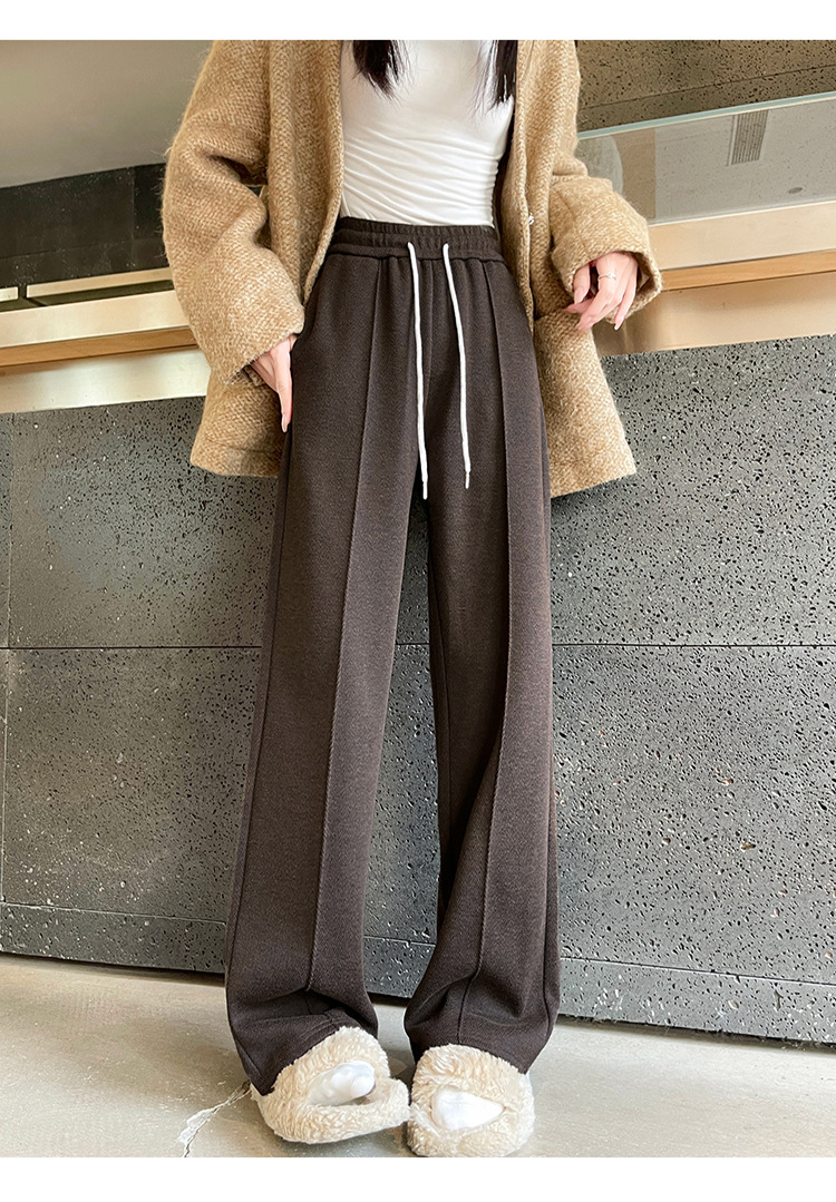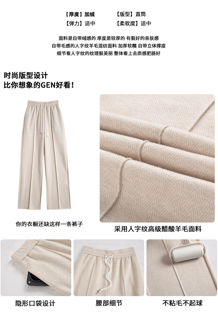 【人字纹毛呢阔腿裤】新款秋冬季 加绒休闲小个子高个子羊毛窄版直筒裤