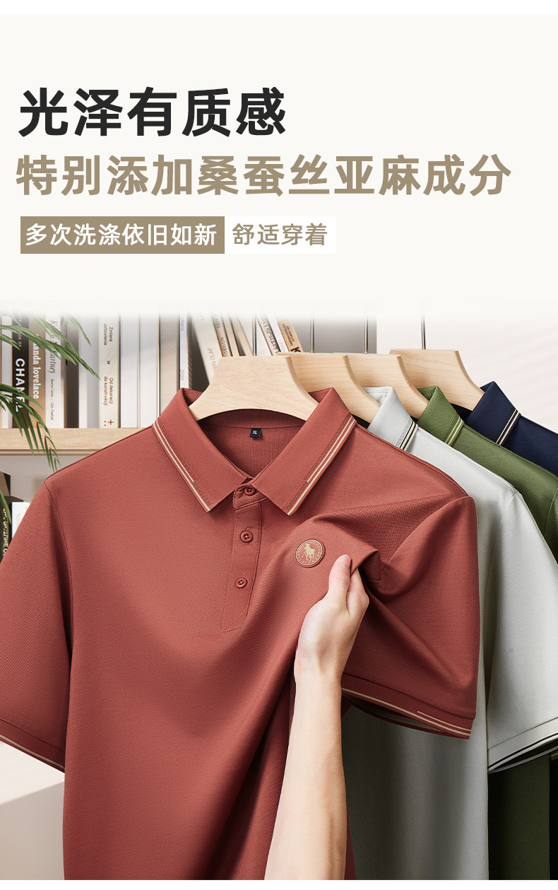 【DDS】大依优型大码男装夏季桑蚕丝亚麻混纺短袖POLO衫商务休闲百搭T恤