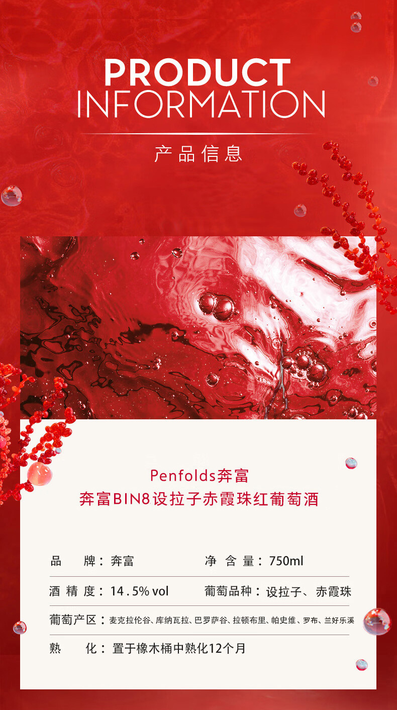 澳大利亚奔富BIN8赤霞珠设拉子干红葡萄酒