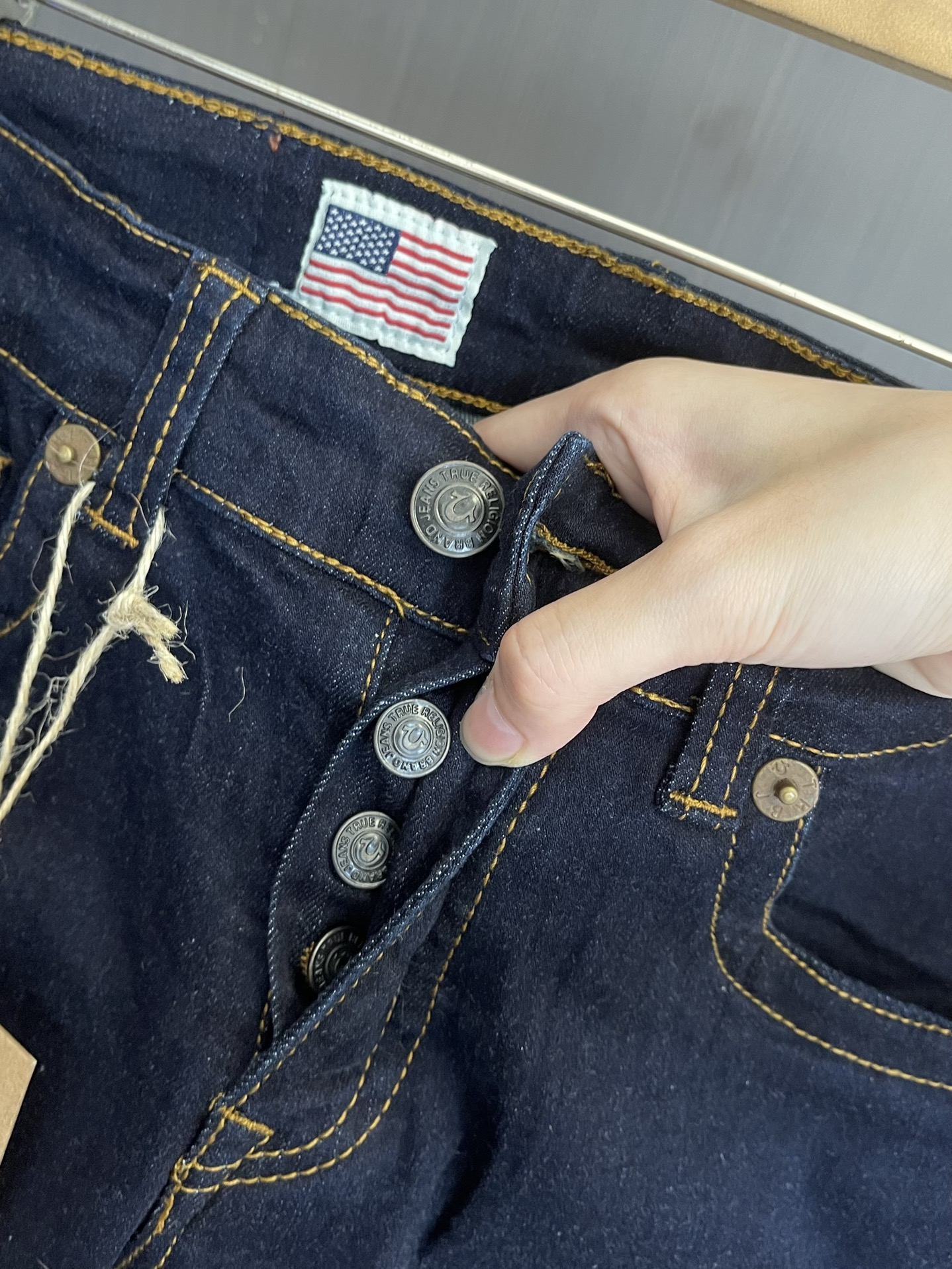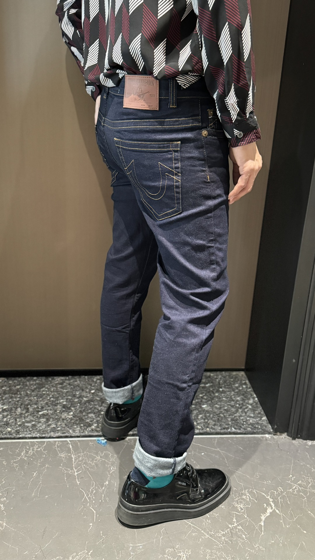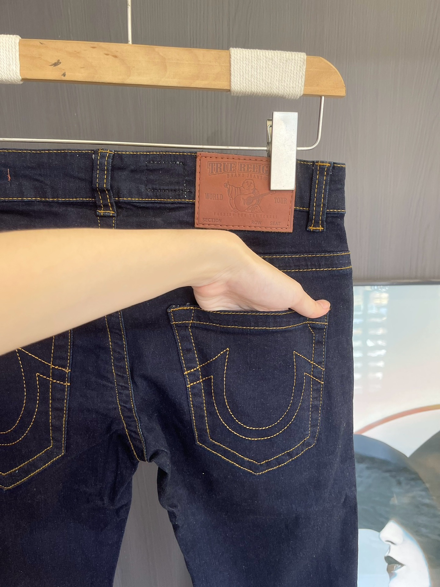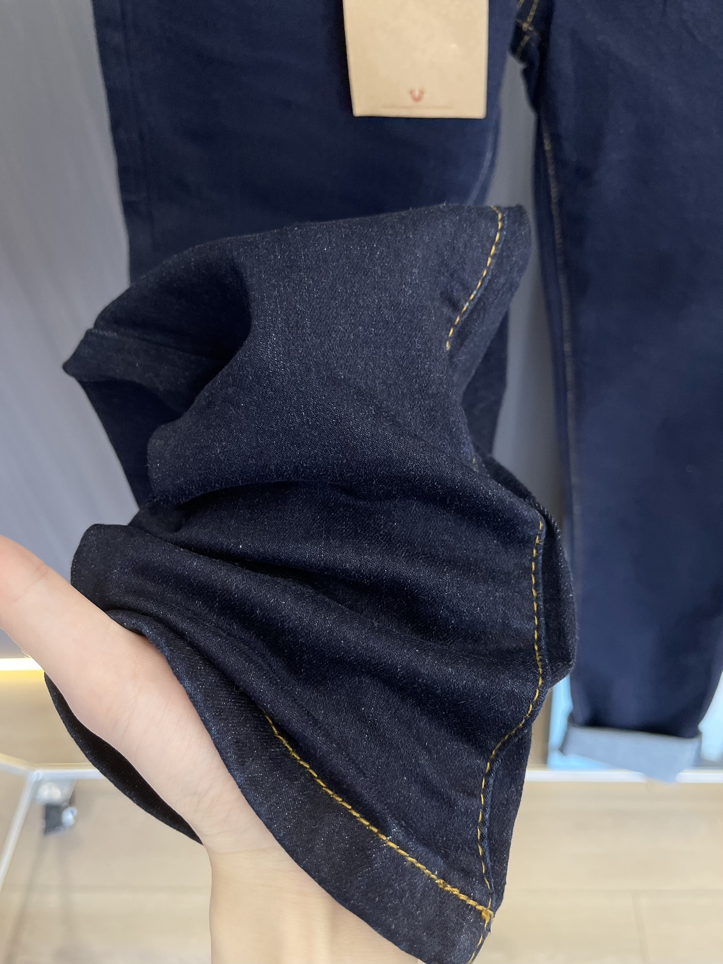 设计高档面料重工水洗辑明线直筒牛仔裤’牛仔风格里的殿堂级设计品,在时尚圈非常受追捧的,这牌子东西很难见到, 东西用料品质都非常好!客供进口的高档棉混纺牛仔面料,非常舒适 成衣重工水洗做旧工艺,手工辑明线处理,裤子颜色自然漂亮,版型上身很帅气!裤子版型剪裁很棒,上身显瘦显腿长,其U型袋花是牛仔马蹄铁的标志图案,代表着自由奔放,牛仔裤的设计上非常人性化, TR牛仔在高端牛仔领域独领风骚 在国际的影响力还是很高,被好莱坞一众明星麦当娜、查理兹.塞隆深深迷上