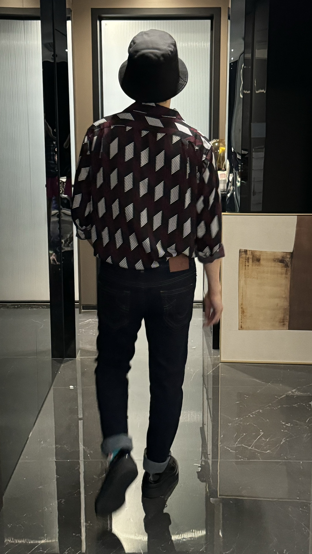 进口的原色牛仔面料,质感舒适,成衣重工水洗工艺,呈色漂亮,客供 带logo的纽扣和金属撞钉也都是很高档的配件,都是高档客供定制品,细节做工也很精细,非常有风格的潮流设计品