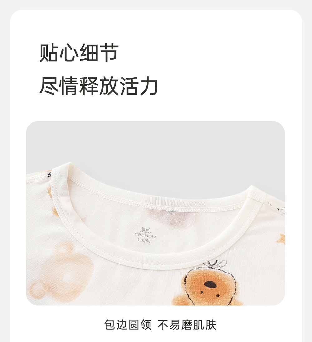 英氏家居服男童女童套装薄款儿童夏季透气宝宝长袖长裤空调睡衣