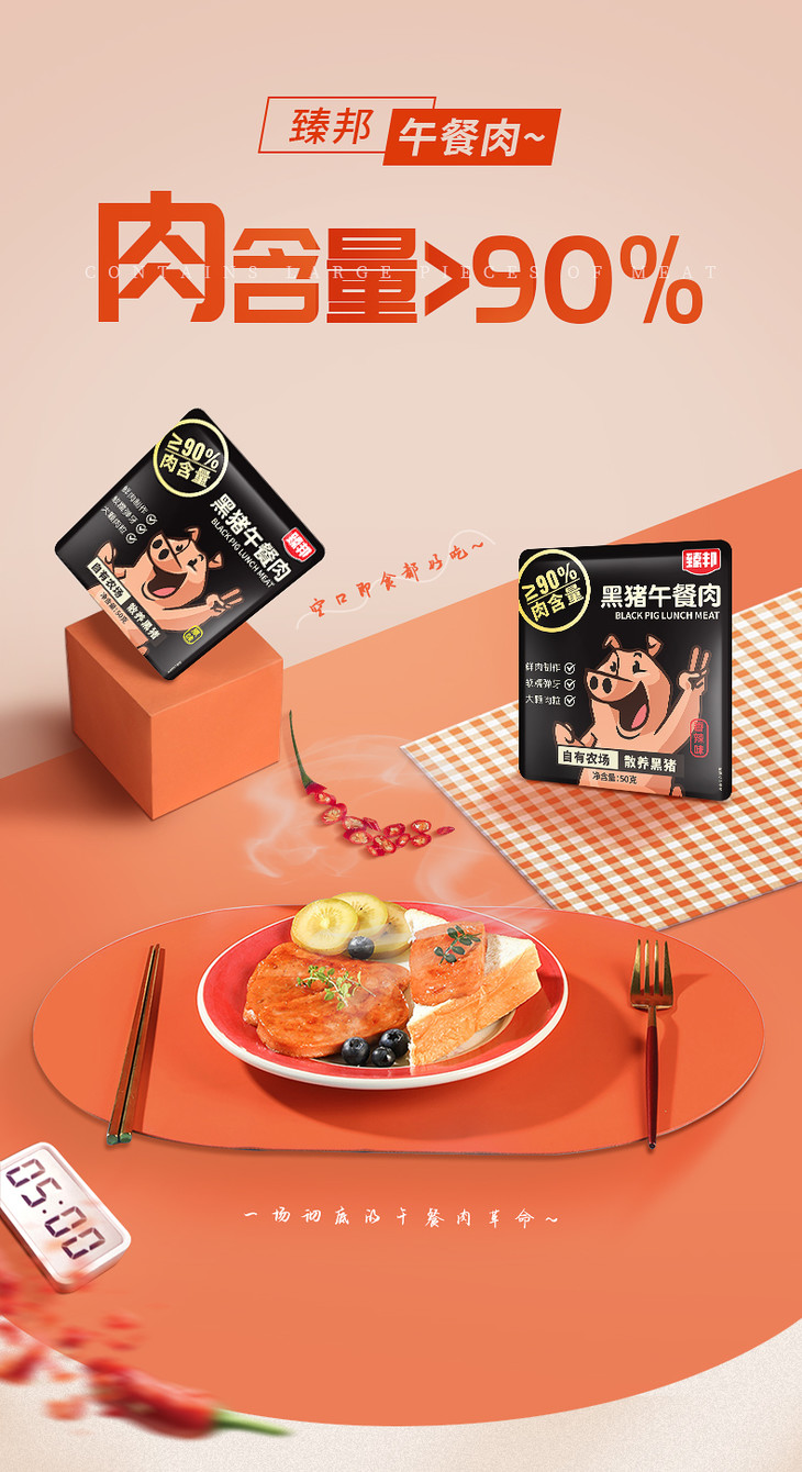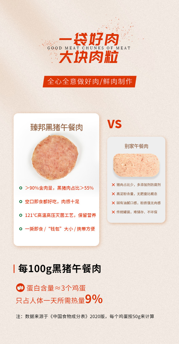 【肉食精选】黑猪午餐肉 “午餐肉天花板” 含肉量90% 野生散养黑土猪肉制作 鲜嫩多汁 软糯Q弹 户外方便速食囤货必备