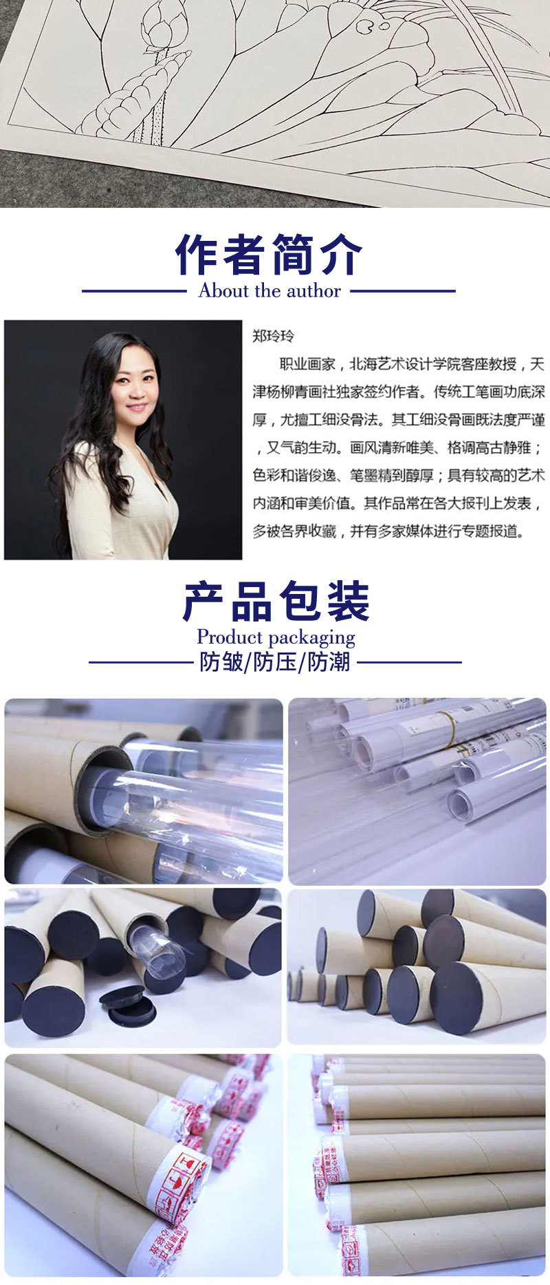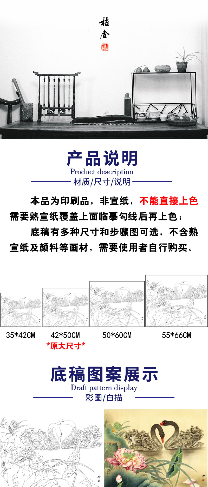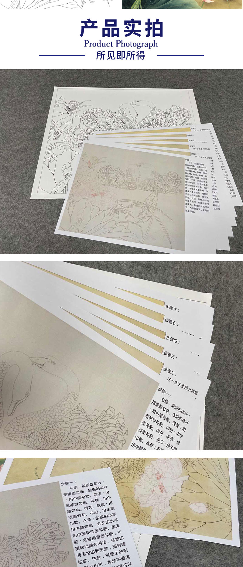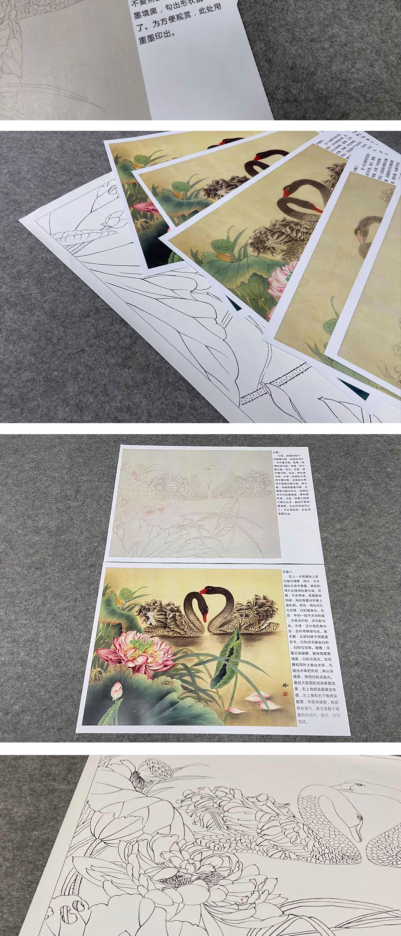 【有步骤、大彩图】郑玲玲工笔画白描稿小品《荷塘细语》荷花天鹅初学者临摹花鸟线稿ZL03
