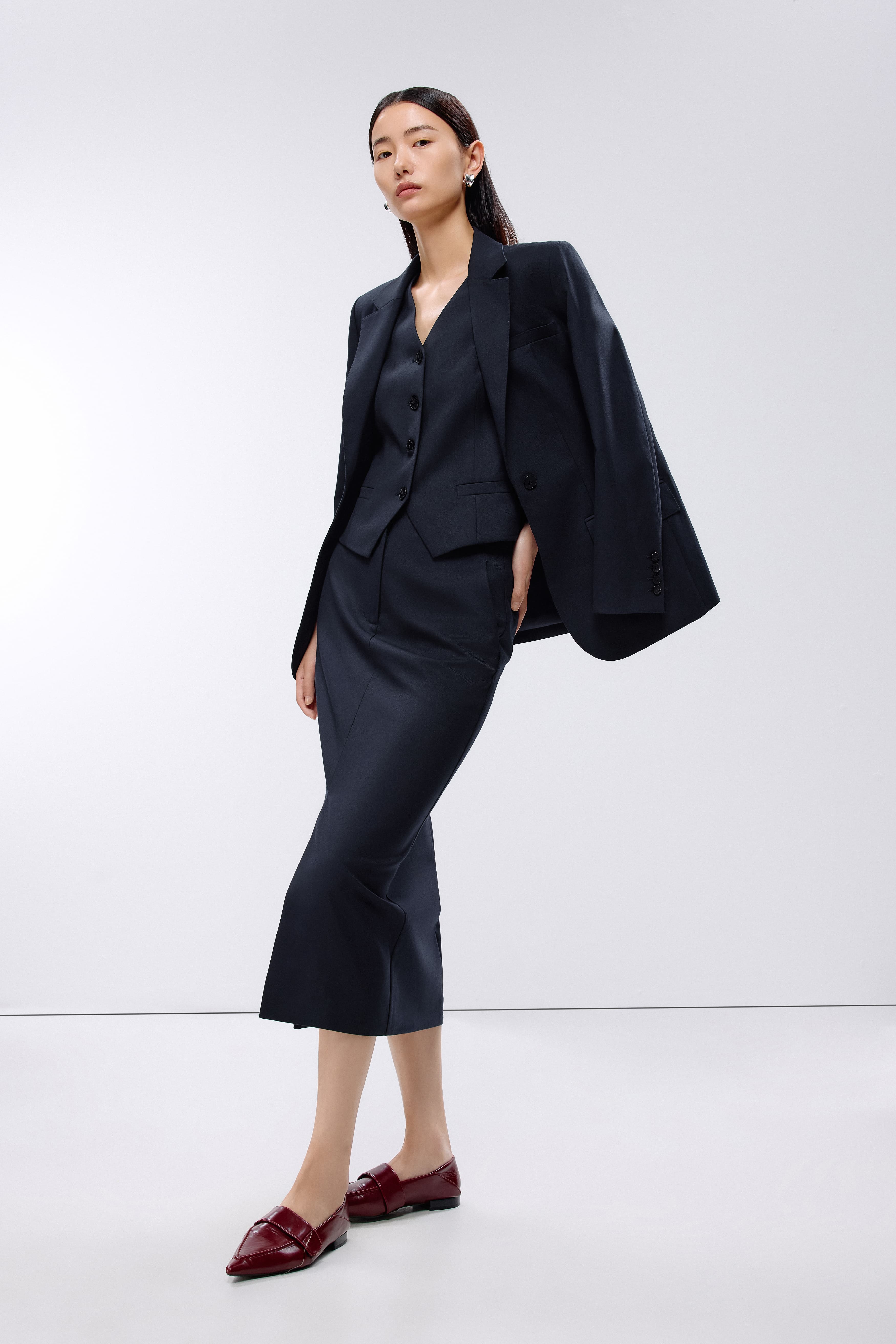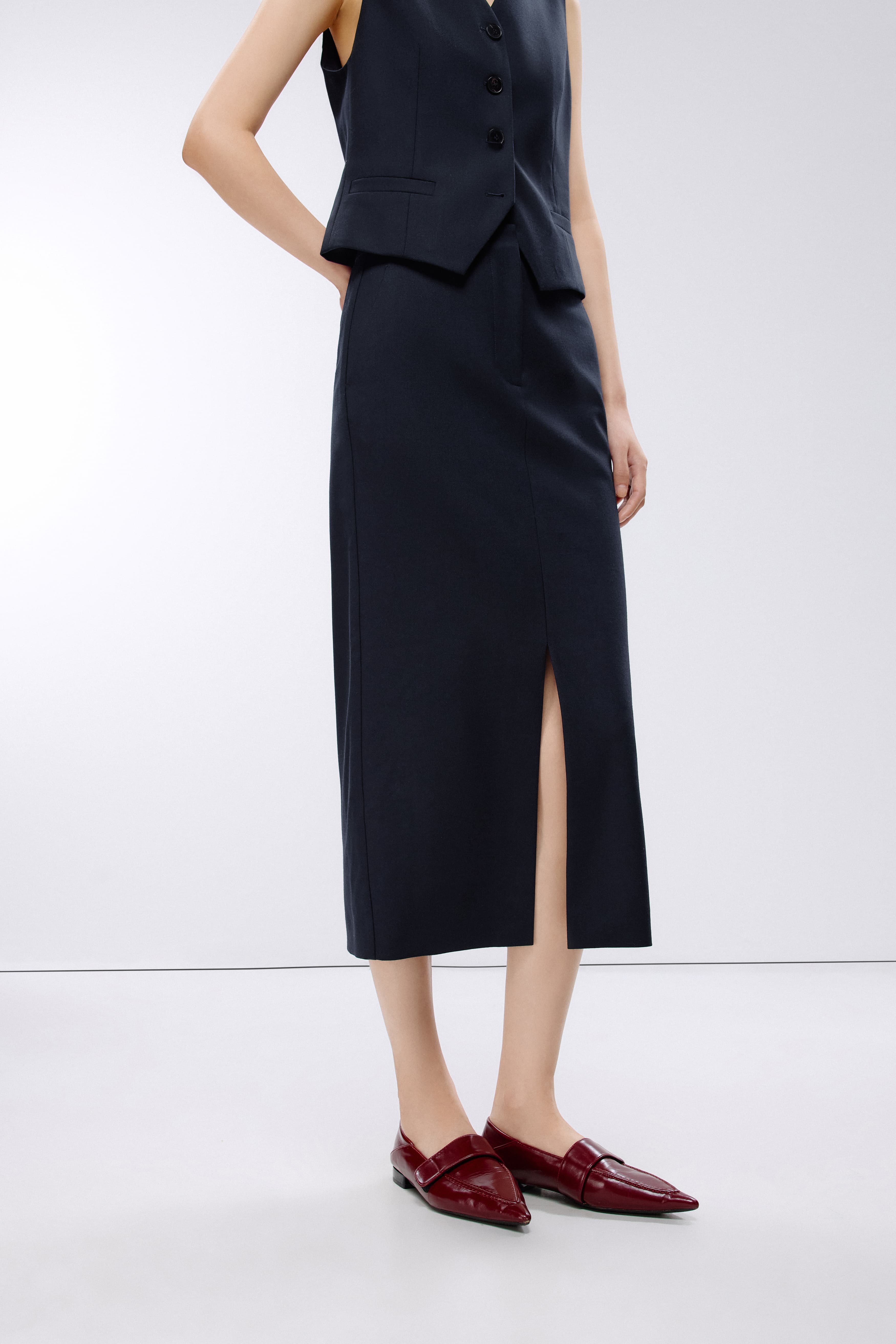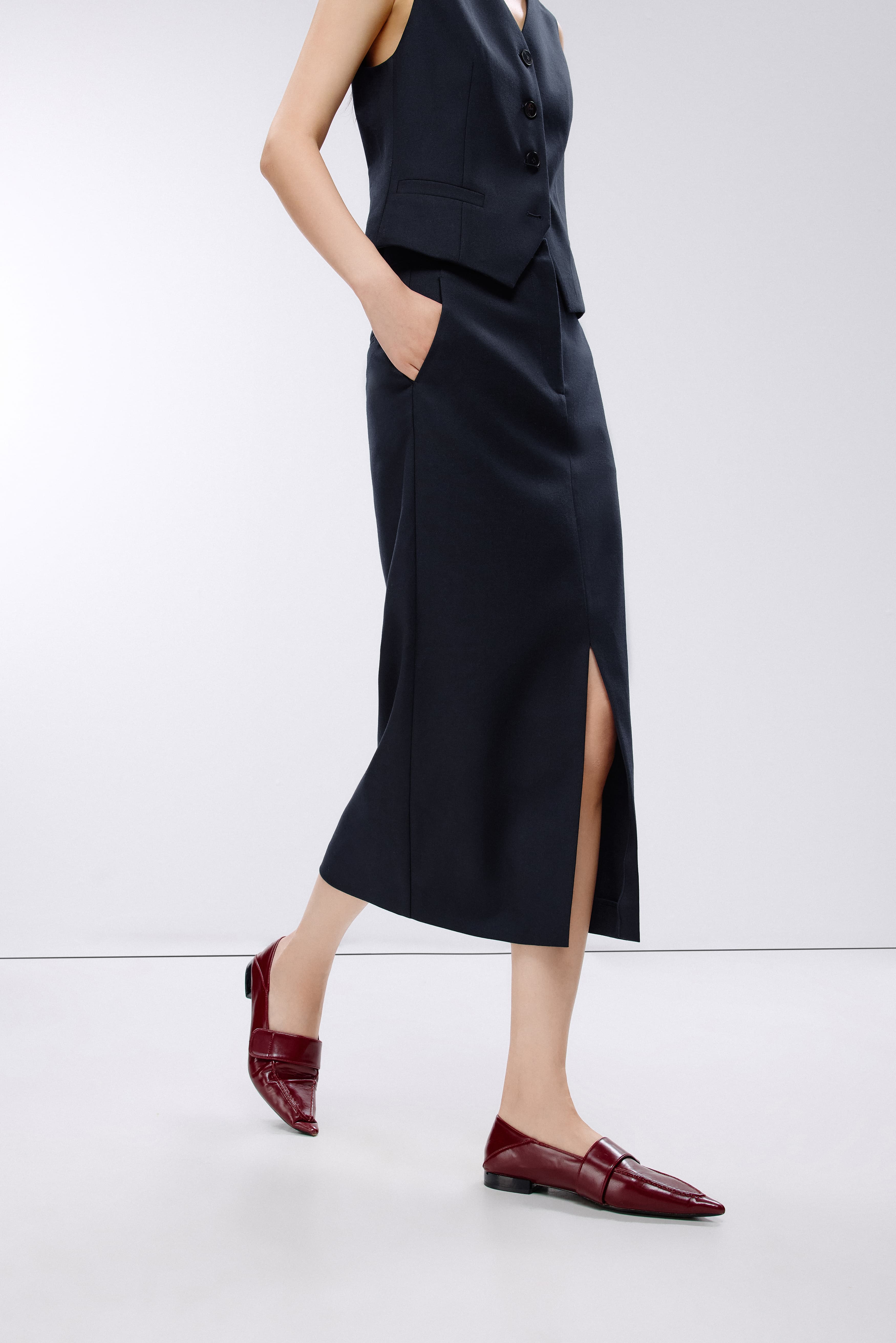 朗姿 梭织半裙深藏青色LAJK04WSK115A61