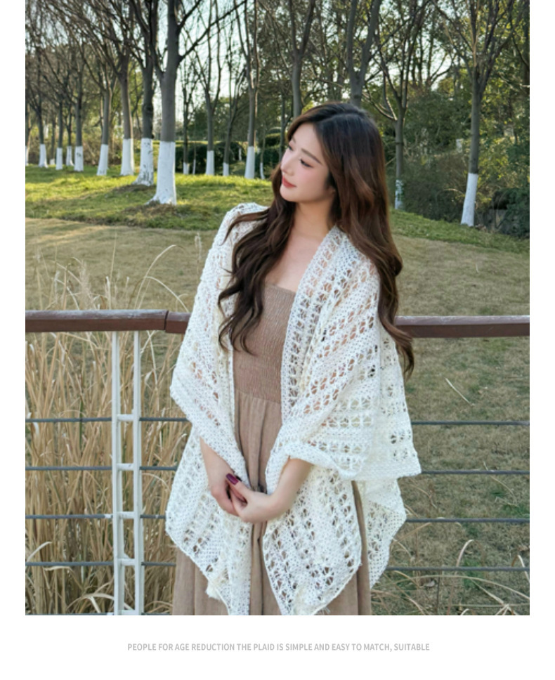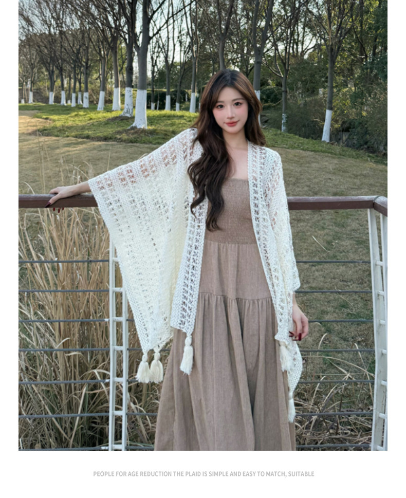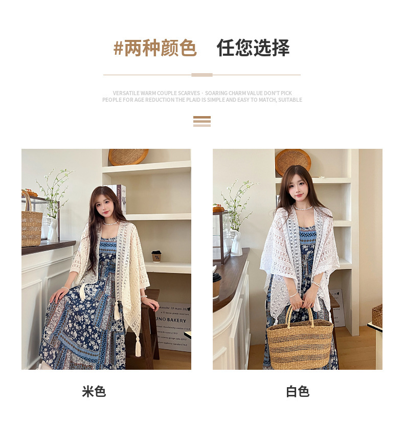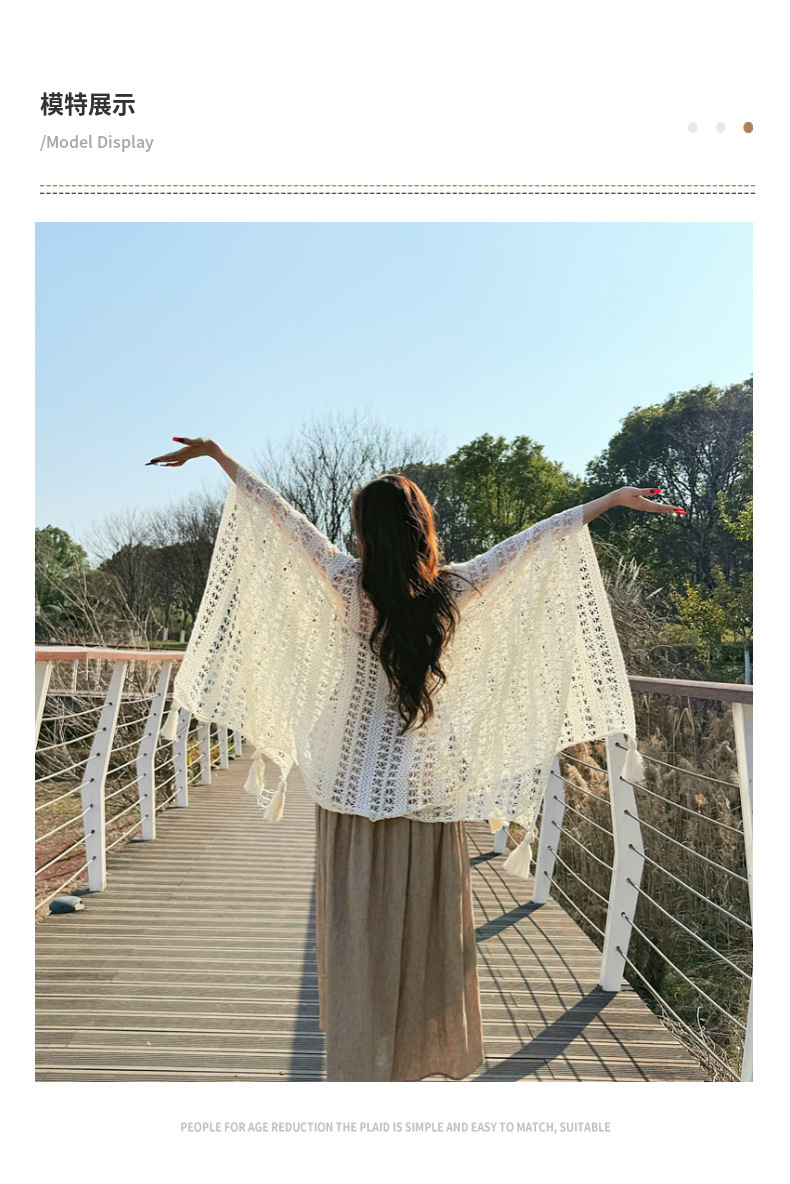 【时尚出片!透气不闷】镂空复古民族度假风女针织流苏开衫女薄款春秋小披肩外搭蕾丝披肩。xb