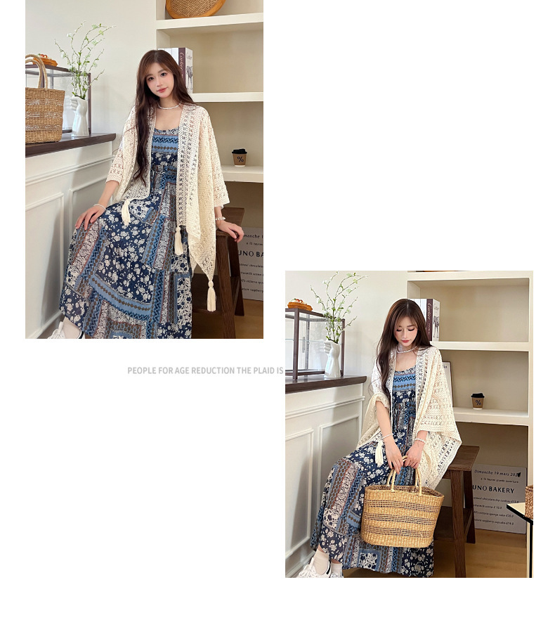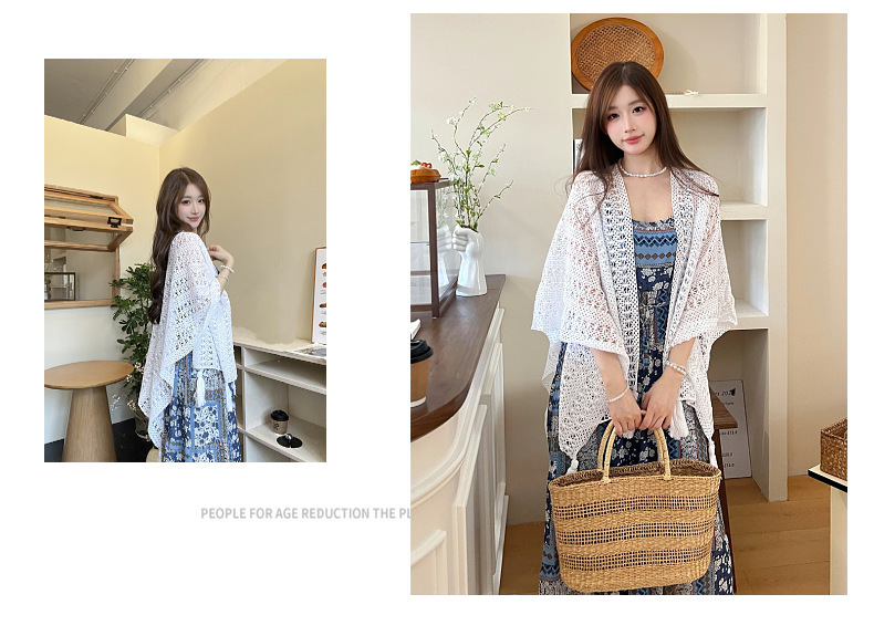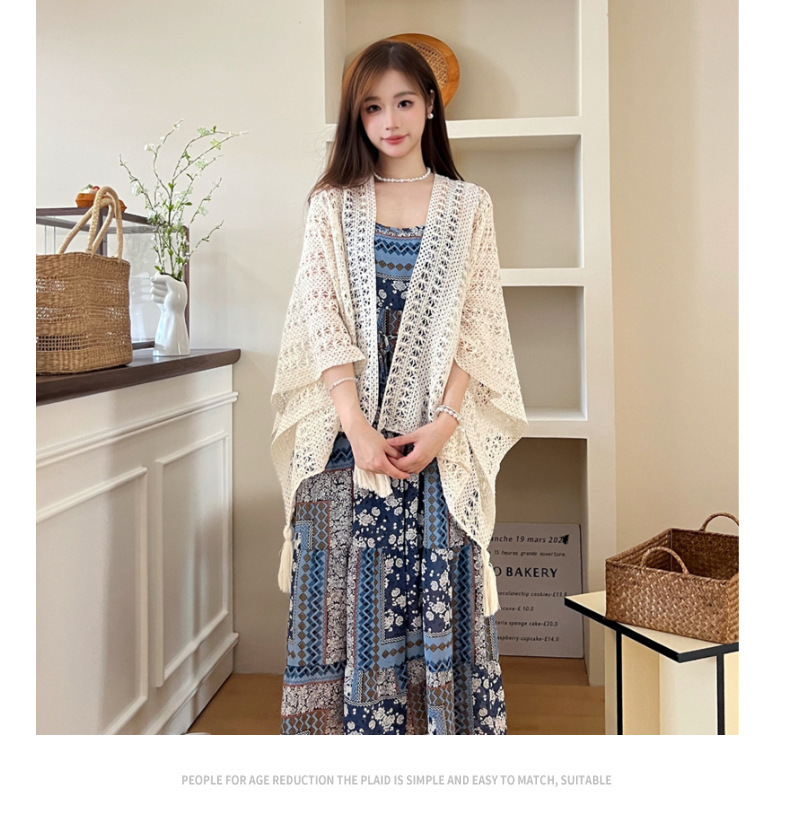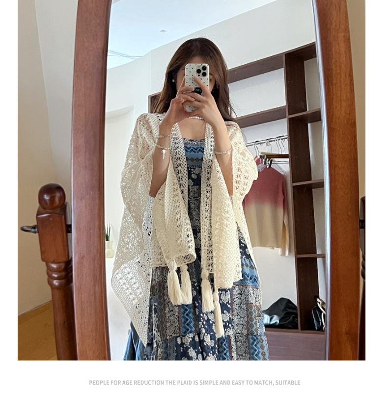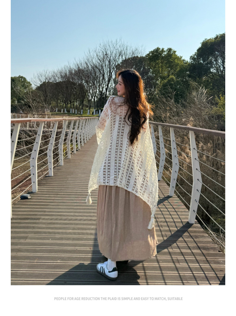 【时尚出片!透气不闷】镂空复古民族度假风女针织流苏开衫女薄款春秋小披肩外搭蕾丝披肩。xb