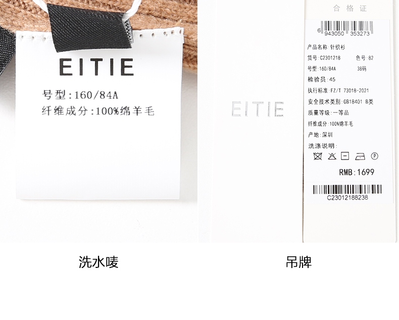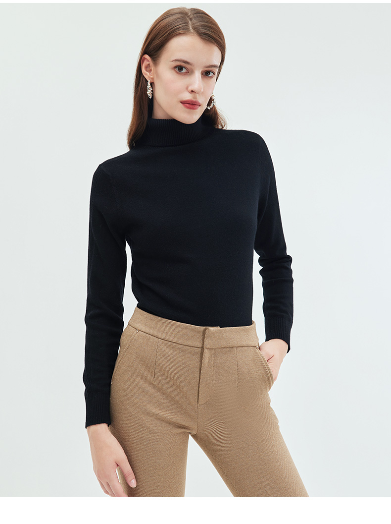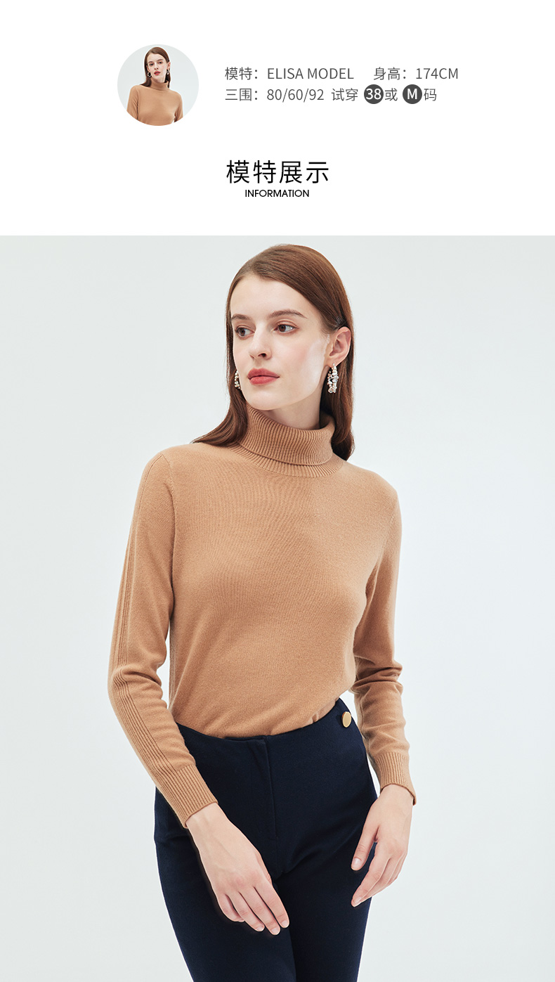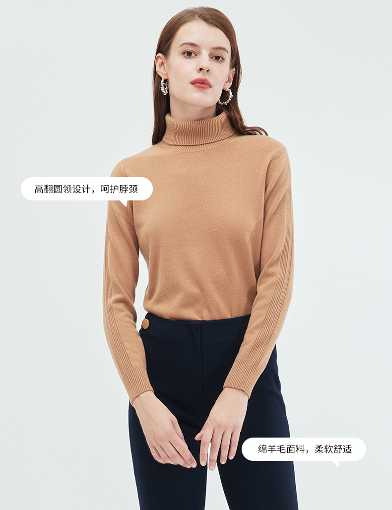 EITIE爱特爱简约纯色高领保暖舒适羊毛打底针织衫秋新款C2301218