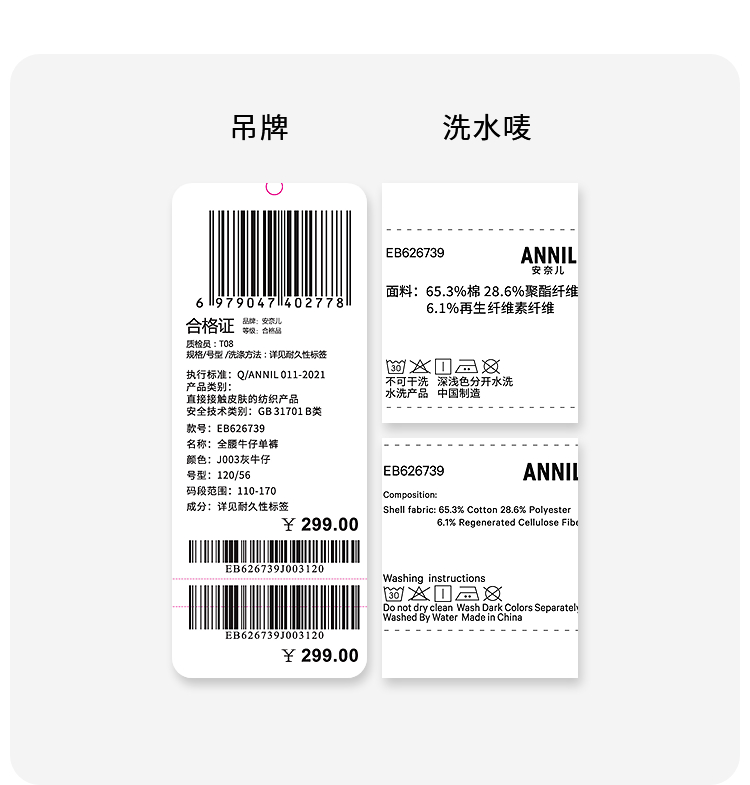 男童全腰牛仔单裤春季新款安奈儿童装EB626739