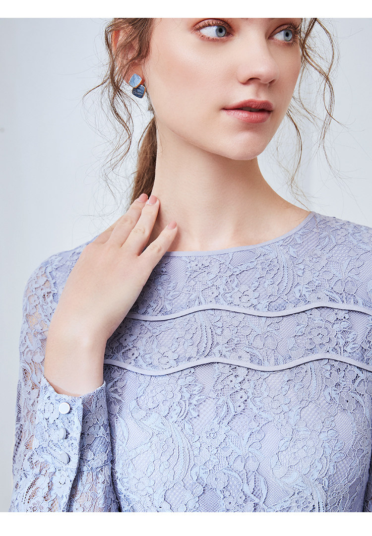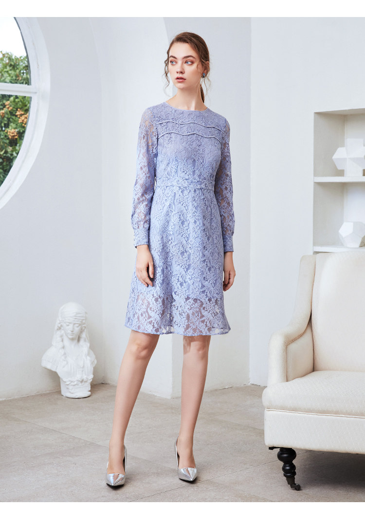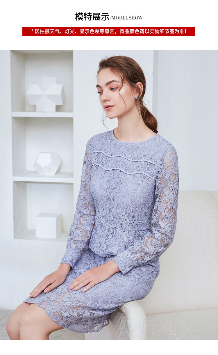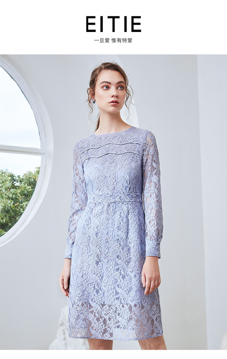 EITIE爱特爱女装秋季新款气质蕾丝镂空通勤收腰显瘦连衣裙女C2007570