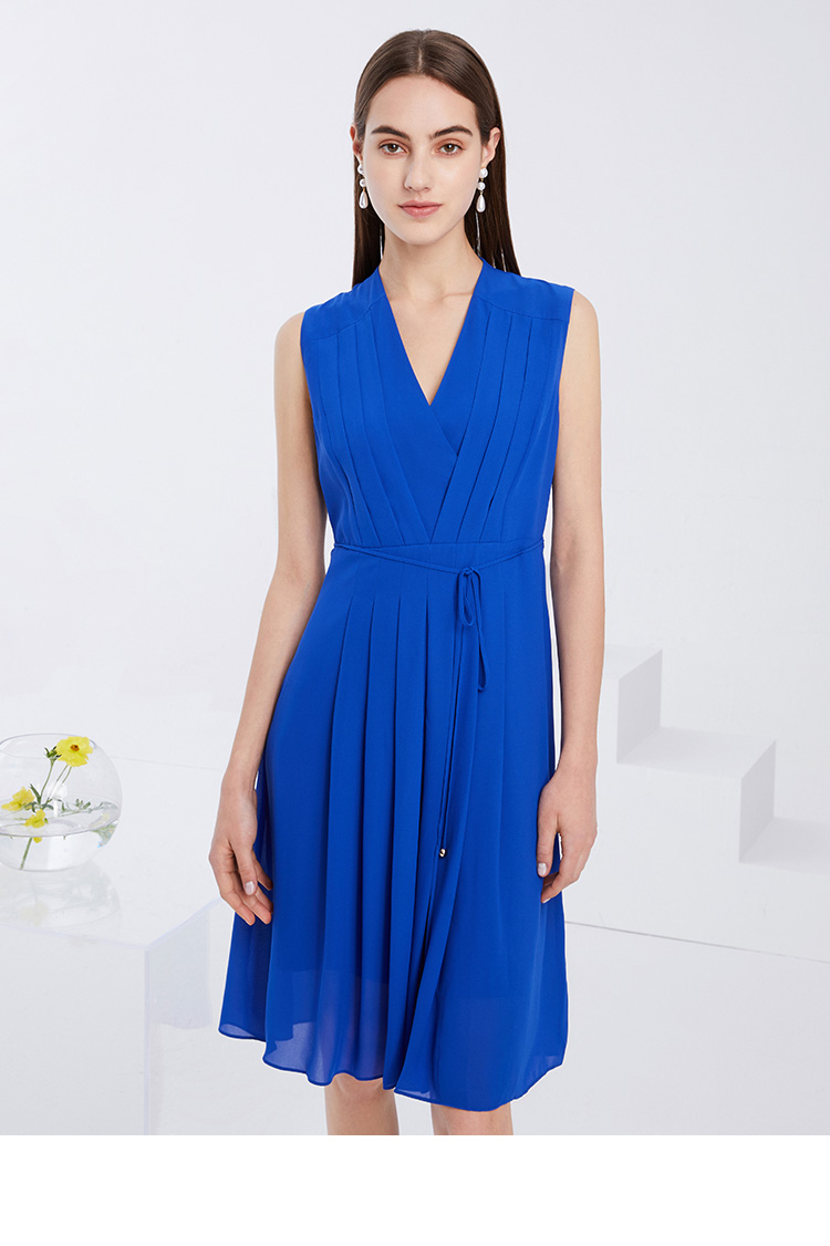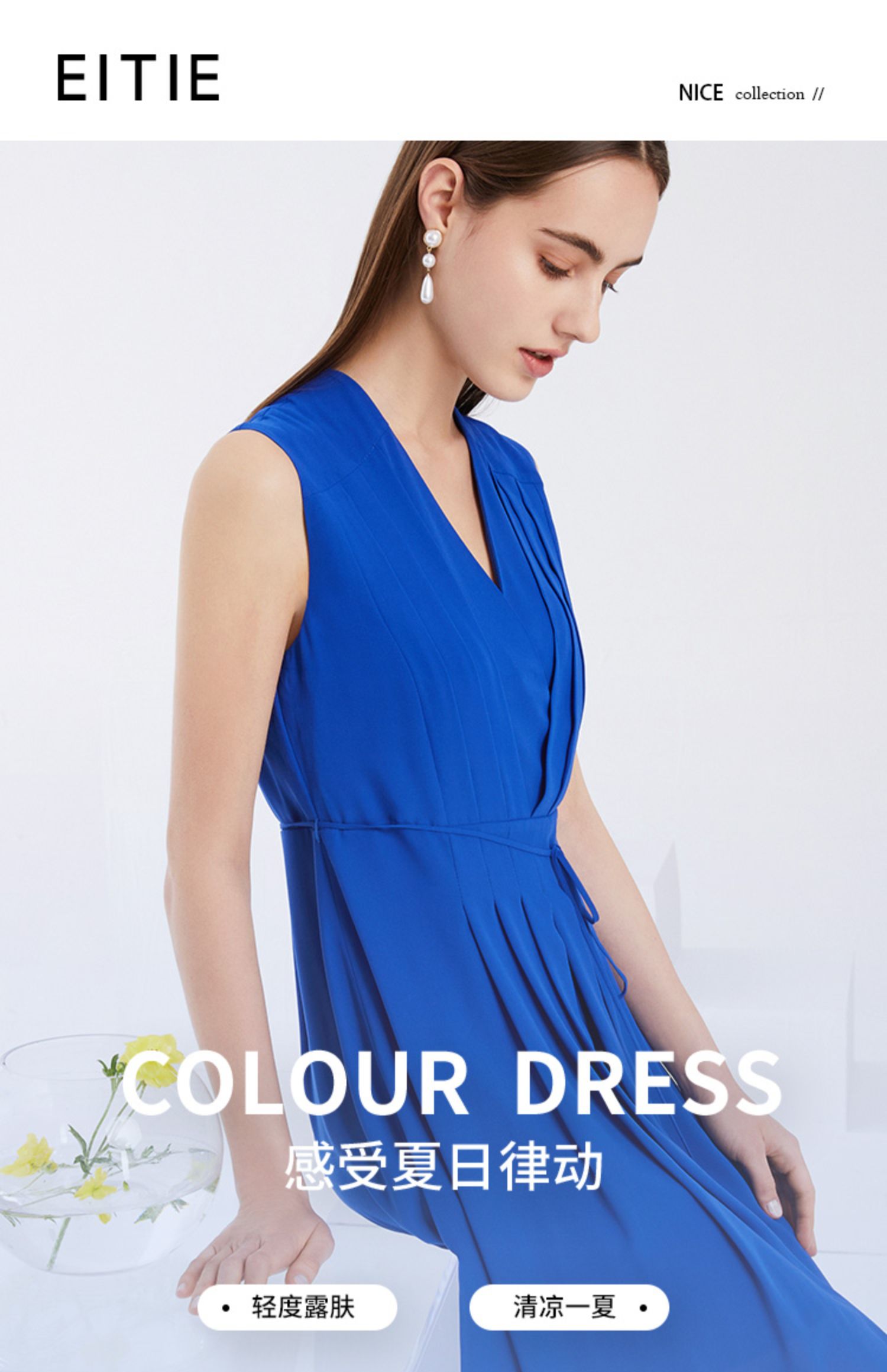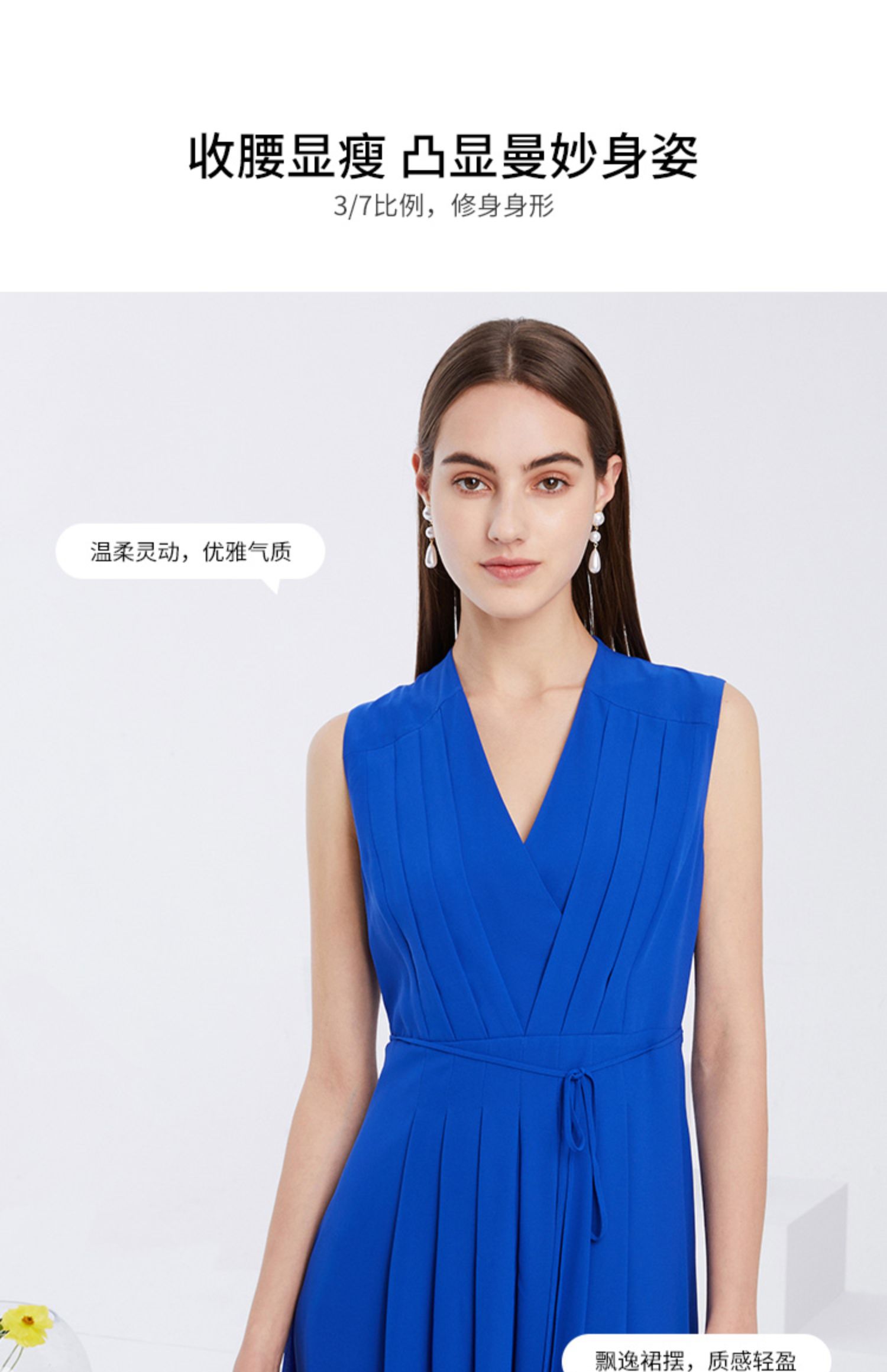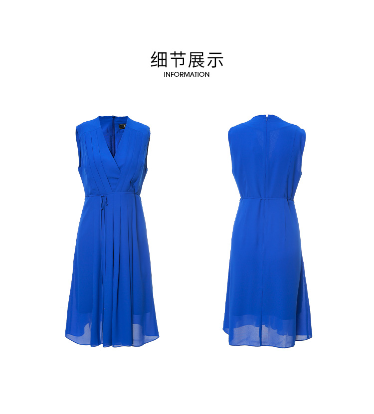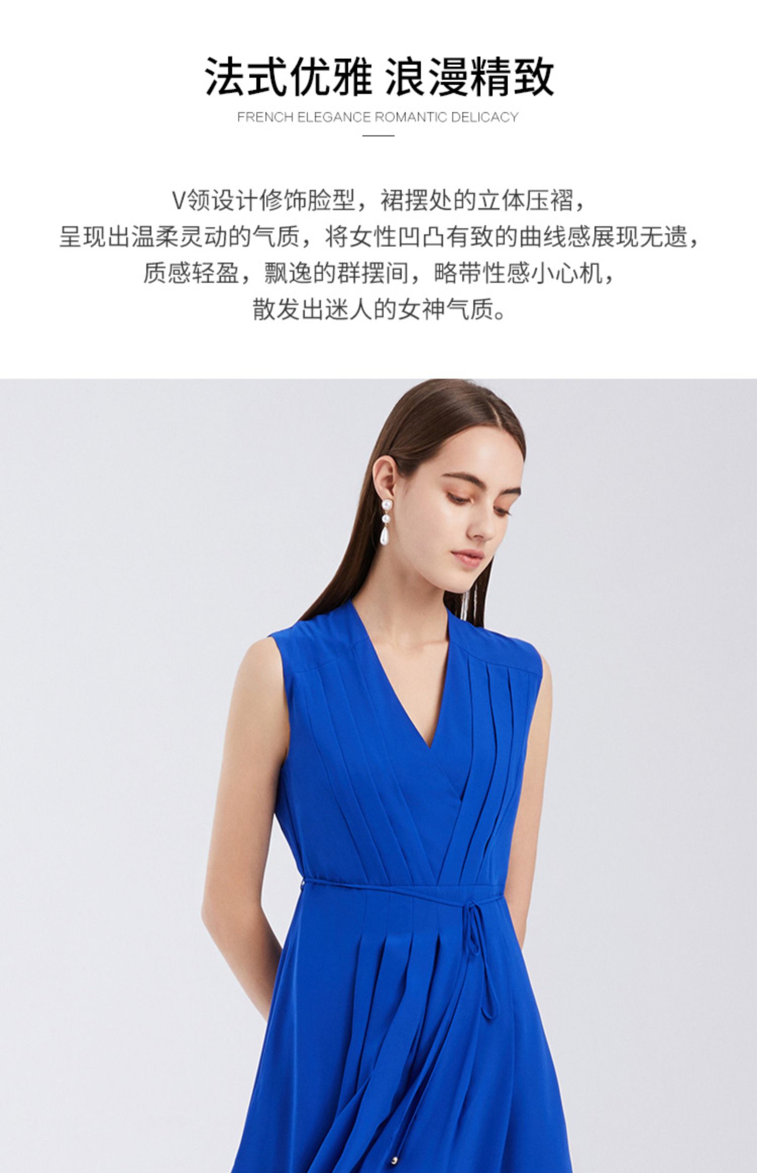 EITIE爱特爱夏季新款时尚气质显瘦V领压褶无袖收腰A字连衣裙6207970