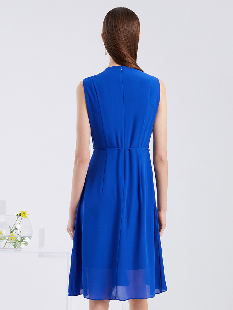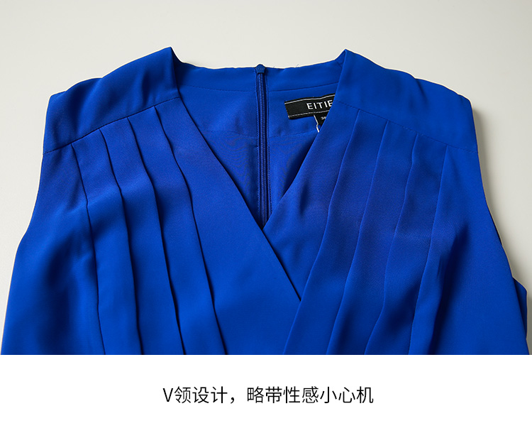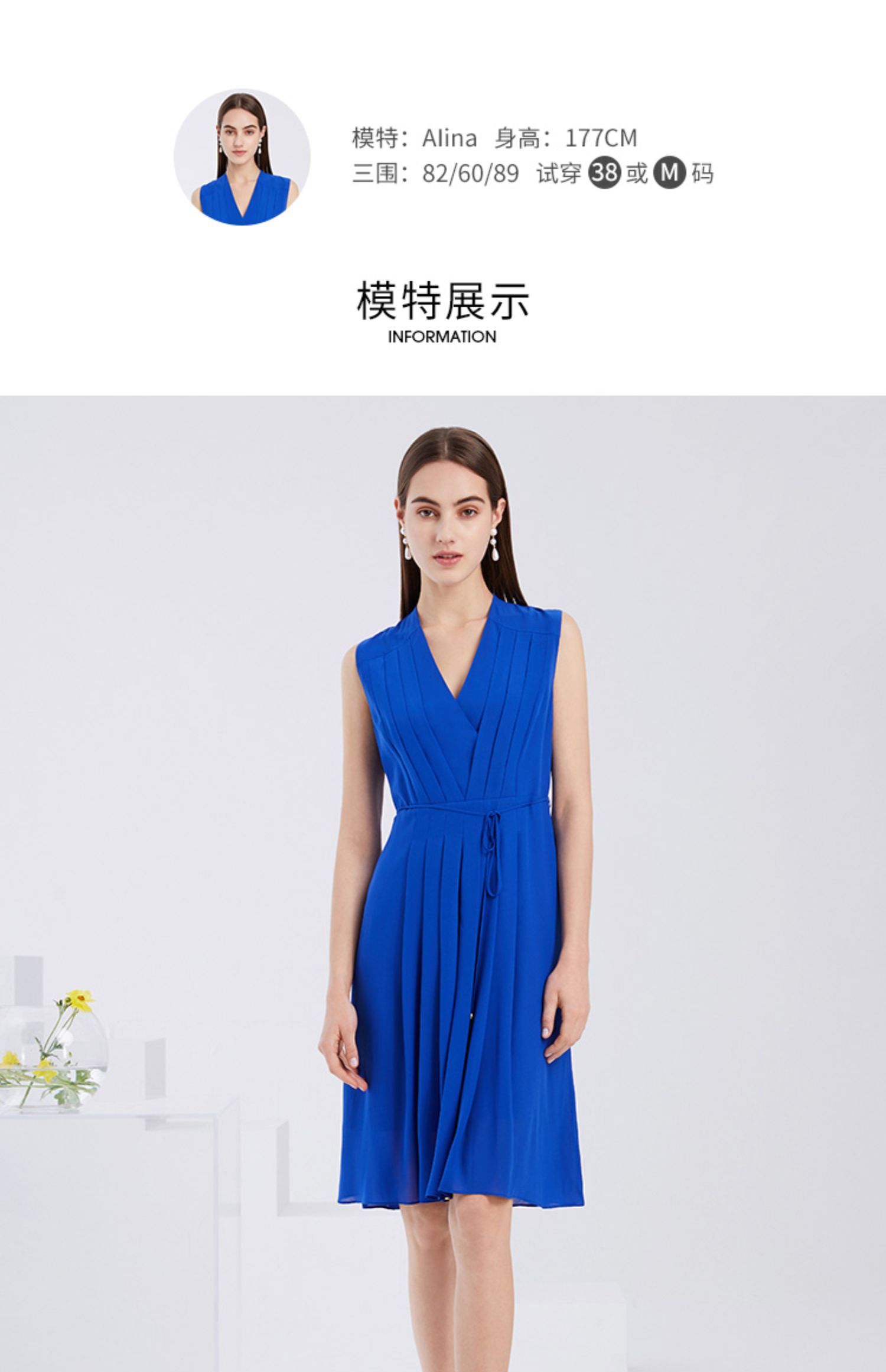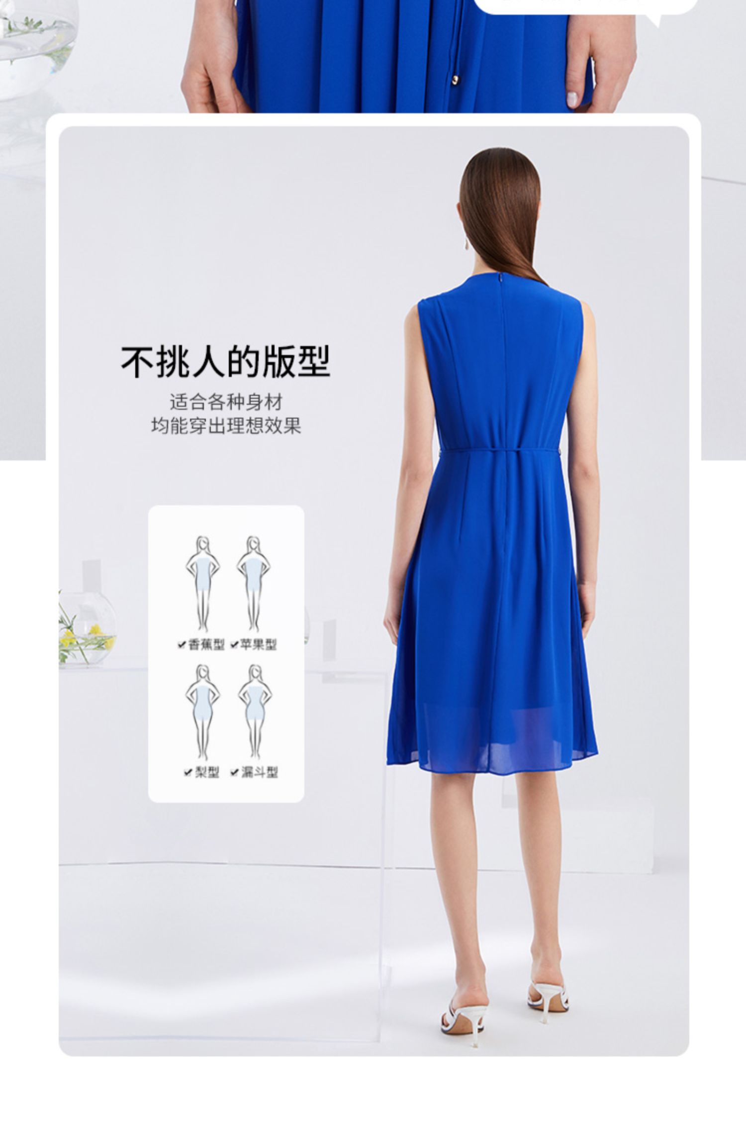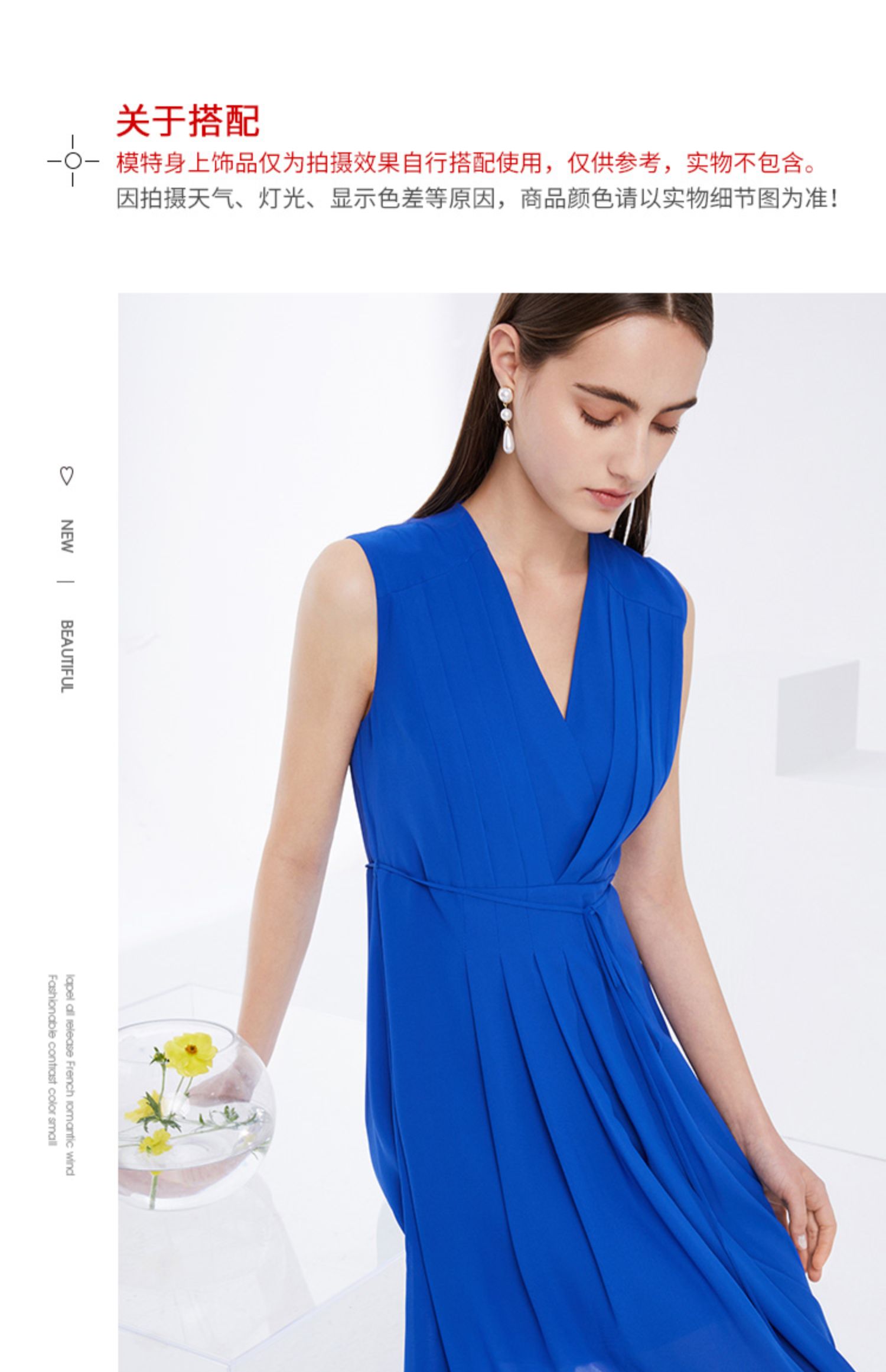 EITIE爱特爱夏季新款时尚气质显瘦V领压褶无袖收腰A字连衣裙6207970