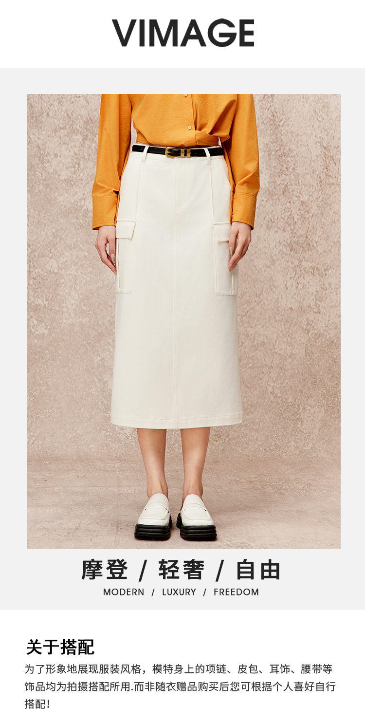 VIMAGE纬漫纪高腰包臀开叉显瘦时尚半身裙秋季新款V2206803