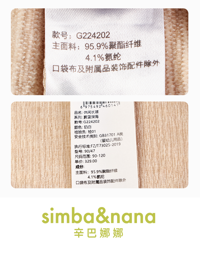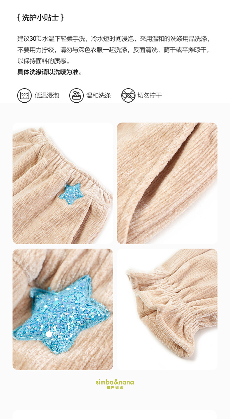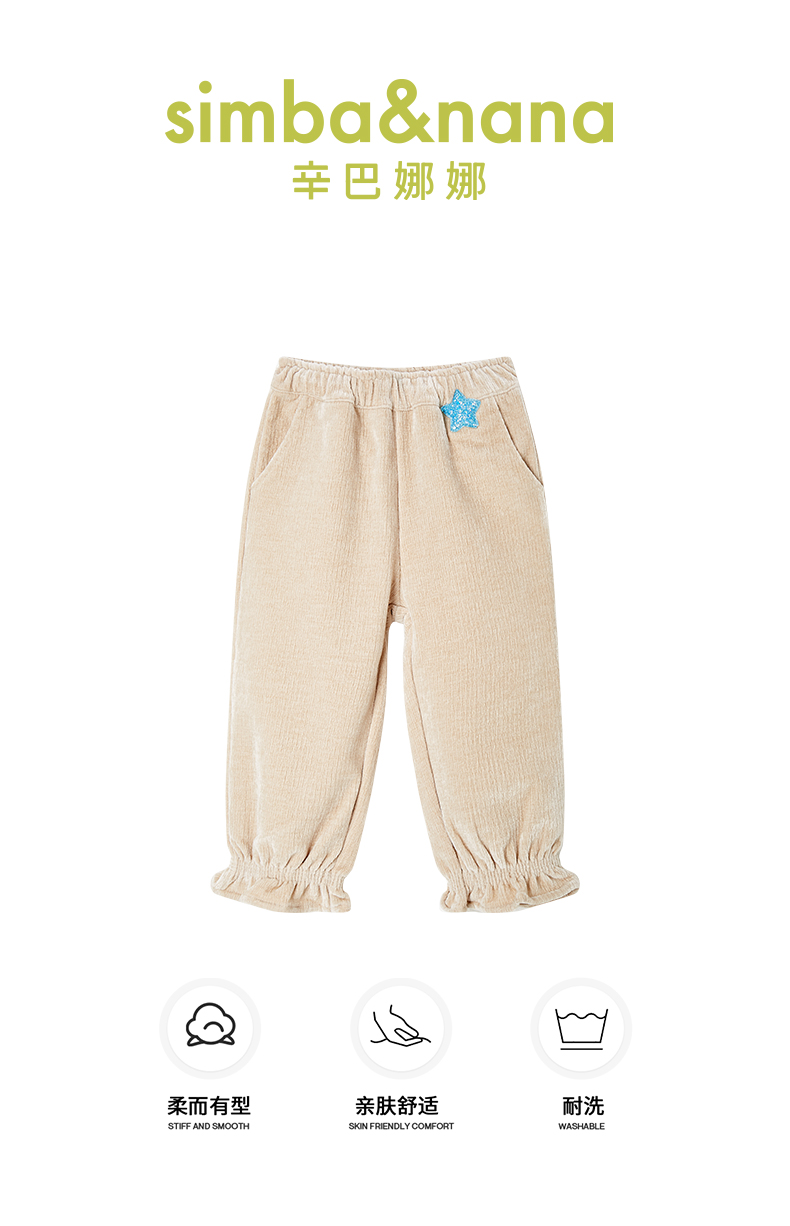 【辛巴娜娜】simbanana秋冬束脚条绒面料秋季新款加厚裤子幼儿女宝宝