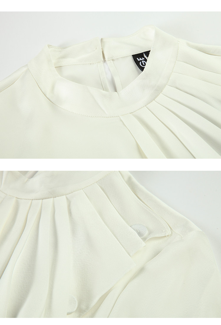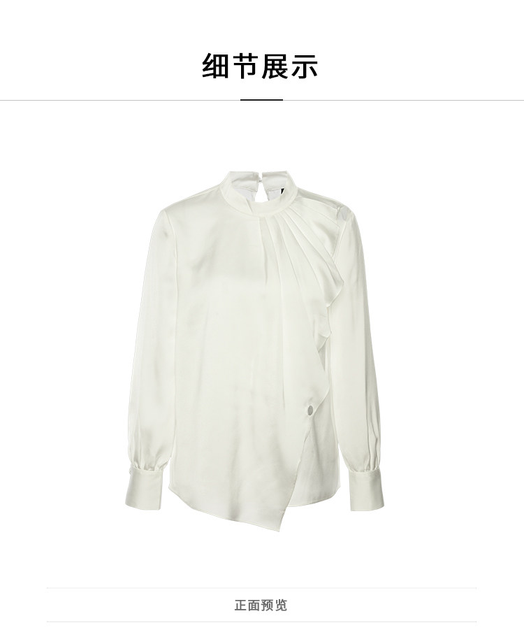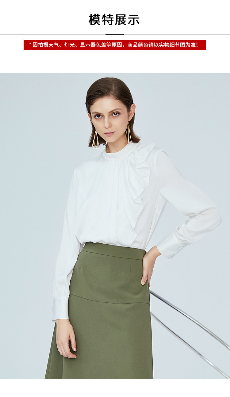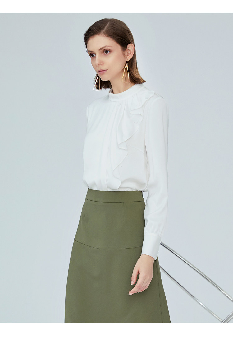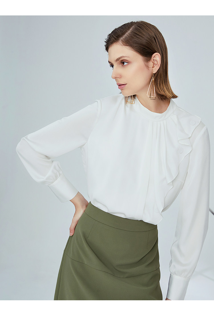 VIMAGE纬漫纪女装秋季新品气质垂坠感波浪边半高领衬衫上衣V1213808